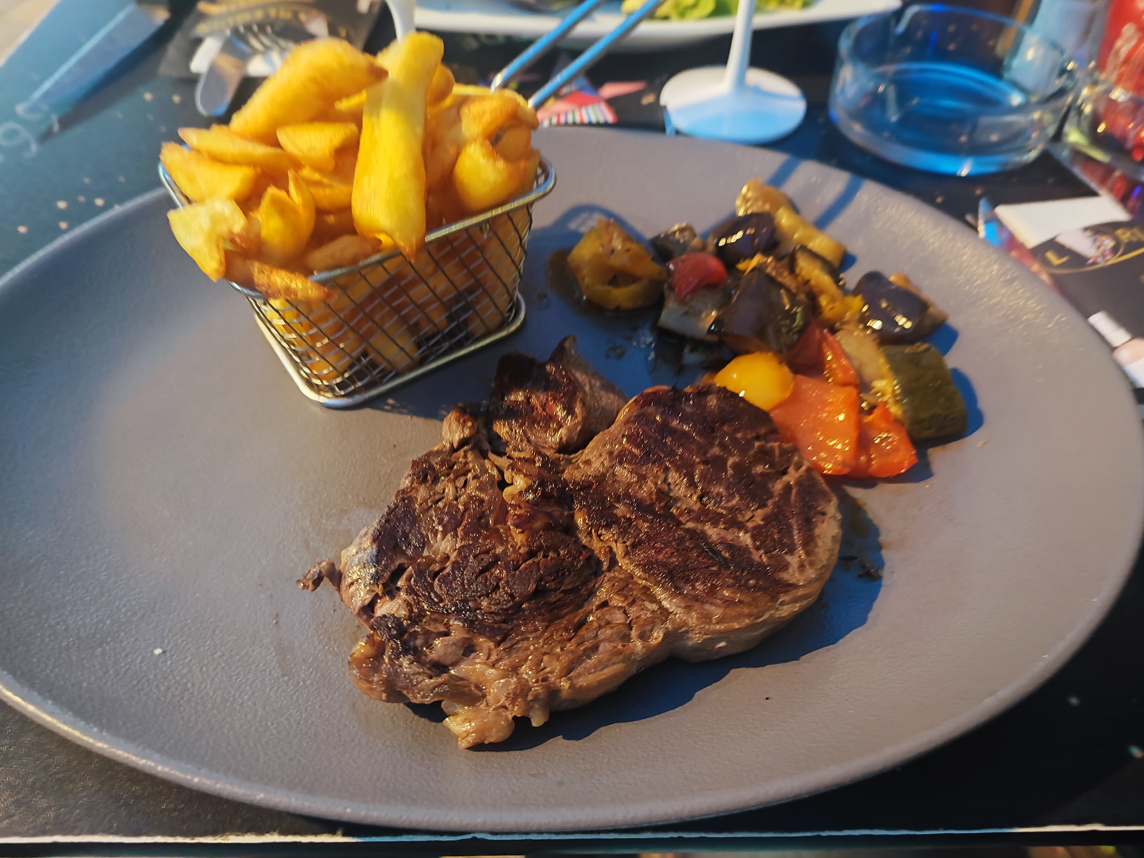 Entrecôte 250g ? Lol 160g maximum attrape touriste service à d’éploré nous on demandée de débarrasser notre assiette (le service on le paye) aucun goût mettez directement 40€ à la poubelle ce serra pareil 🤢 je répond ici ducoup demandée à vos serveur avant de répondre au commentaire merci nous étions 4 sur votre terrasse à ce plaindre de votre entrecôte !