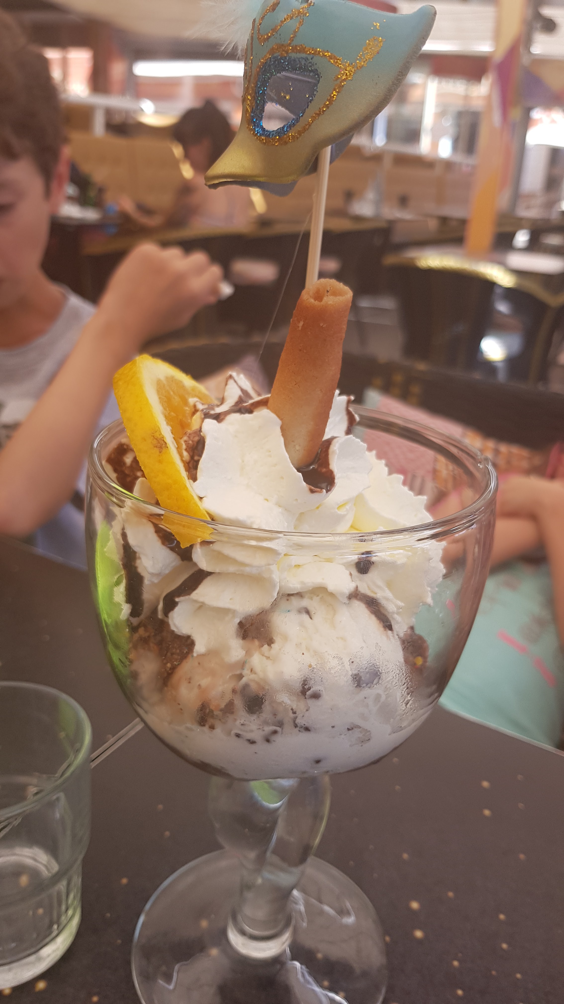 Nous nous sommes arrêtés manger une glace avec les enfants. Le serveur qui s'est occupé de nous était très sympathique. Les glaces étaient bonnes et joliment décorées pour le plus grand plaisir de mes filles.