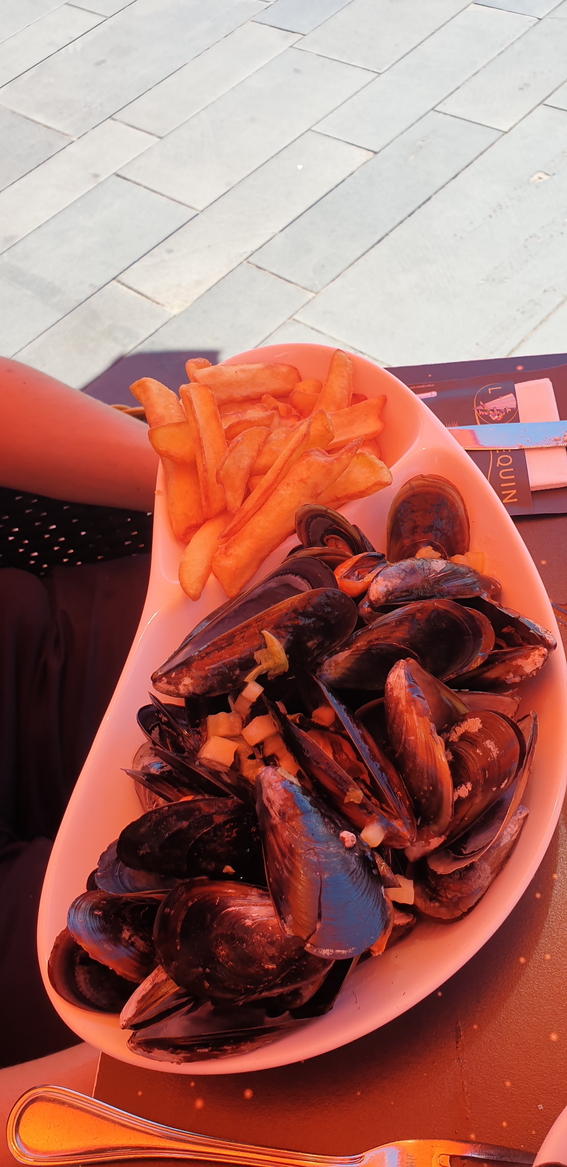 Moules trop chères pour la France, serveur déçu de l addition visiblement et alors la table d en face qui n à pas compris que mon fils de 2 ans n était pas une chaîne hi-fi et que le son ne se réglait pas ! (Petits esprits pathétiques) ... globalement ça ne casse pas la baraque comme on dit chez nous ! Encore bien que vous avez la petite serveuse à lunette super sympa ! Bref , on ne reviendra pas ! D autre restos méritent bien mieux nos sous 😄