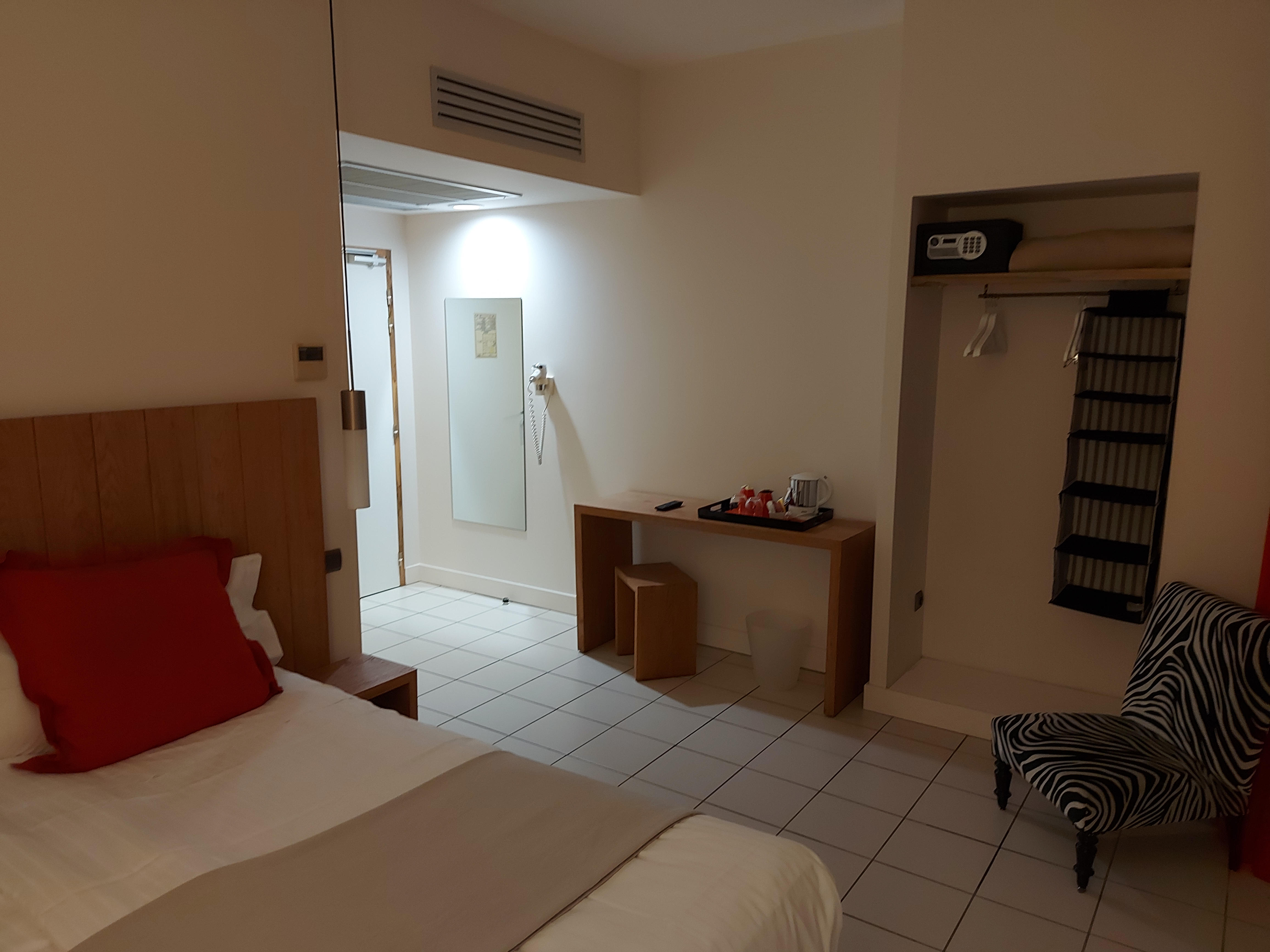 Nous avons passé un weekend dans cet hôtel. Très propre, les chambres spacieuses, la climatisation, et une baignoire qui convient aux plus grands. Le petit déjeuner est de bonne qualité. La gérante est très agréable. Nous n'avons pas testé le restaurant, la carte avait l'air un poil chère pour les présentations proposées. La fréquentation de la ville choque un peu quand on ne s'y attend pas, mais l'hotel n'y est pour rien.