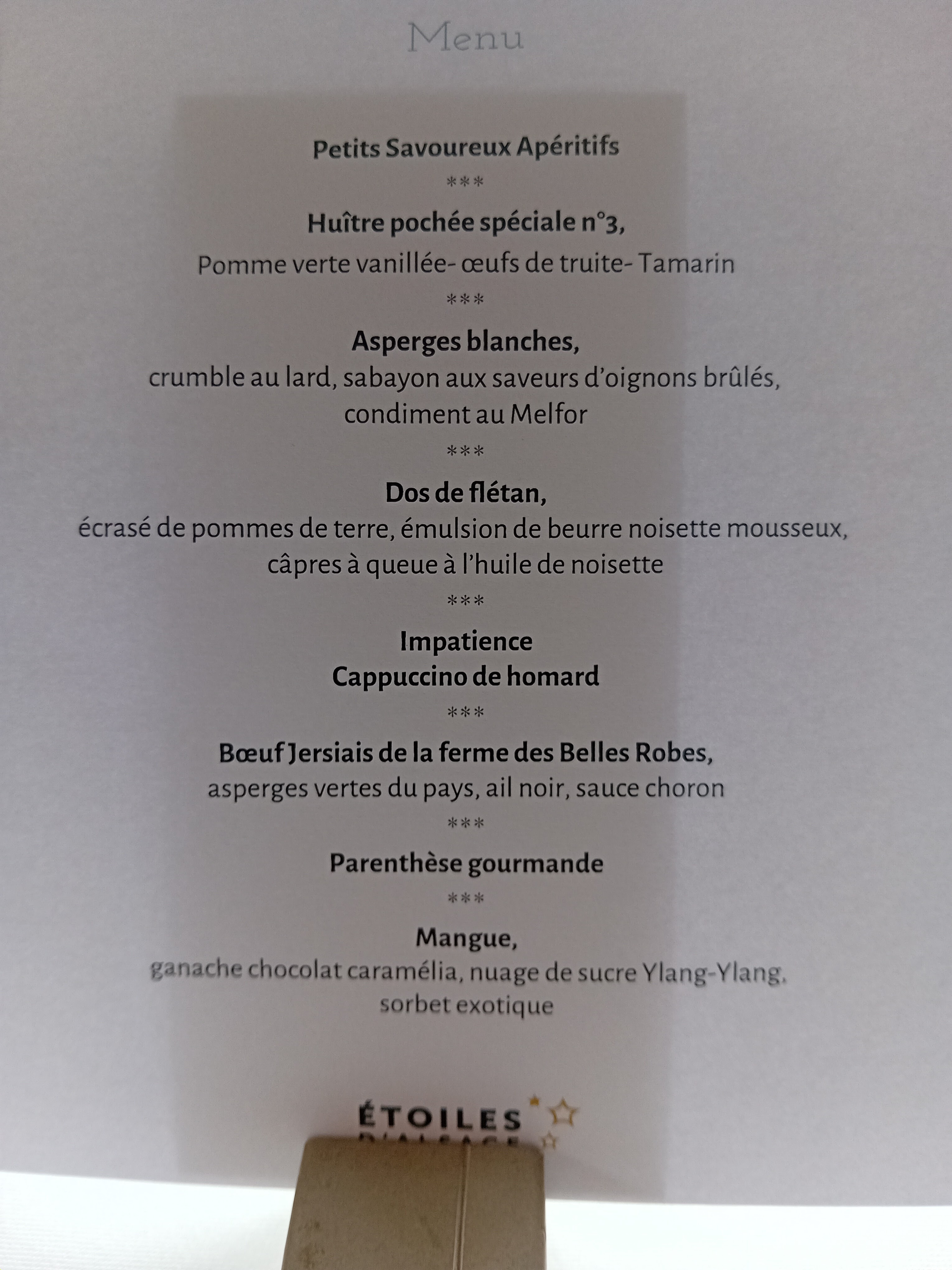 Un des établissements incontournables du grand est, mérite à mon goût largement une deuxième étoile, compte tenu de la qualité de la cuisine et d'un service sans failles. Excellent, le top du top.