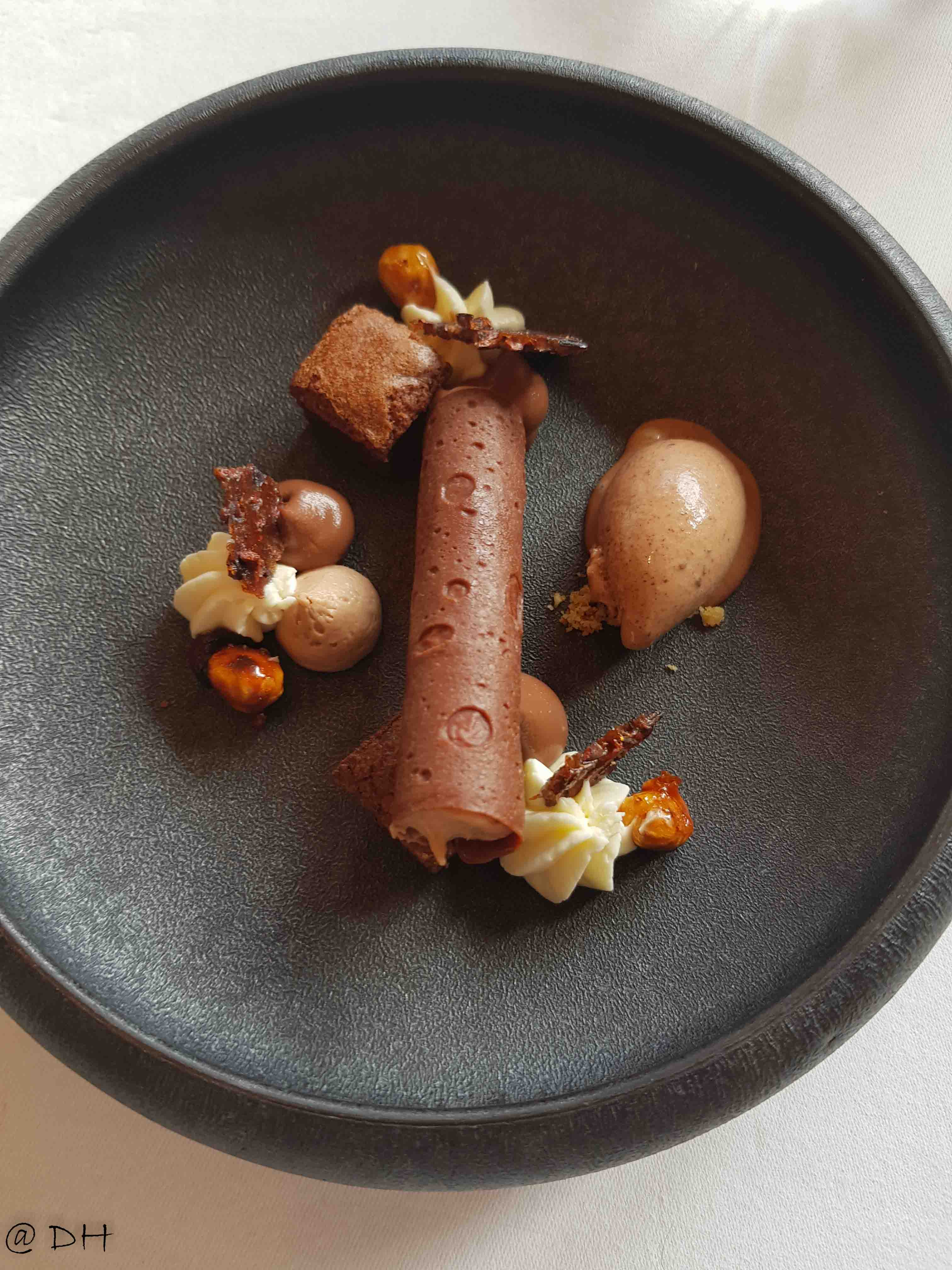 Le cadre est vraiment magnifique, nous étions dans le coin de la véranda, et la vue sur le parc était top. Par contre le coin est perdu dans une très grande forêt. La carte est assez élaborée mais les accords sont un peu compliqués et pas toujours réussis sauf les desserts qui étaient très réussis. Le service était parfait, très sympathique et souriant.