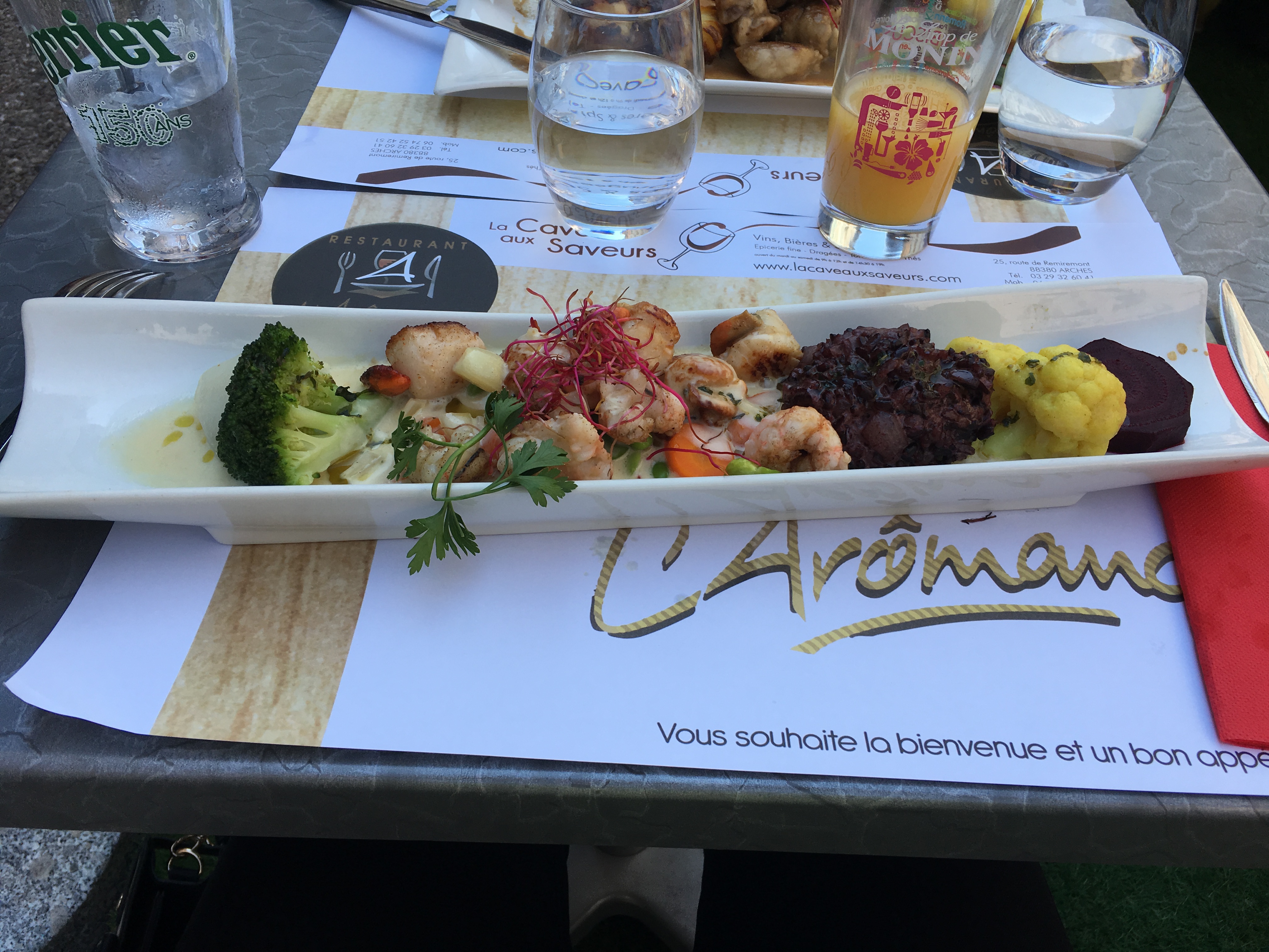 Juste excellent.... salade de ris de veau, st Jacques et langoustines accompagnée d'un vaqueyras blanc... rien que l'idée me donne envie d'y retourner