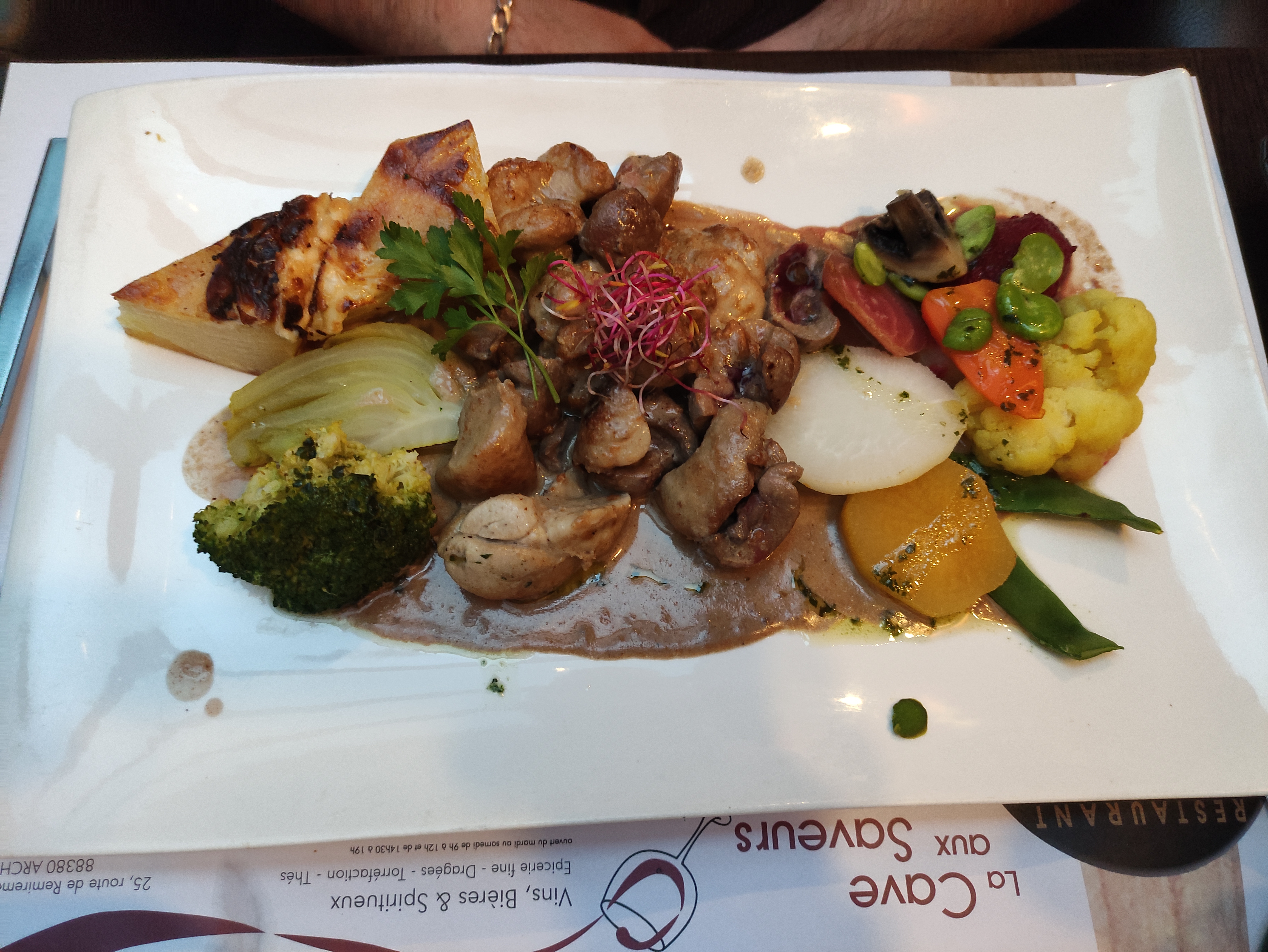 Très bon, assiette coloré avec des légumes atypiques et généreusement garnie. Une belle cave pour accompagner tout cela. Je recommande.