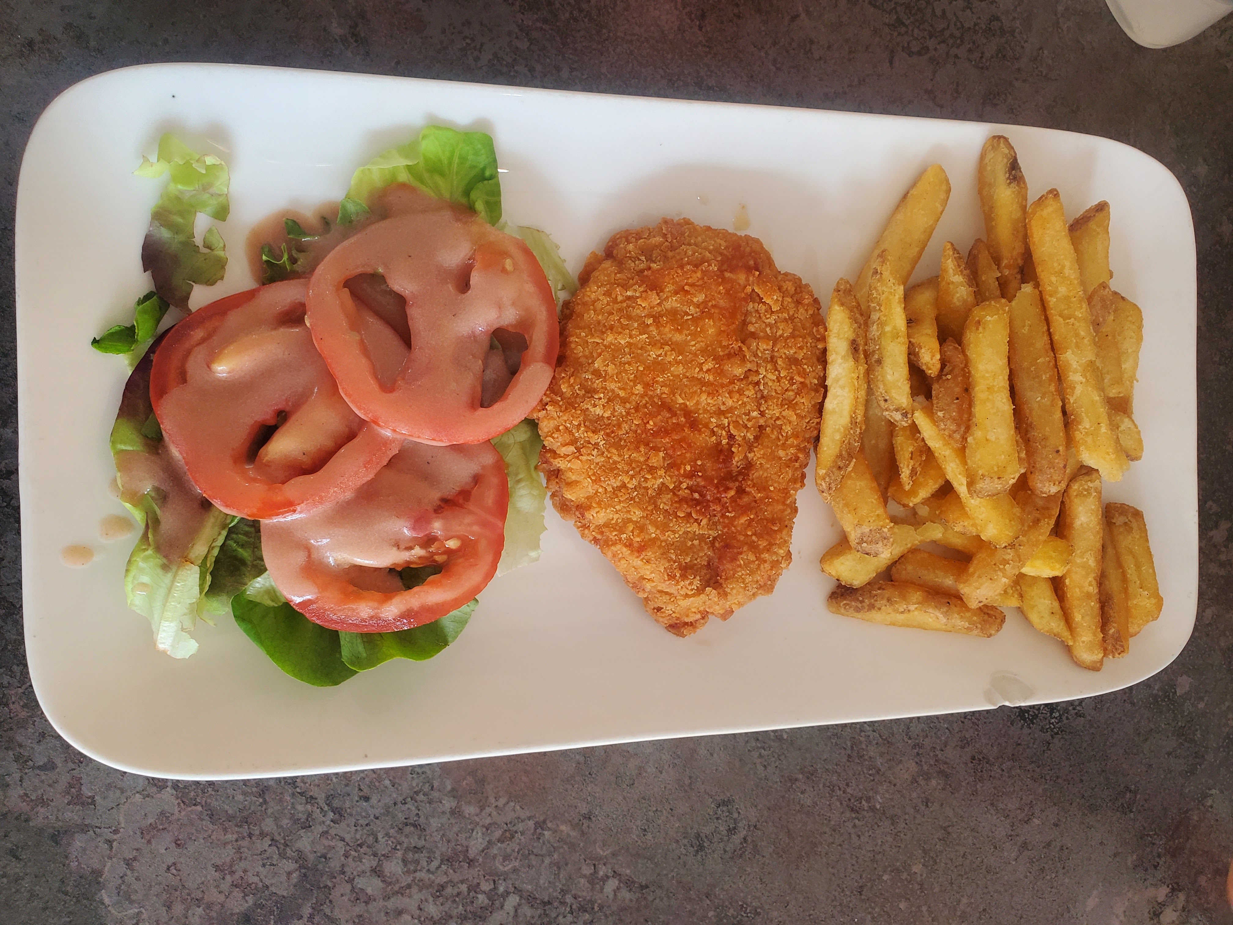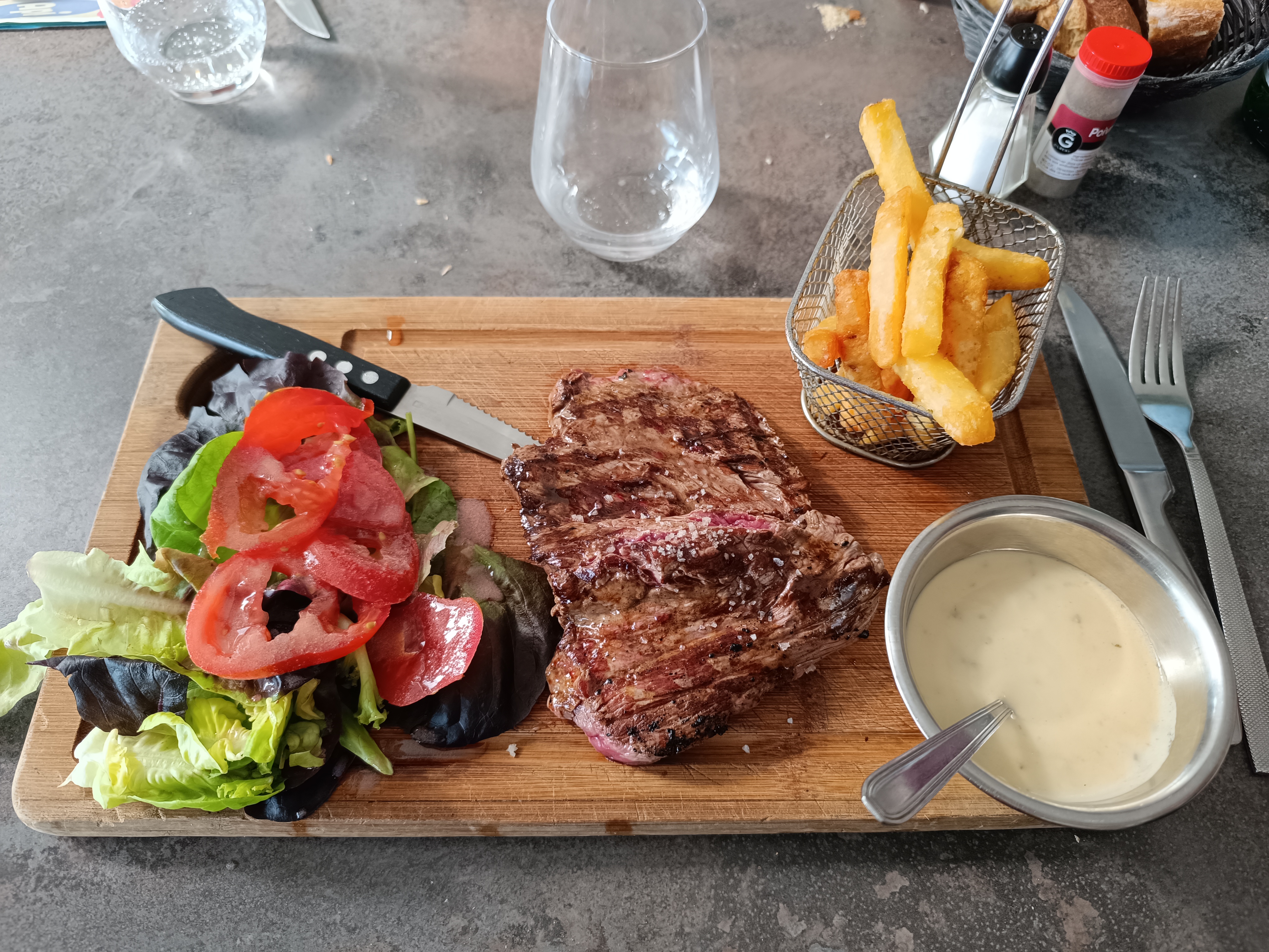 Repas simple mais goûteux avec une viande tendre et une cuisson parfaite. La sauce au roquefort est très bonne et les frites sont croustillantes et moelleuses... juste parfait. Merci pr votre gentillesse et votre accueil chaleureux.