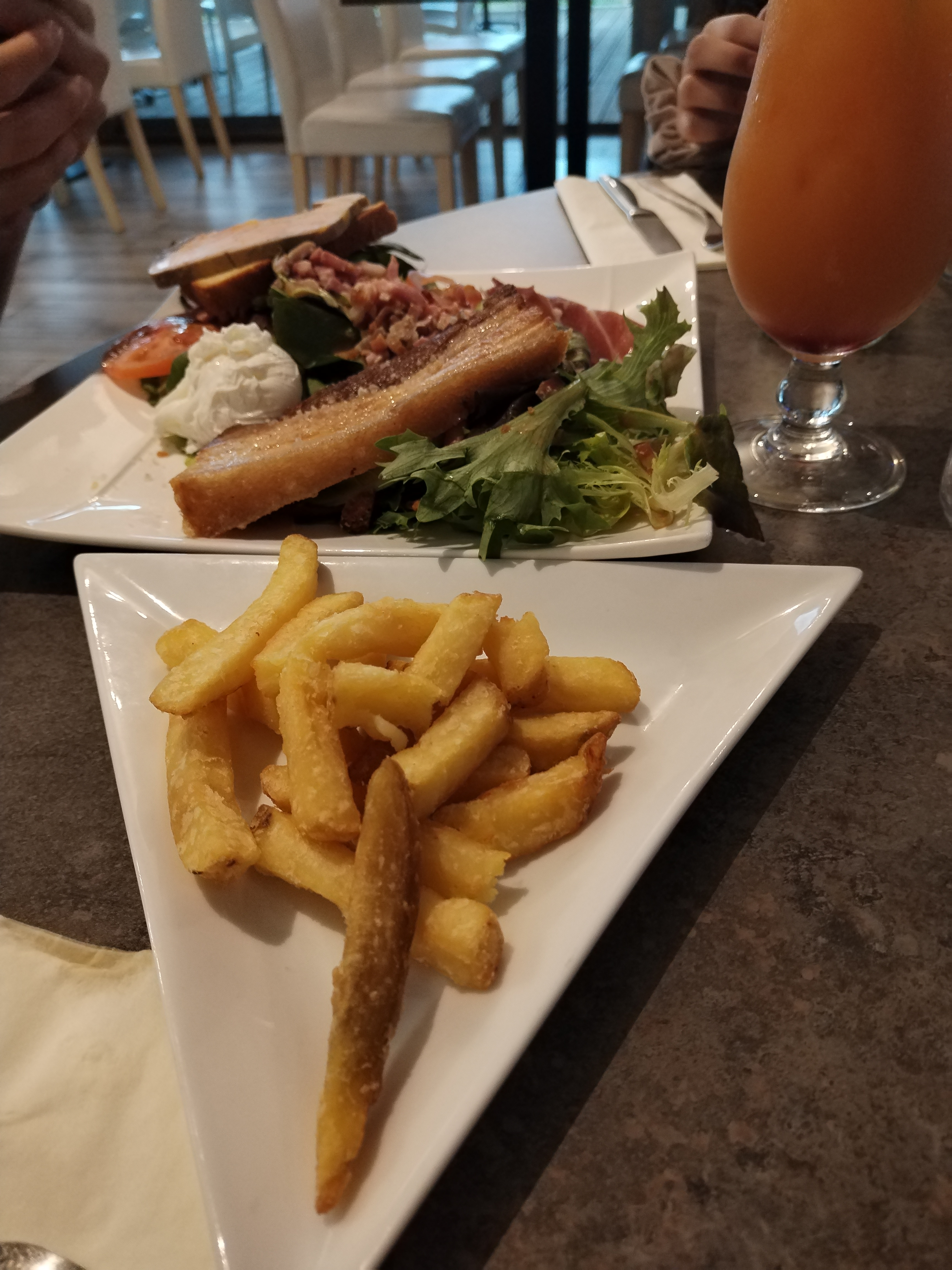 Par où commencer 😅 Les serveuses étaient perdue.. 35-40min pour avoir nos plats qui sont arrivés froids et pas cuit… Nous avons fait retourner nos plats en cuisine, le miens n’était toujours pas cuit (camembert feuilleté la pâte était crus donc très élastique à manger) Pomme de terre sûrement en converse, les oignons n’était pas cuit également… Dommage que ça soit des produit industriels (surgelés, conservés, bocaux…) Nous avons eu l’apéro en même temps que le plat.. Vraiment déçue je m’attendais à autre chose, du moins de la meilleure qualité… Par contre la salle/terrasse du restaurant est très jolie et propre!