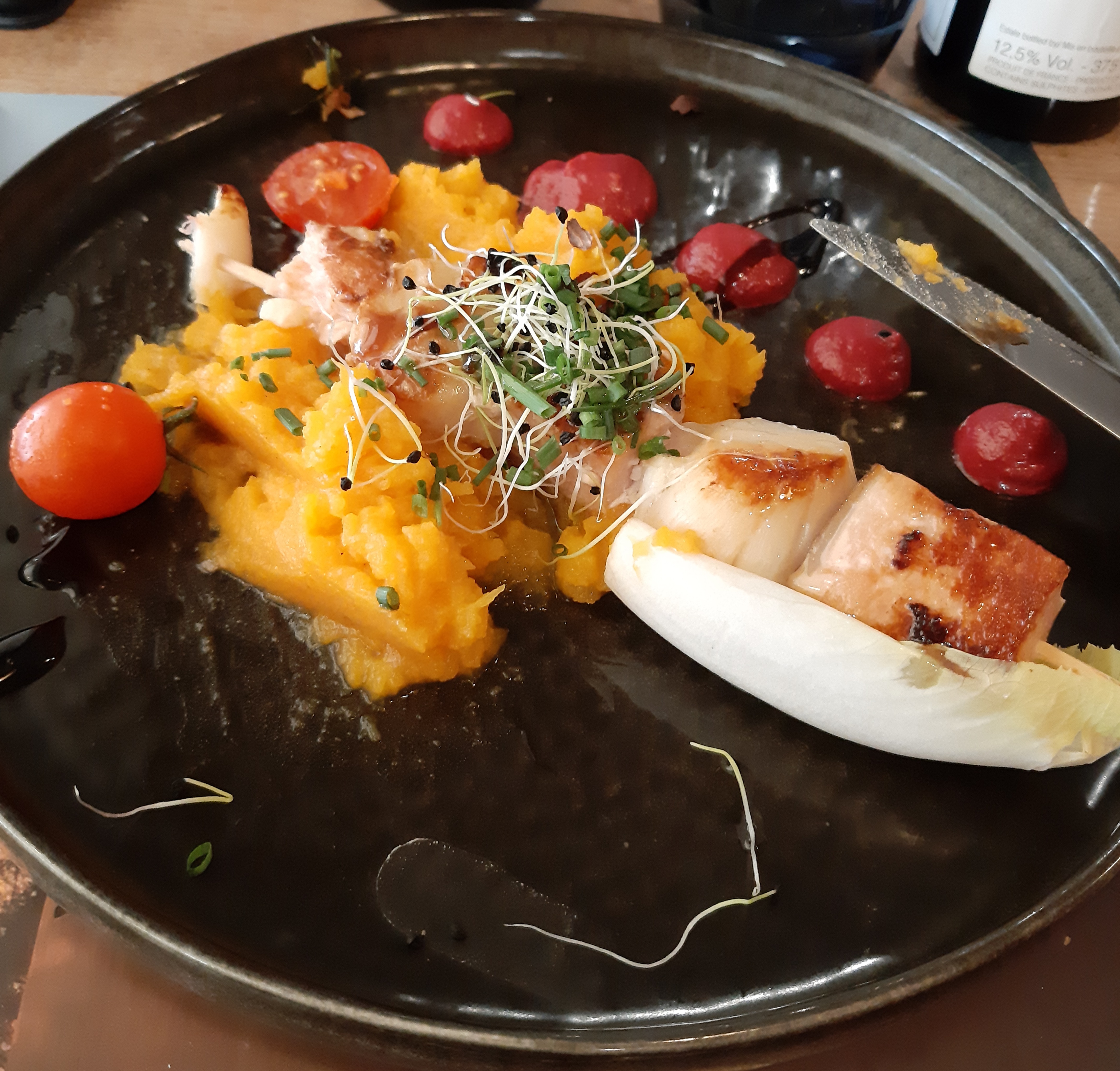 Nous sommes très contents de nos plats qui étaient délicieux. Très belle présentation. De l art et du goût dans l assiette. Ce qui mérite 5 étoiles.Cependant certains commentaires de la serveuse déplacés voire vexants. Cela nous a cassé une partie de ce moment qui aurait pu être formidable. Pourquoi recevoir les clients de cette façon ???