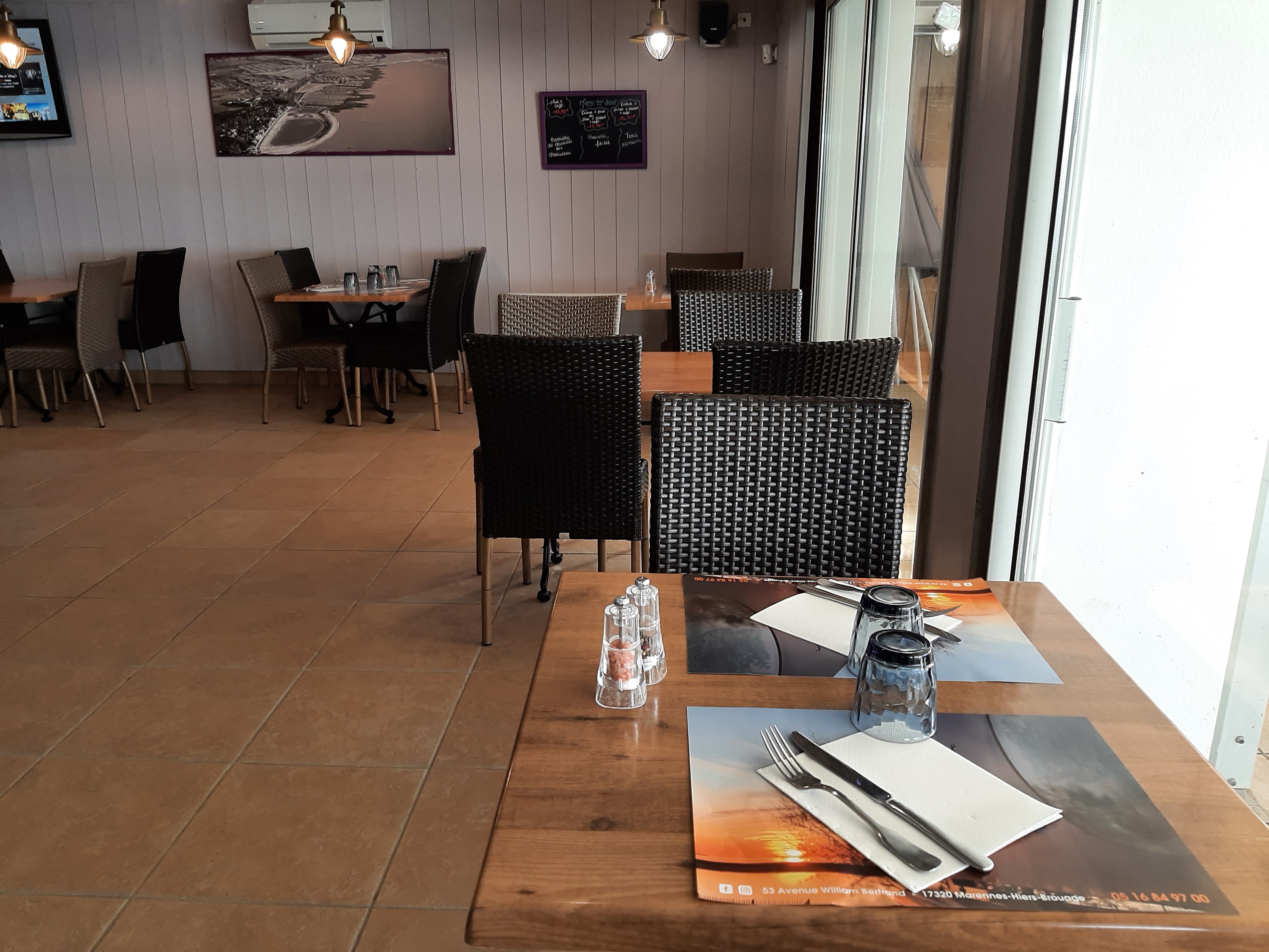 Etablissement présentant beaucoup de plats terre-mer et nous avons chercher longtemps sur les menus et cartes , les fameuses huîtres de Marennes, les grandes oubliées ! Cependant le personnel est très agréable, le service est rapide .Néanmoins nous aurions aimé trouver plus de propositions de produits locaux : huîtres , maigres , pâtisseries charentaises ... au lieu d'avoir à choisir pour la formule entre côte de boeuf, mignon de veau et pavé de requin ! Etions en plus placées en terrasse, le soir à 21H sans l'avoir demandé et n'avons pas apprécié notre dessert (pain perdu au rhum pour mon amie et ananas rôti, glace au caramel beurre salé) car la température était frisquette.