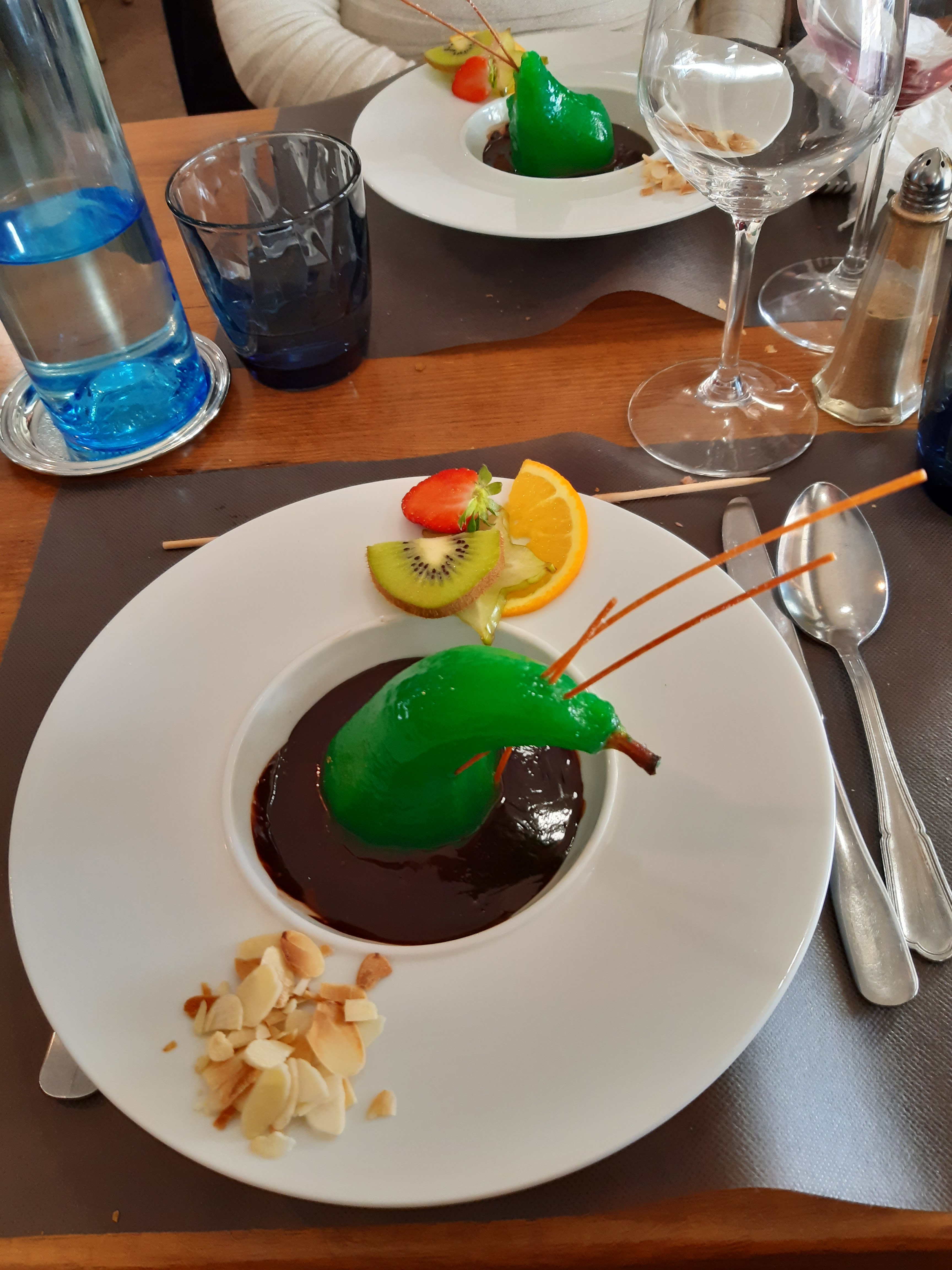 On voit que le chef essaye de faire bien mais dommage de mettre tant de sauce qui masque le bon goût de produit comme l’espadon ou la st Jacques poêlée. Un effort à faire sur le linge de maison qui est en papier et le service. Bouillon Chartier à Paris avec des menus à 15€/personne arrive bien à mettre des nappes et des serviettes en tissu par exemple.