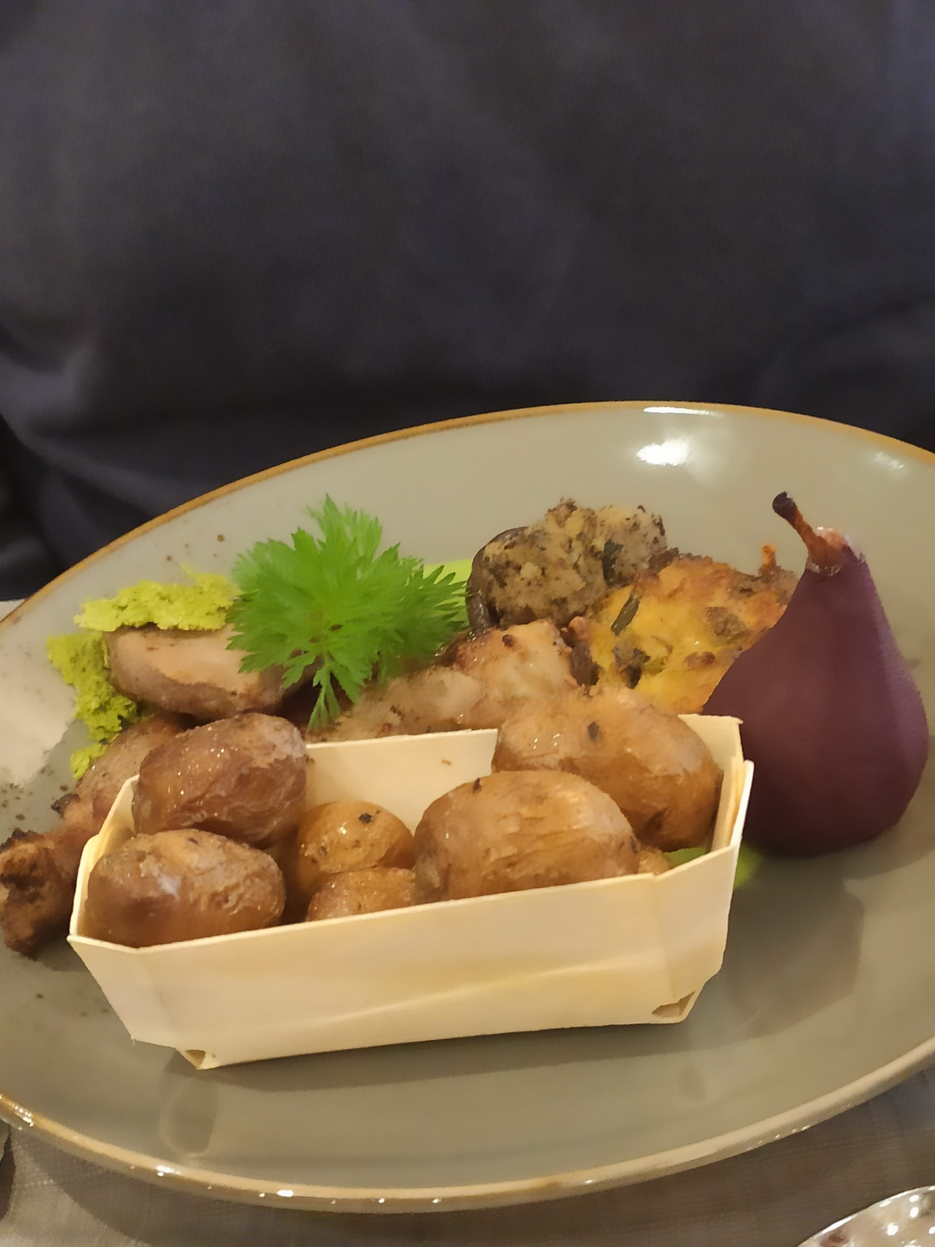 Délicieux avec des produits du terroir. Très bon accueil, personnel et chef très sympa et professionne, nous nous sommes régalés l. Je recommande++.