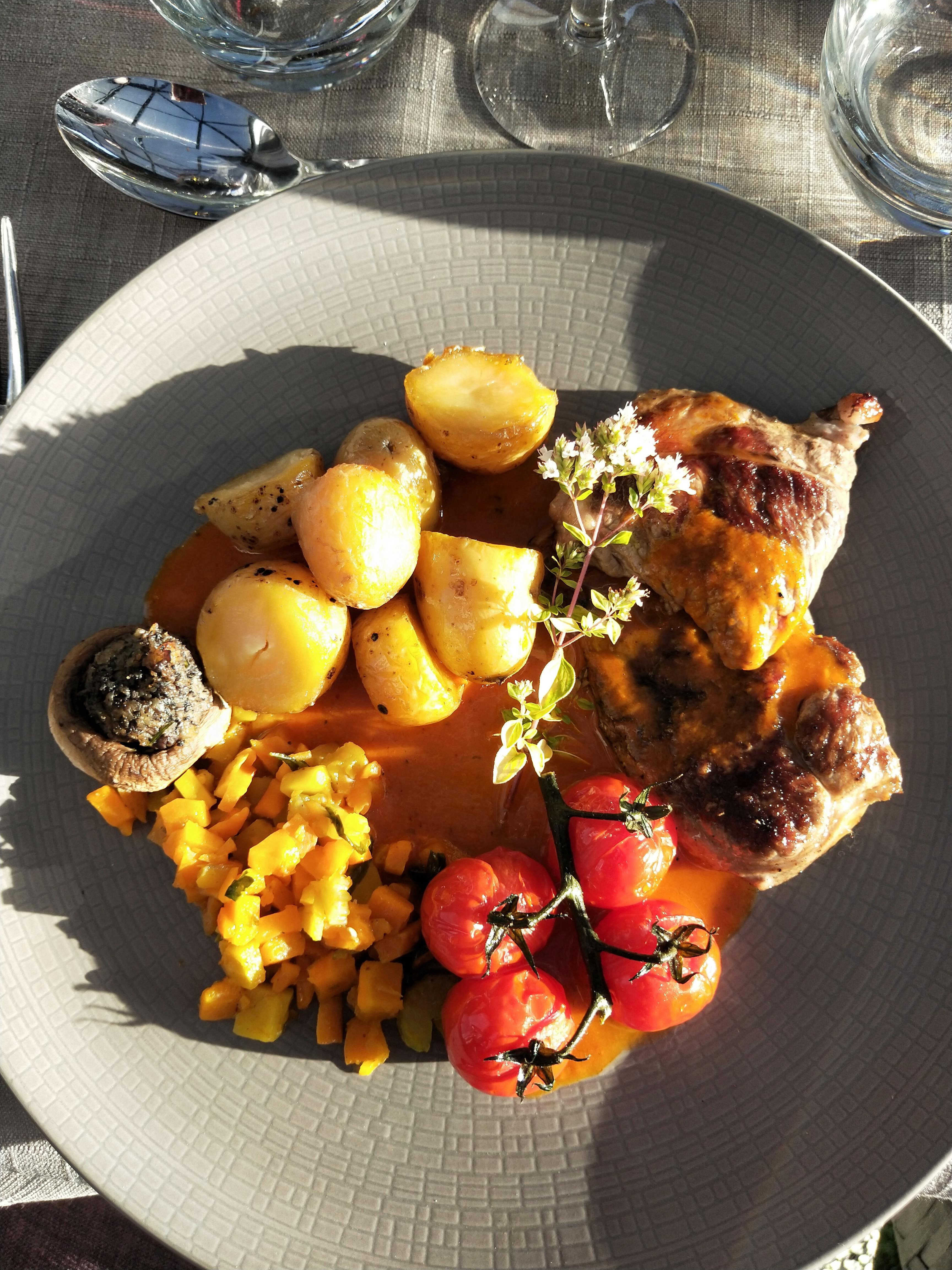 Un très bon accueil, des assiettes colorées pleines de bon produits locaux, assaisonnées avec les aromates du jardin, le tout joliment présenté. Rien ne manque pour passer une excellente soirée. Convivialité assurée. (Petit plus : la touche d'humour de la patronne avec les enfants)