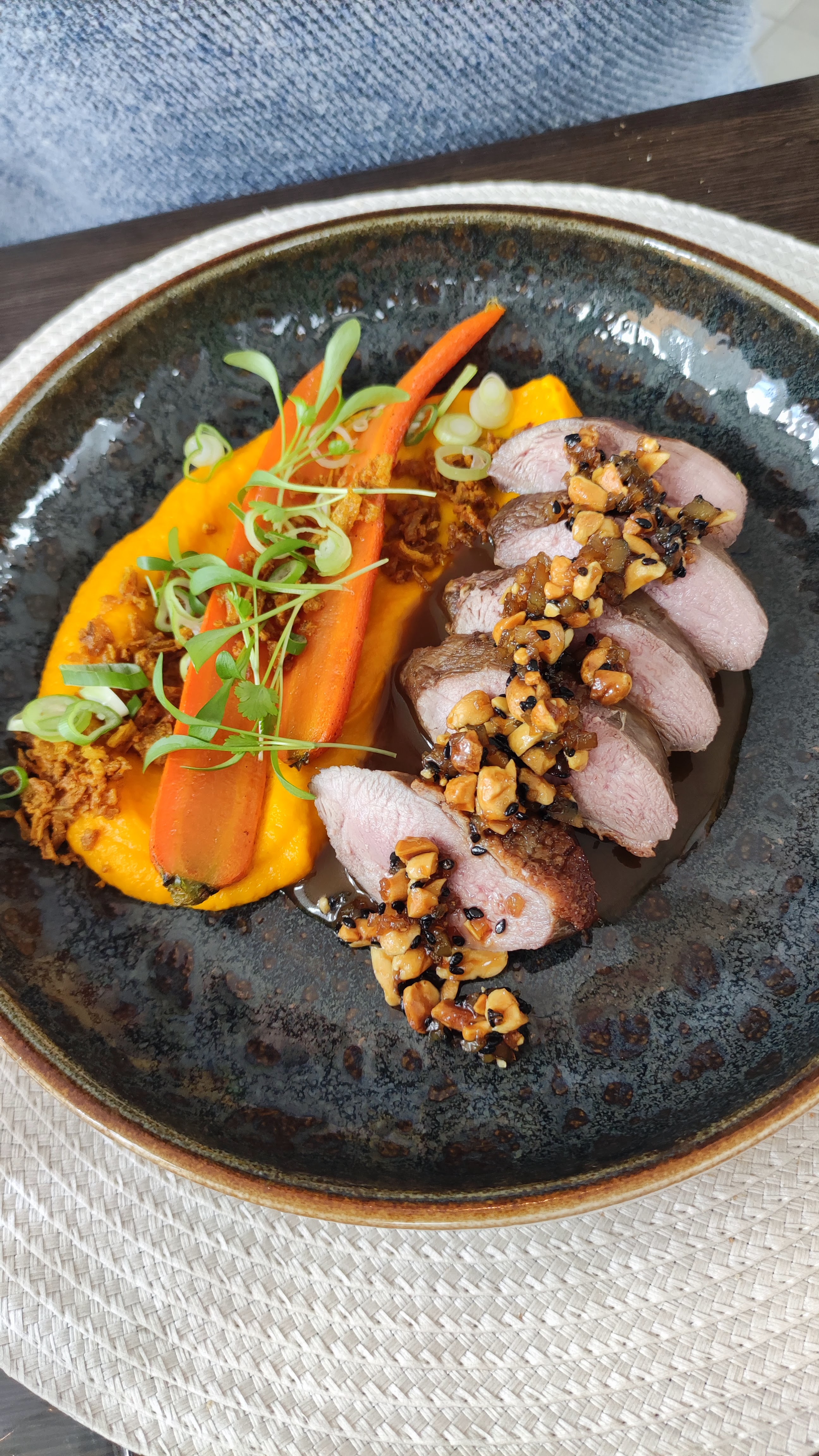 Nous avons passé une très agréable soirée, avec un service très sympathique et une cuisine excellente ! Les goûts des plats sont raffinés et complexes, tout était cuit à la perfection. Les gambas, le croustillant à l'agneau, le filet de canard... Hmmm... Nous en rêvons encore 😊 Avec un choix de musique en arrière plan, (Neil Young, the rolling stones, Chris Rea etc), super ! Une vrai réussite pour notre soirée d'anniversaire de marriage. 👍