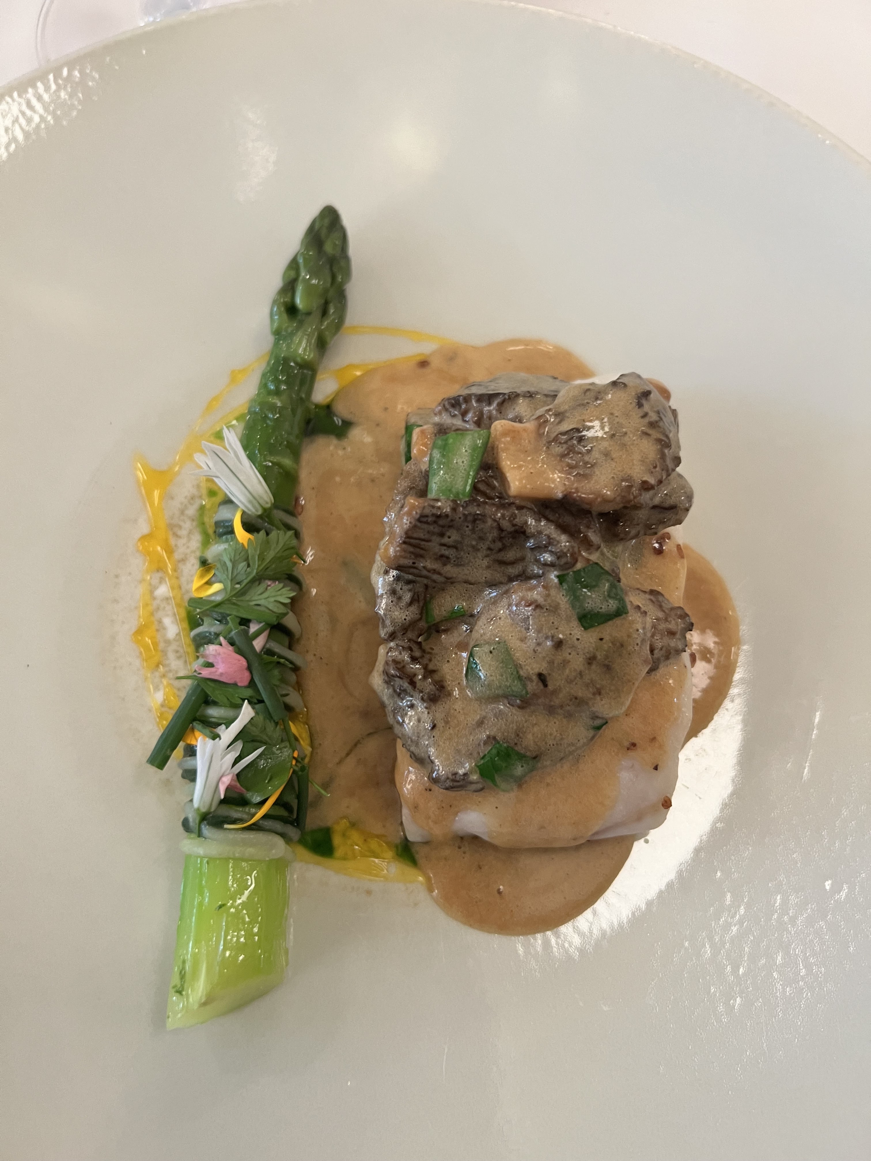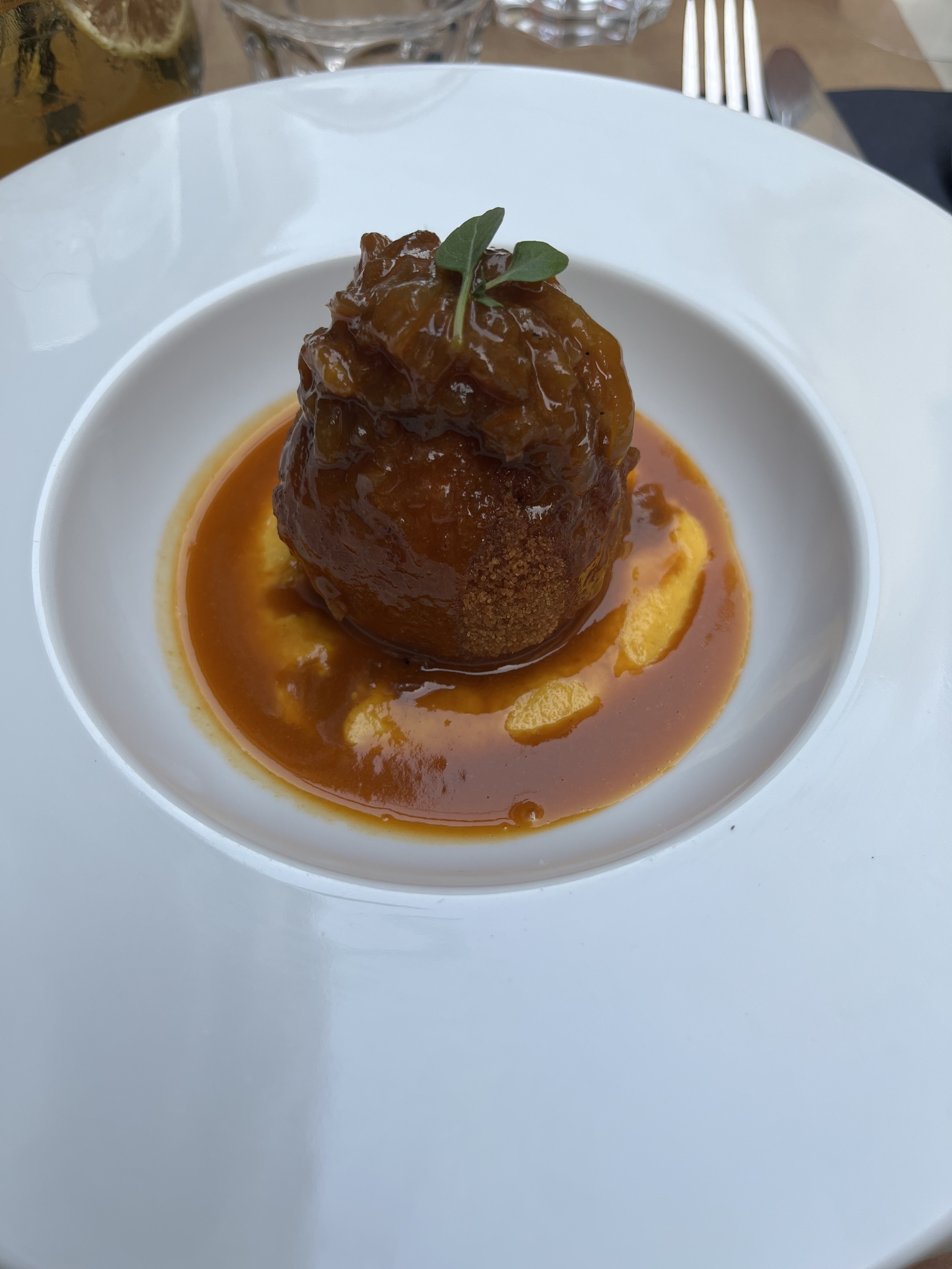 Le déjeuner était un ravissement culinaire. Les plats étaient incroyablement succulents. Fins, légers, colorés, équilibrés. Du salé au sucré, aucune fausse note. Le soufflé en dessert est une tuerie.
