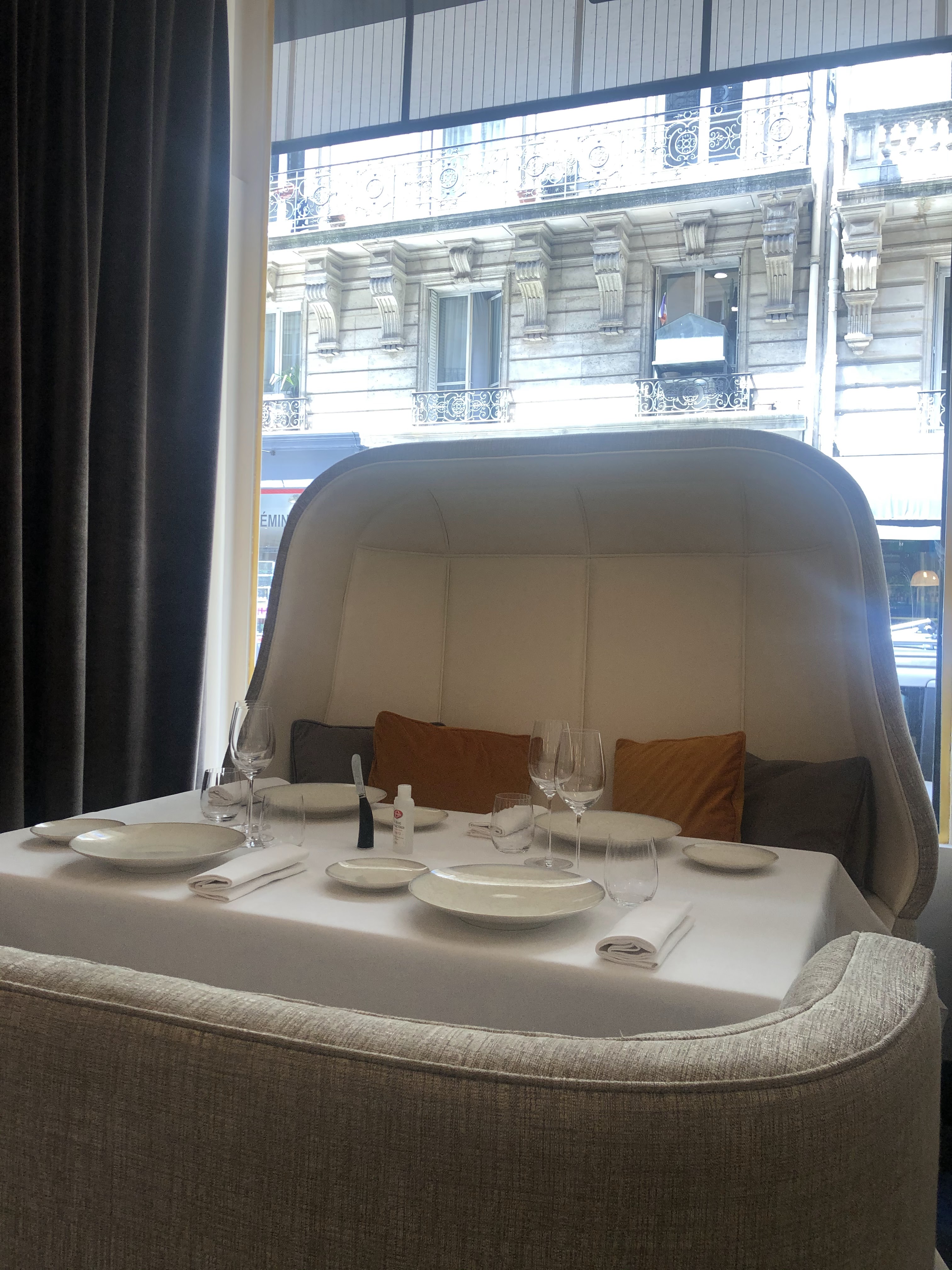Nous voilà à Paris, avec, pour ma part, quelques destinations surprises. Mon chéri, Olivier, lui, trépigne déjà d’impatience de pousser la porte de cet établissement, où il a réservé pour nous deux, au diner, un 19 Septembre 2022 ( enfin je crois que c’est sa secrétaire particulière qui s’en est chargée, et je la remercie infiniment ;) elle se reconnaîtra !) Nous vous laisserons le soin d’apprécier à votre tour la sélection du chef et de son équipe, qui, au-delà de nous émerveiller à chaque bouchée, nous en a mis plein les mirettes. C’est sans compter sur ce bonheur infini d’une cuisine ouverte, qui, à mon tour, m’a fait trépigner de joie ! Les gestes, les bruits feutrés, les sourires et les échanges avec une brigade en pleine action, c’est vraiment quelque chose de génial. Que le chef M.Thomas Boullault vienne lui-même servir les petites girolles dans nos assiettes, crée une dimension supplémentaire. En salle, confortablement installés, admirablement accueillis, tellement que je me sens comme une princesse ( que je ne suis pas, bien entendu ! ), l’ambiance est canon. Chaque membre de l’équipe est non seulement aux petits soins, mais c’est détendu, personnalisé, et hyper professionnel. Nos sommeliers, toujours vigilants à ce que notre verre soit frais, et rempli ( un délice, votre sélection messieurs ! ) ! Sachez que nous sommes un couple très sympa, il paraît même qu’on est beaux. Je digresse. Nous sommes sympas, mais exigeants ! Ce moment nous a comblés de bonheur, il restera comme un souvenir intouchable, pendant lequel personne ne nous a fait les gros yeux pour avoir éclaté de rire, ou ne pas avoir pris la bonne fourchette pour le bon plat ( je crois qu’on s’en est bien sortis, là-dessus ! ). Et encore merci pour la petite liqueur de Feuille de Menthe, gentiment offerte tout en discutant avec vous en fin de service. Exquis. Alors, ne changez rien. Et à bientôt, à Paris, ou à Saumur, au Terrier du Château !