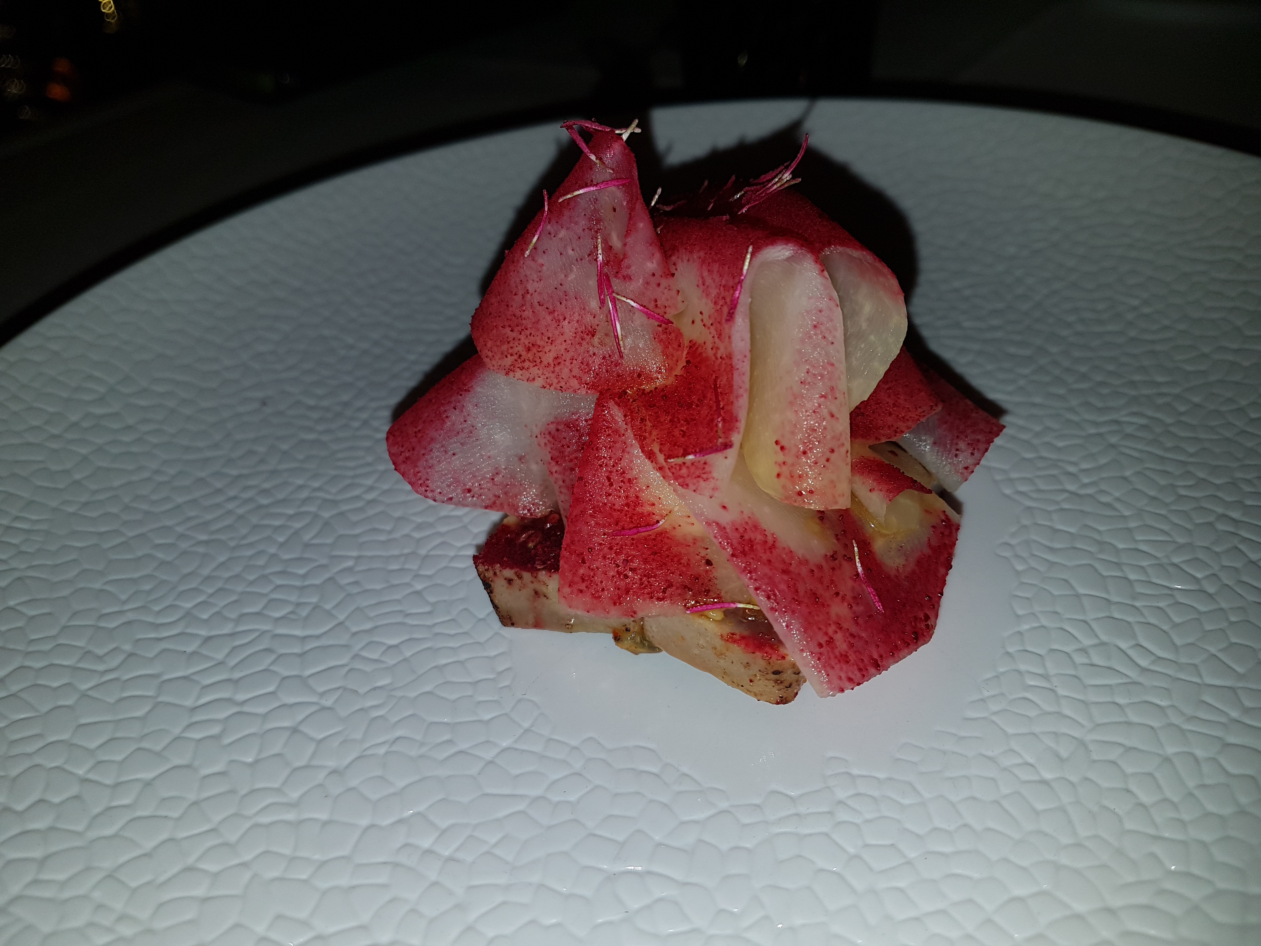 Quelle belle soirée passée dans ce cocoon, une cuisine délicieuse et inventive, une vue sur la cuisine et sur le travail minutieux de ceux qui l'exécutent, un service doux et agréable et enfin un chef charmant et terriblement doué. Merci. Jérôme Neveu Jacquesson