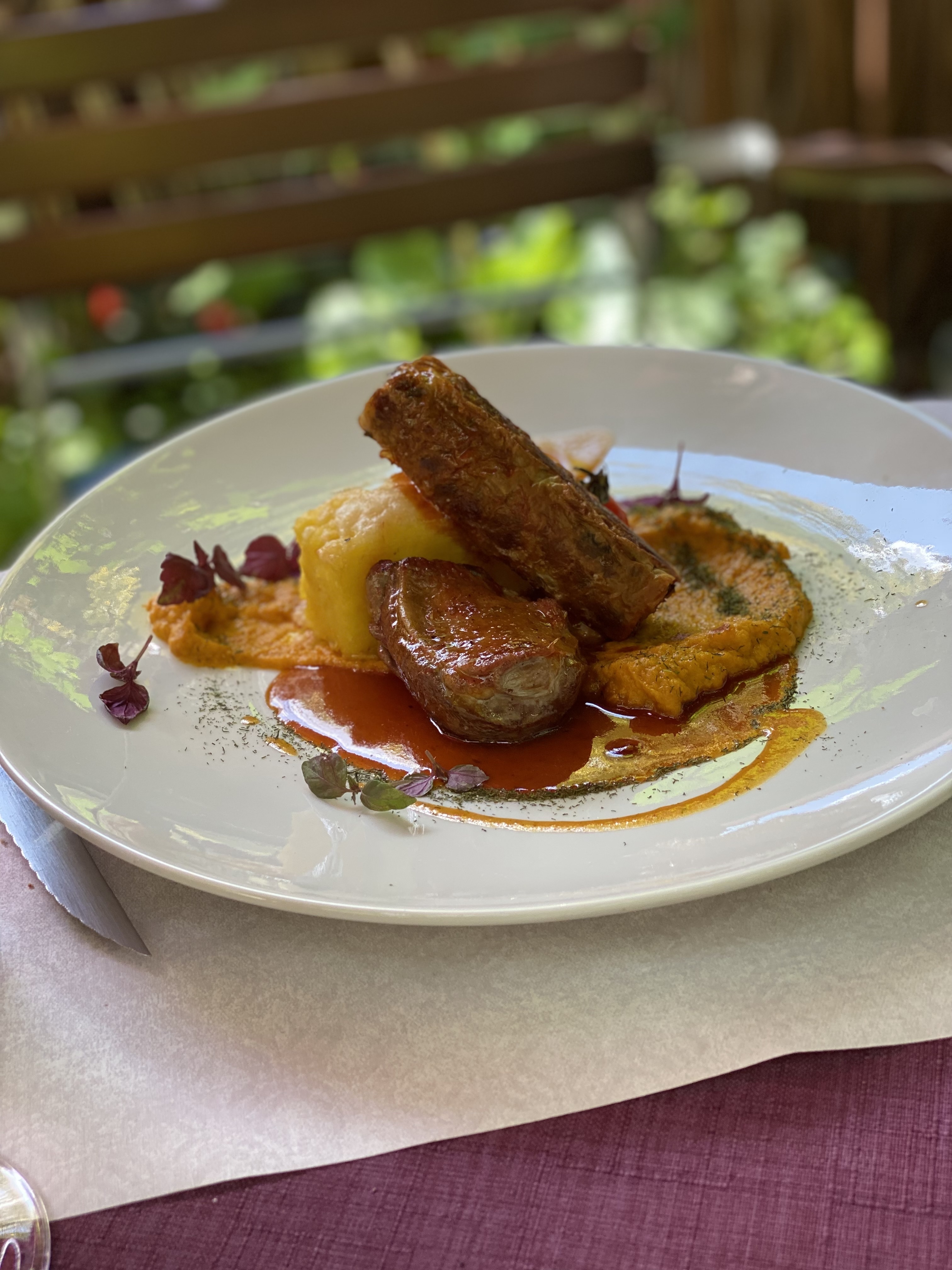 Nourriture extrêmement délicieuse, qui vaut vraiment son prix. Service très agréable et sympathique, beau jardin. Une bonne soirée!