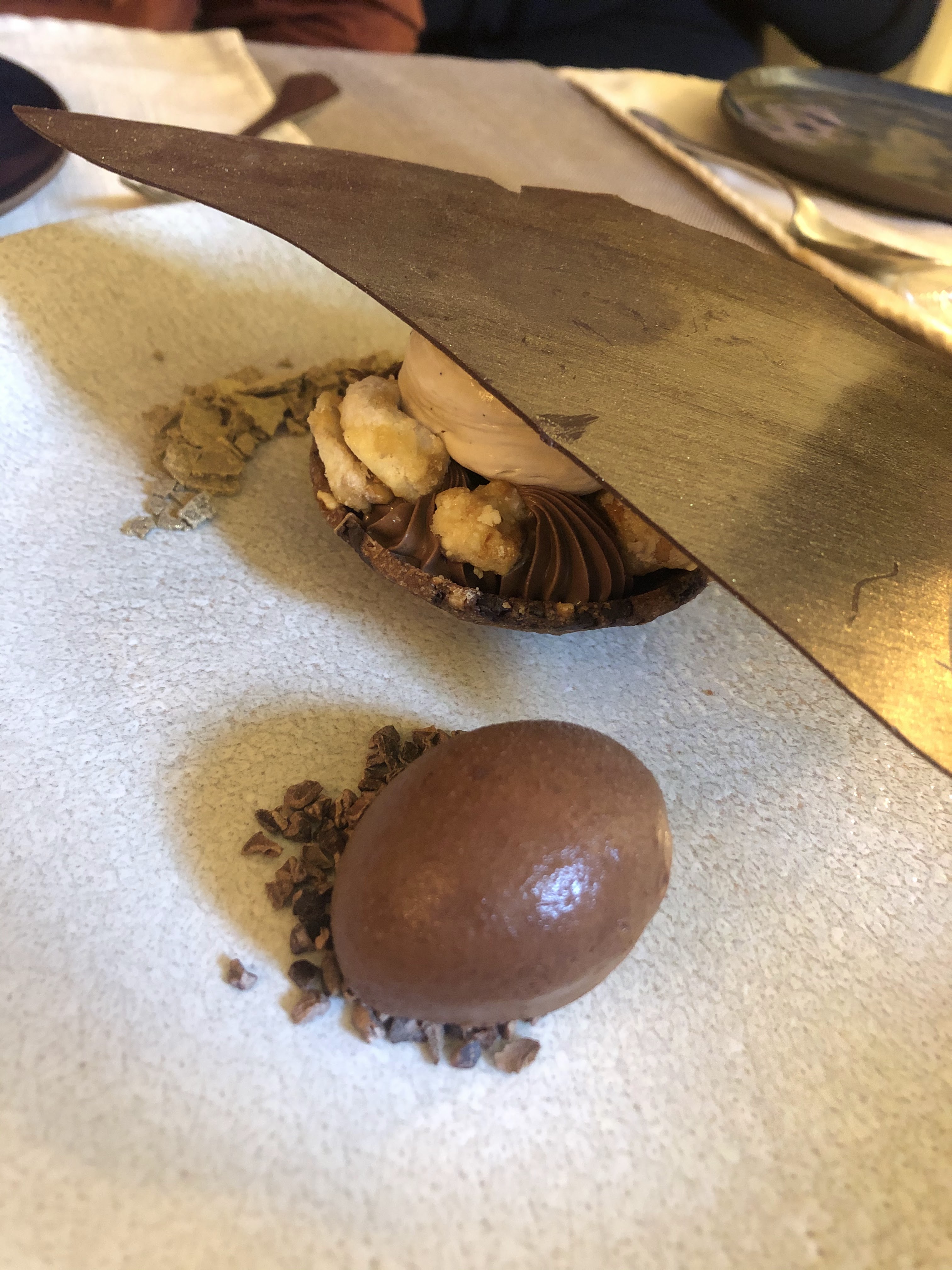 Allergiques s’abstenir. Notre fils est très allergique à la noisette et nous avons eu beau demander plusieurs fois au restaurateur si le dessert préparé spécialement pour lui contenait de la noisette, on nous a assuré que ce n’était pas le cas. J’ai renvoyé une première fois le dessert en question qui lui a été servi avec des éclats de noisette sur le dessus. On nous a resservi le même dessert quelques minutes plus tard sans les éclats sauf qu’il y avait des morceaux grossiers de noisette dans le moelleux au chocolat qui faisait partie du dessert. Mon fils en a mangé une bouchée et a évidemment fait une réaction allergique. Il s’agit d’une très grosse faute professionnelle qui a mis la vie de mon enfant en danger. Le restaurateur n'a pas pris de nouvelles de mon fils par la suite.
