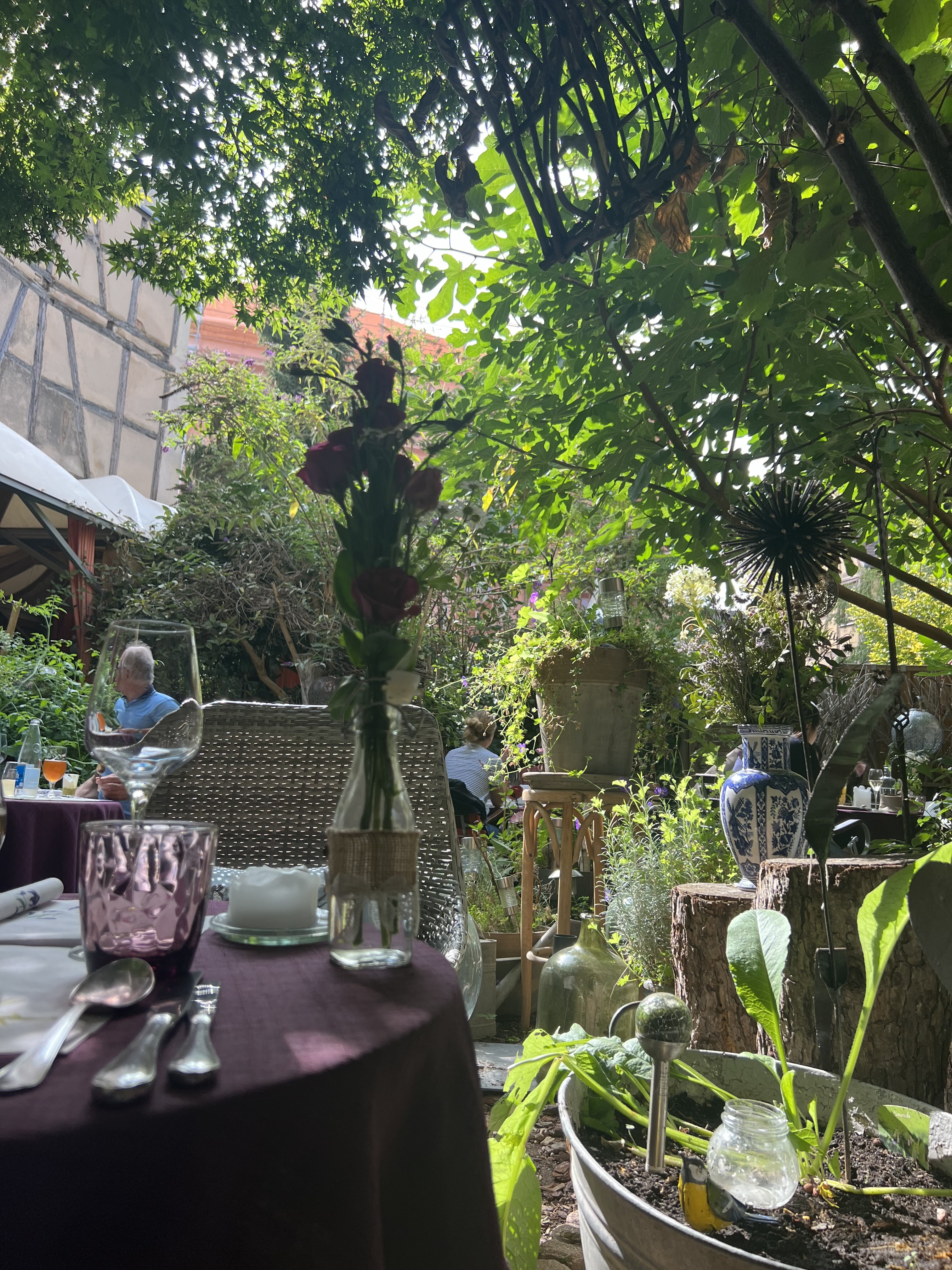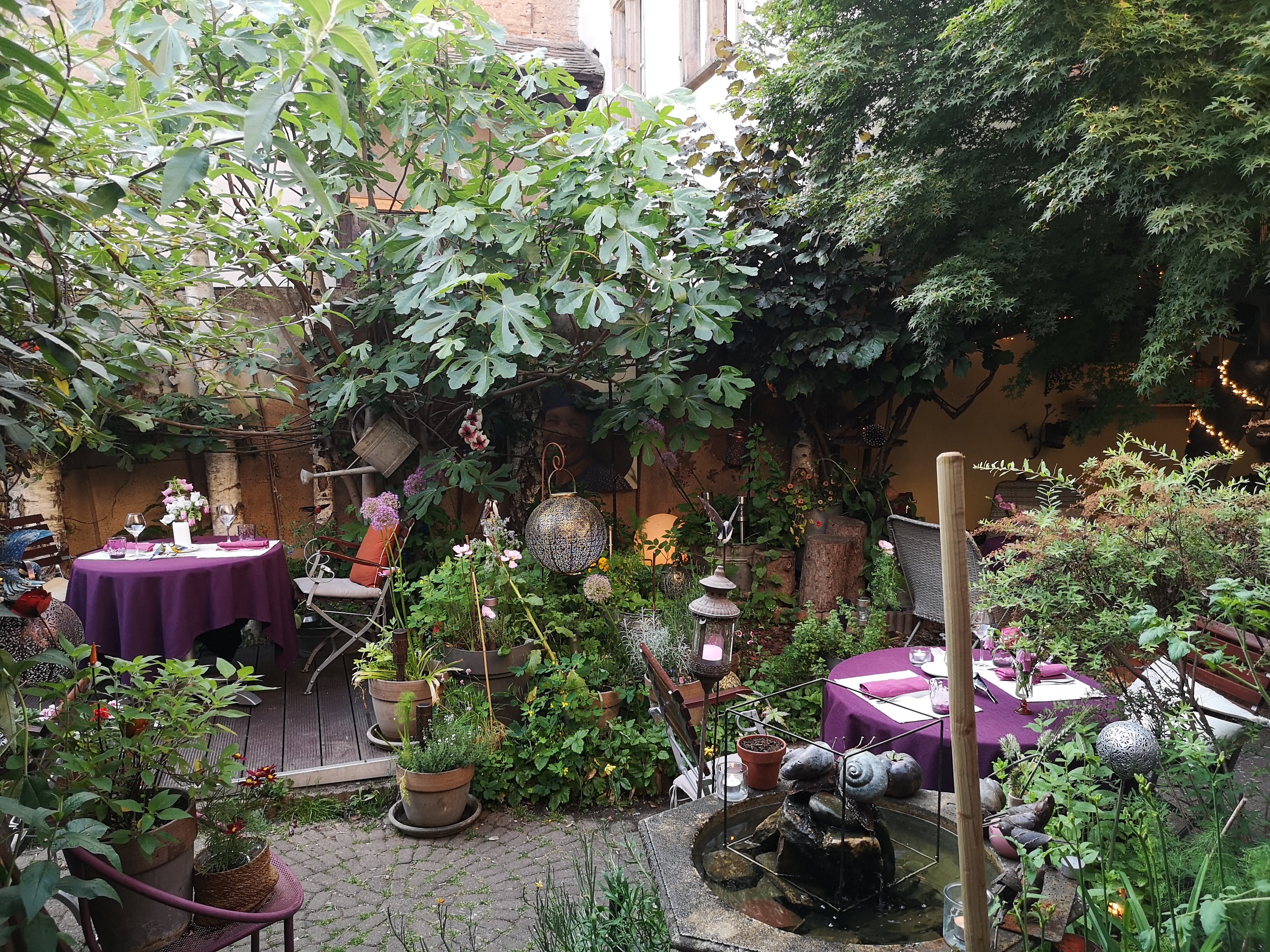 Après un très bon coup de téléphone, nous avons réussi à obtenir une table alors que tout était déjà réservé. Ce fut une très bonne soirée avec une excellente recommandation de vins, une nourriture de très bonne qualité et une ambiance géniale dans un magnifique jardin. Malheureusement, mon thon était bien frit et lorsque je l'ai signalé, un nouveau morceau m'a été apporté, bien frit. Excellent service et très bonne cuisine Réservez plus tôt lors de votre prochaine visite à Colmar, car ça vaut vraiment le coup
