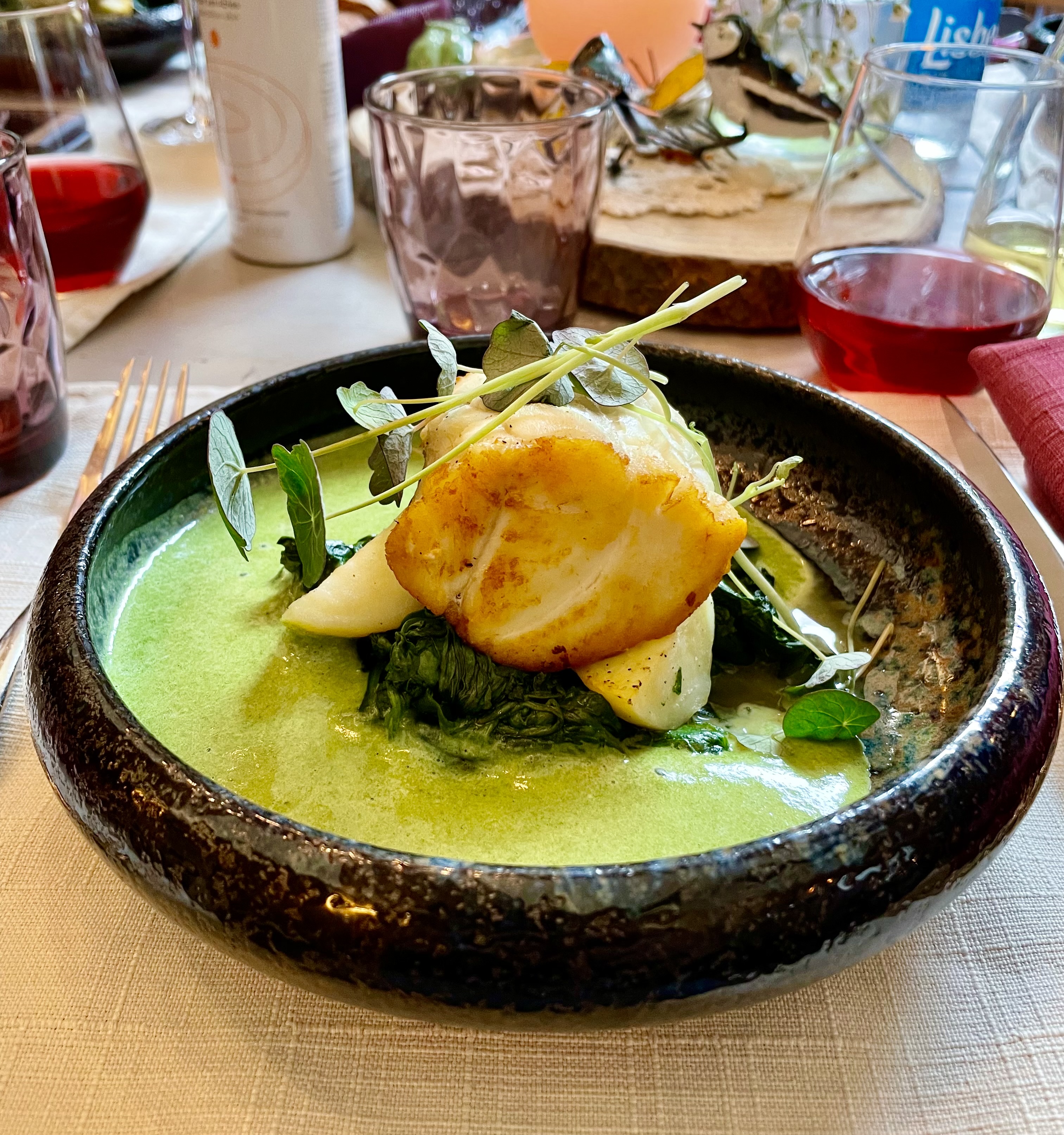 Service au top, vraiment un staff attentionné qui connaissent leurs produits et vins. Super pour personnes avec régime alimentaire sans produits laitiers, sans gluten ou végane. Beaucoup de choix et la cuisine est vraiment élaborée! Magnifique terrasse avec du charme. J’ai adorée et je recommande fortement.