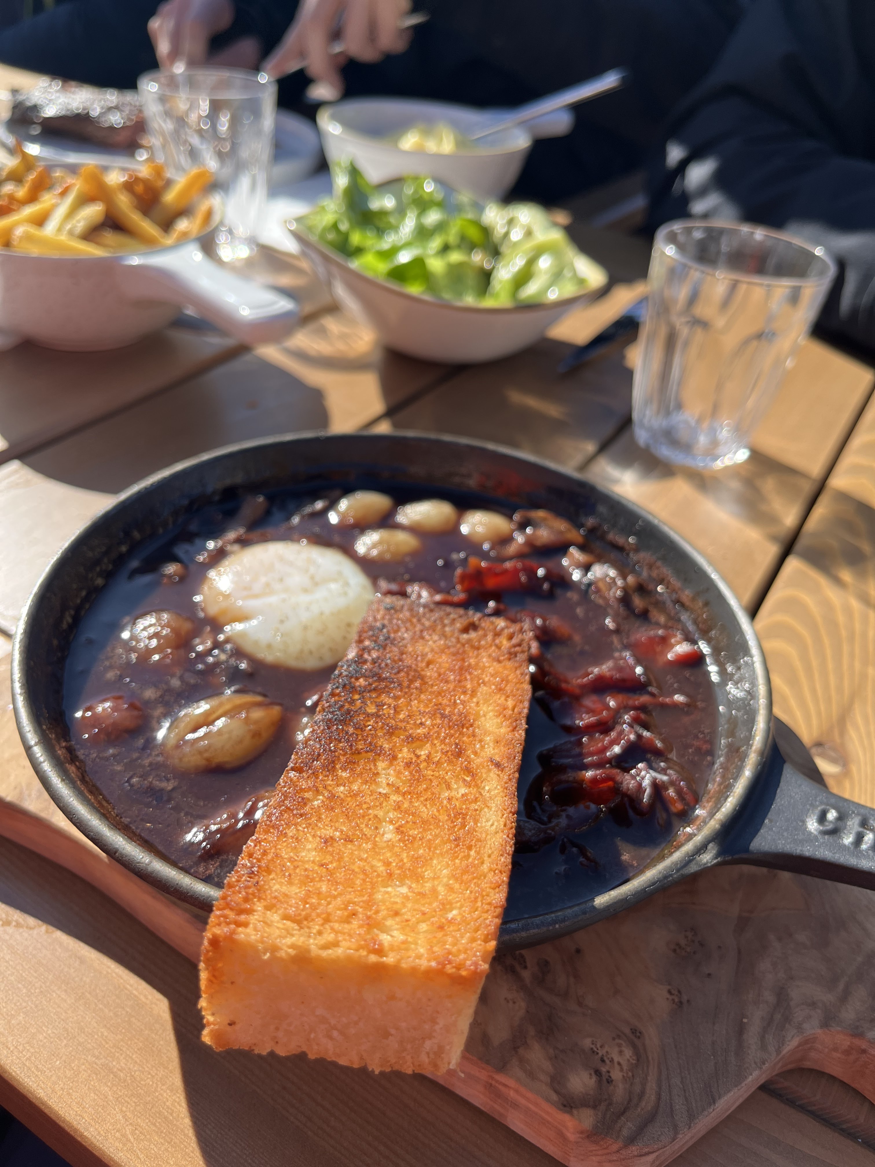 Très très décevant. Nous avons mangé à l'intérieur et commandé l'épaule d'agneau et elle est arrivée froide. Le journaliste en avait apparemment pris des photos pour un article - belle présentation avec du romarin, etc. mais ils nous ont fait attendre jusqu'à ce qu'ils aient fini, puis le serveur est venu et l'a posé sur notre table (sans le romarin, etc. et juste coupé en petits morceaux) et il était servi avec de la purée et quelques feuilles de laitue. Pas de sauce, jus ou confiture, tout simplement. 80 euros pour cela, c'était insultant. Les serveurs n'étaient pas engagés et le maître d'hôtel était désespéré même si nous l'avons poliment expliqué - il n'y avait aucune excuse ni ajustement auquel on pourrait s'attendre à ces prix. Quand j'ai demandé s'il y avait un accompagnement, elle a répondu tu veux du ketchup ?? (j'ai demandé en français💁🏻♀️) vraiment grossier. Le restaurant n'était pas confortable - nous devions garder nos polaires sur nos genoux à l'intérieur. Au total extrêmement décevant et manquant totalement d'ambiance, de service ou de plaisir. En fait, cela nous a tous bouleversés et agacés. Je ne reviendrai pas. Je vous recommande d'éviter cet endroit comme tant d'autres endroits agréables pour manger sur la montagne.