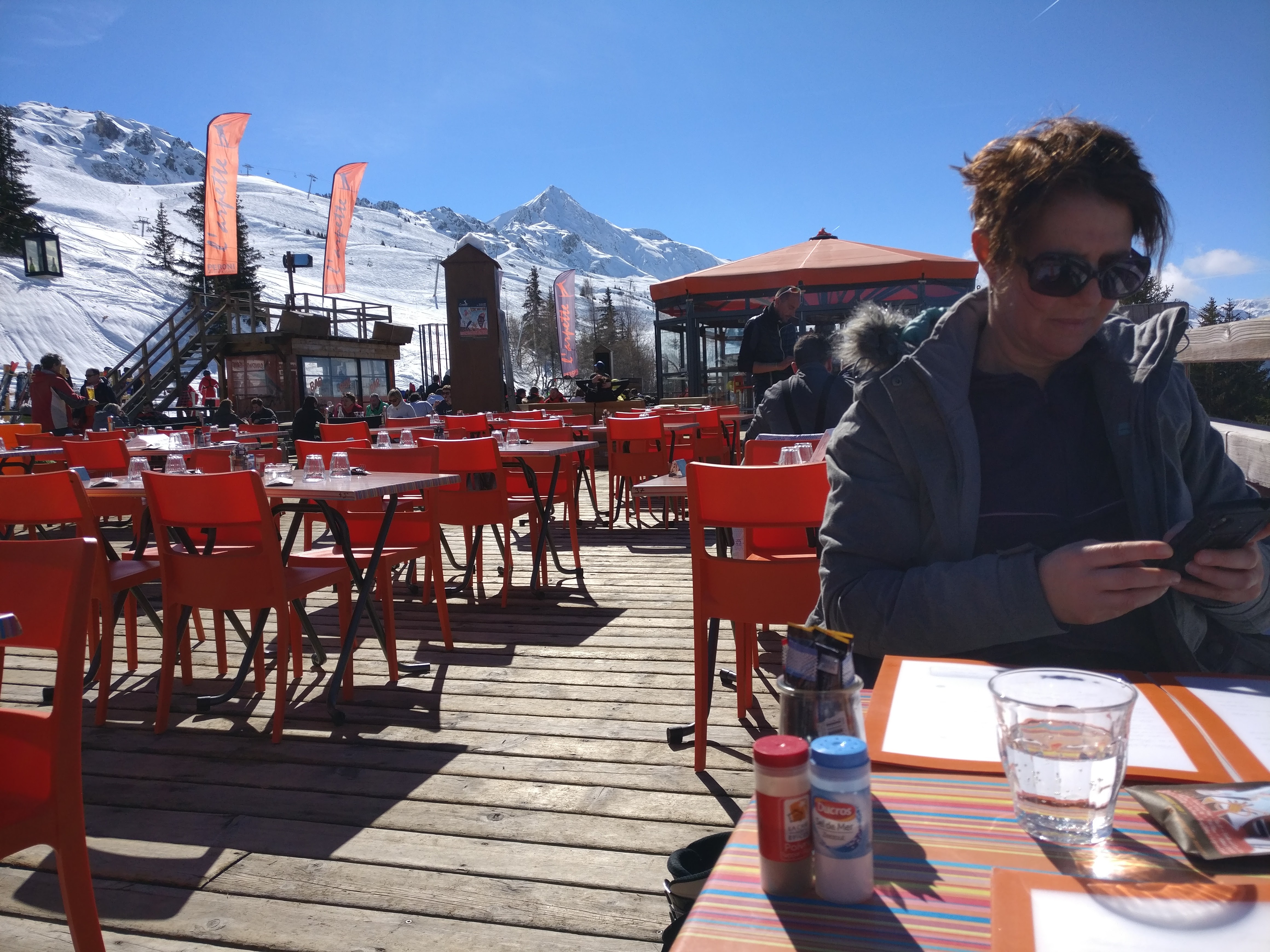 Une pause bien mérité après avoir dévalé les pentes, nous avons d'abord bu un verre en terrasse, grand soleil la vue été magnifique, puis nous avons choisi le self pour déjeuner, nous avons été stupéfait pas la qualité, on s'est régalé. A très vite