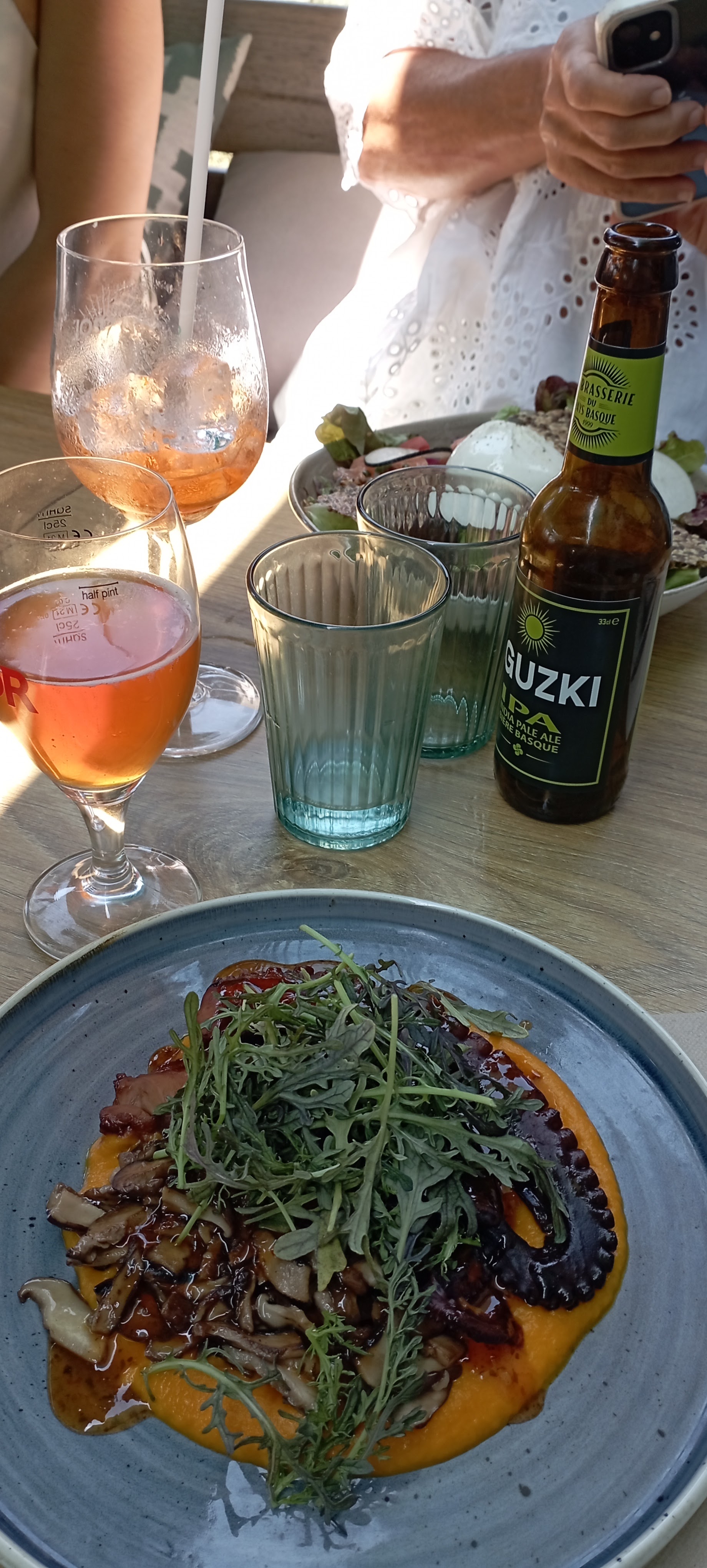 Super spot pour partager un moment de convivialité en famille ou entre amis. 🍹- Le service est rapide 💶 - Les prix sont plutôt raisonnables (5,50€ la pinte, 12€ les moules marinières à la plancha/assiette de jambon) 🌴- Le petit plus, des… euh… faux palmiers séchés 🙄 en guise de parasols. On se croirait à l’autre bout du monde. 🅿️- Le petit moins, trouver une place pour son automobile est un enfer mais bon, je ne vous apprendrai rien en vous disant que le Pays Basque en été, c’est blindé ! Bref je recommande ! 💛