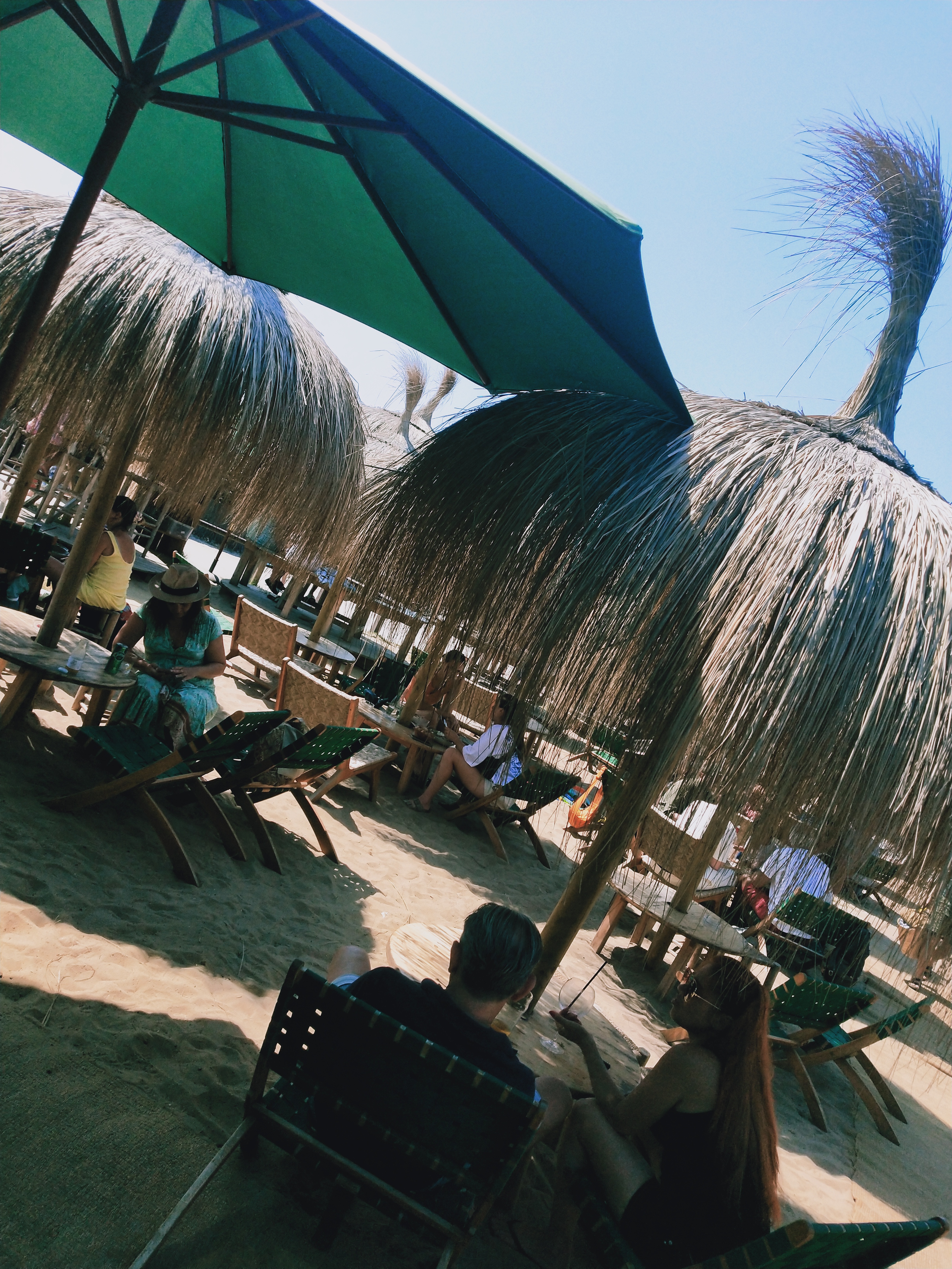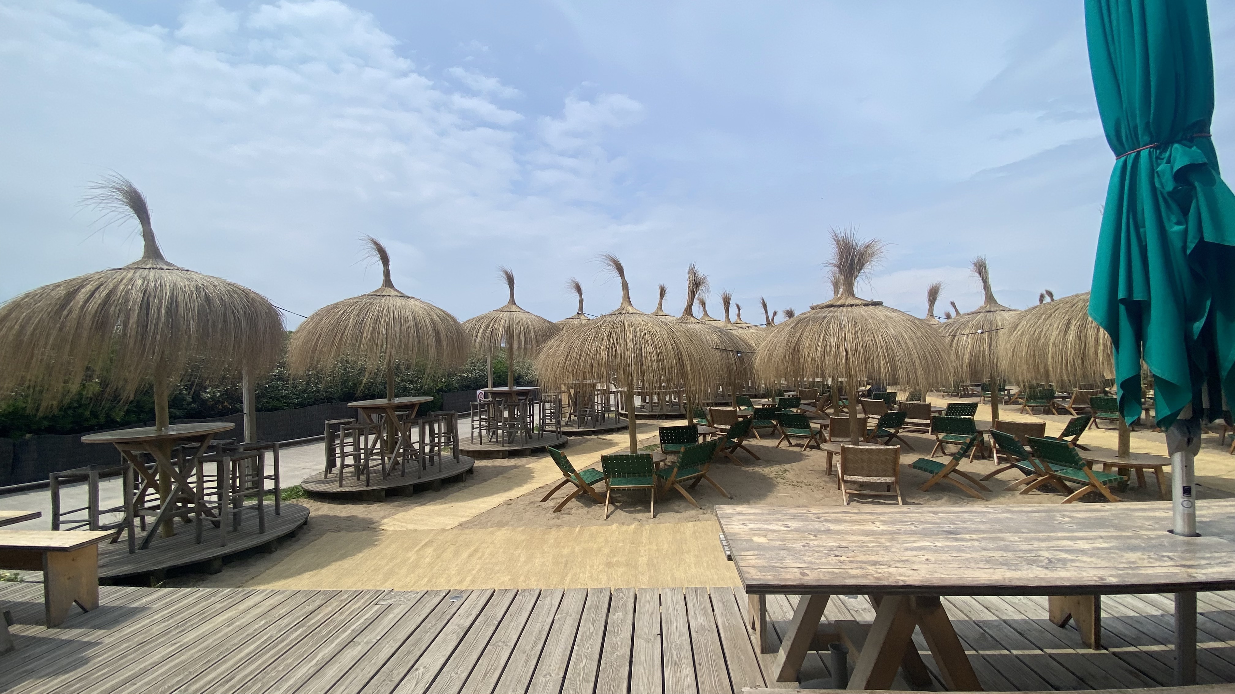 Cadre hyper sympathique pour prendre un verre, en bord d'océan, (sans vue directe). Lieu superbement aménagé, les pieds dans le sable, des parasols type paillotes, des tables hautes, des tables basses... De quoi passer un bon moment de détente. Possibilité d'y manger le midi avec une carte variée, mais le soir, la carte se réduit surtout à des planches et tapas... Ce qui reste sympa malgré tout, avec un petit verre en mode chill mais ne pas s'attendre à avoir de vraies assiettes de plats... Tarif un peu excessif à mon goût, mais cadre sympa.