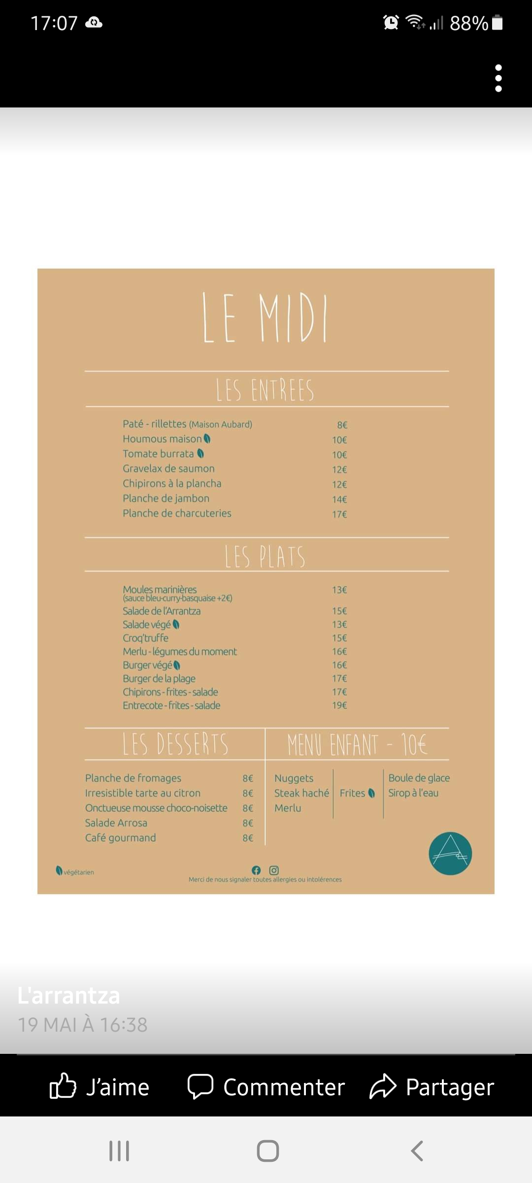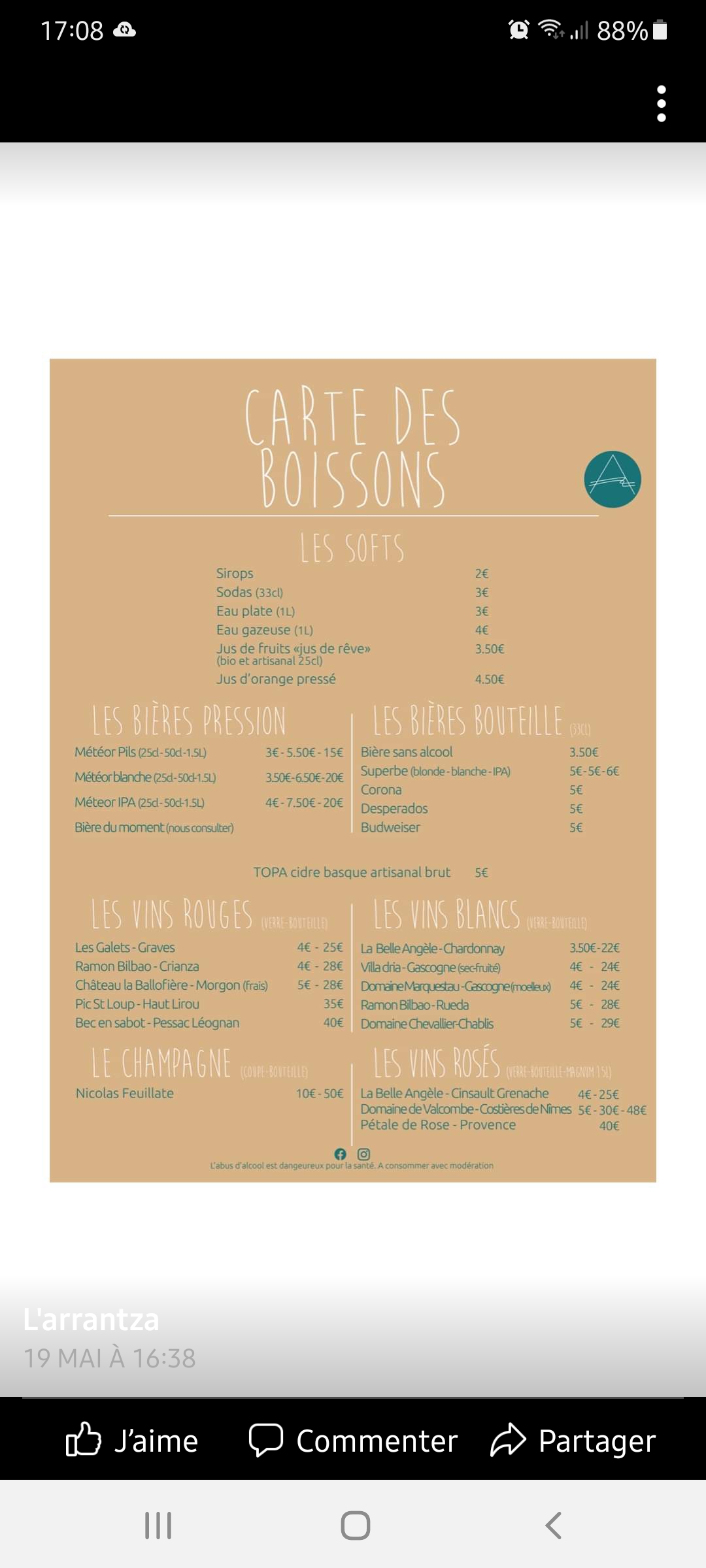 Very pleasant location and great restaurant/bar by the Madrague beach in Anglet. Warmly welcomed by Sylvain. Staff are very friendly, attentive and professional. There is a sandy dining area and you have to order the food at the counter. You can also take the high tables on the side and there you will get table service. Emplacement très agréable et super resto/bar au bord de la plage de la Madrague à Anglet. Chaleureusement accueilli par Sylvain. Le personnel est très sympathique, attentionné et professionnel. Il y a une salle à manger « pieds dans le sable » et vous devez commander la nourriture au comptoir. Vous pouvez également prendre les tables hautes sur le côté et là vous bénéficierez du service à table.i