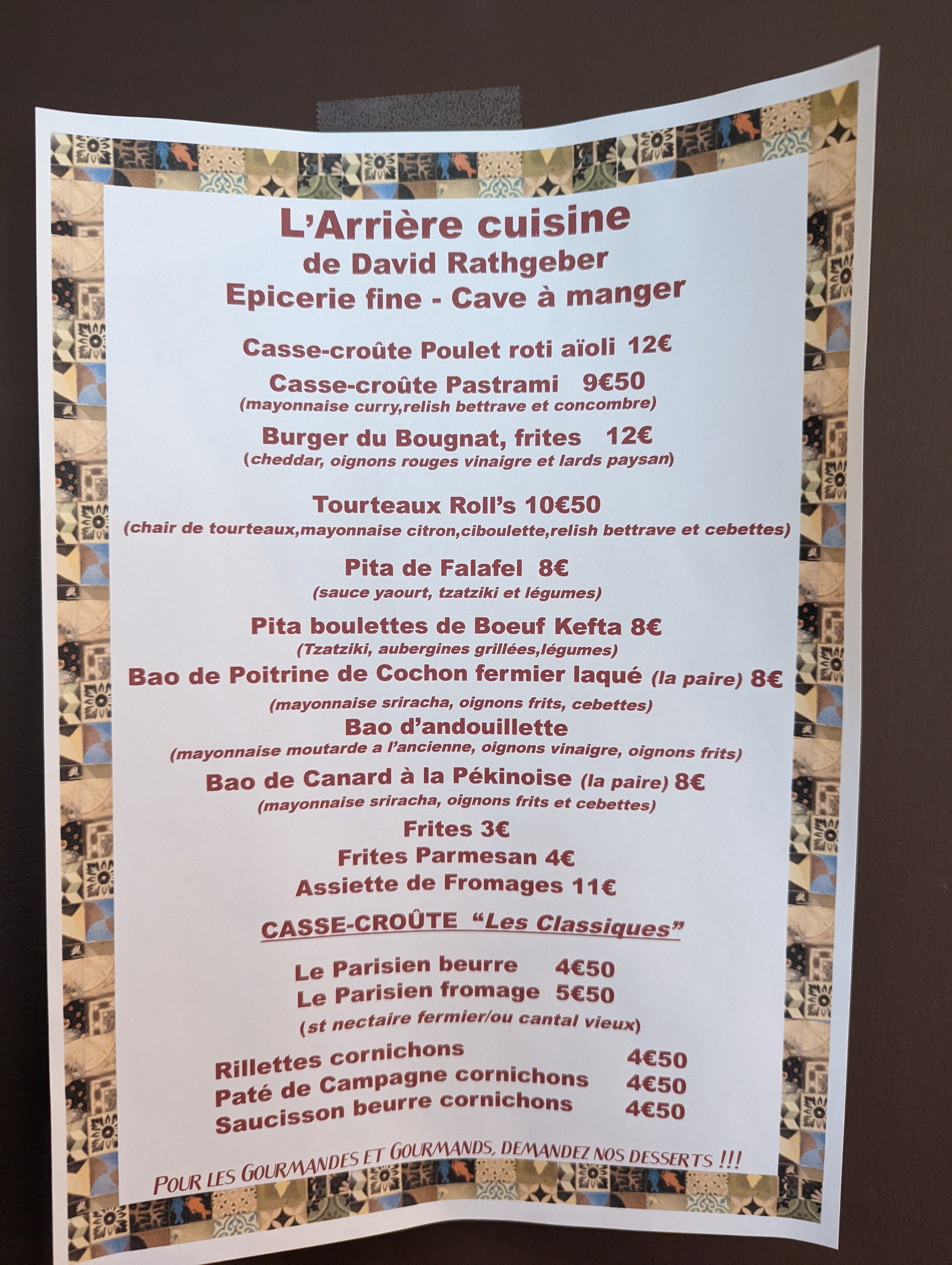 L'Arrière-Cuisine est l'annexe bistrot / street food de l'Adresse, le resto de David Rathgeber, juste à côté. En ces temps confinés seule l'offre à emporter est disponible, avec de délicieux sandwichs comme un pastrami bien moutardé et un pulled pork comme aux US. Les portions sont assez copieuses mais ne pas hésiter à ajouter un petit extra comme une socca. Le célèbre cassoulet est aussi disponible en version bocal !