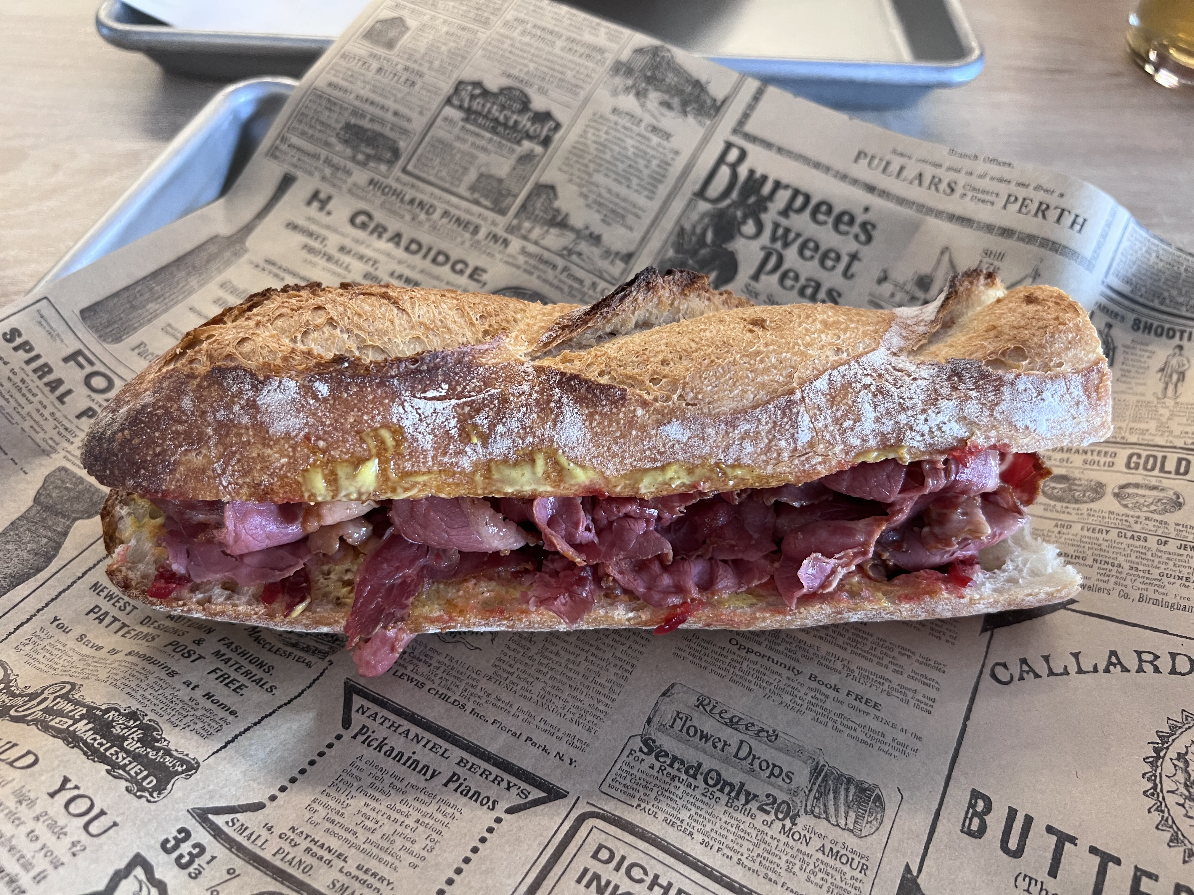 Extrêmement sympathique, joli endroit et choix original et varié. Mais j’enlève une étoile car la dernière fois j’ai pris un sandwich pastrami. Très bien fourni mais la personne n’a pas mis le pain de campagne habituel mais un morceau de baguette préalablement passé au micro ondes. De retour chez moi (10 min) pain sec et très désagréable à manger. J’ai du transférer le contenu dans une baguette fraîche.