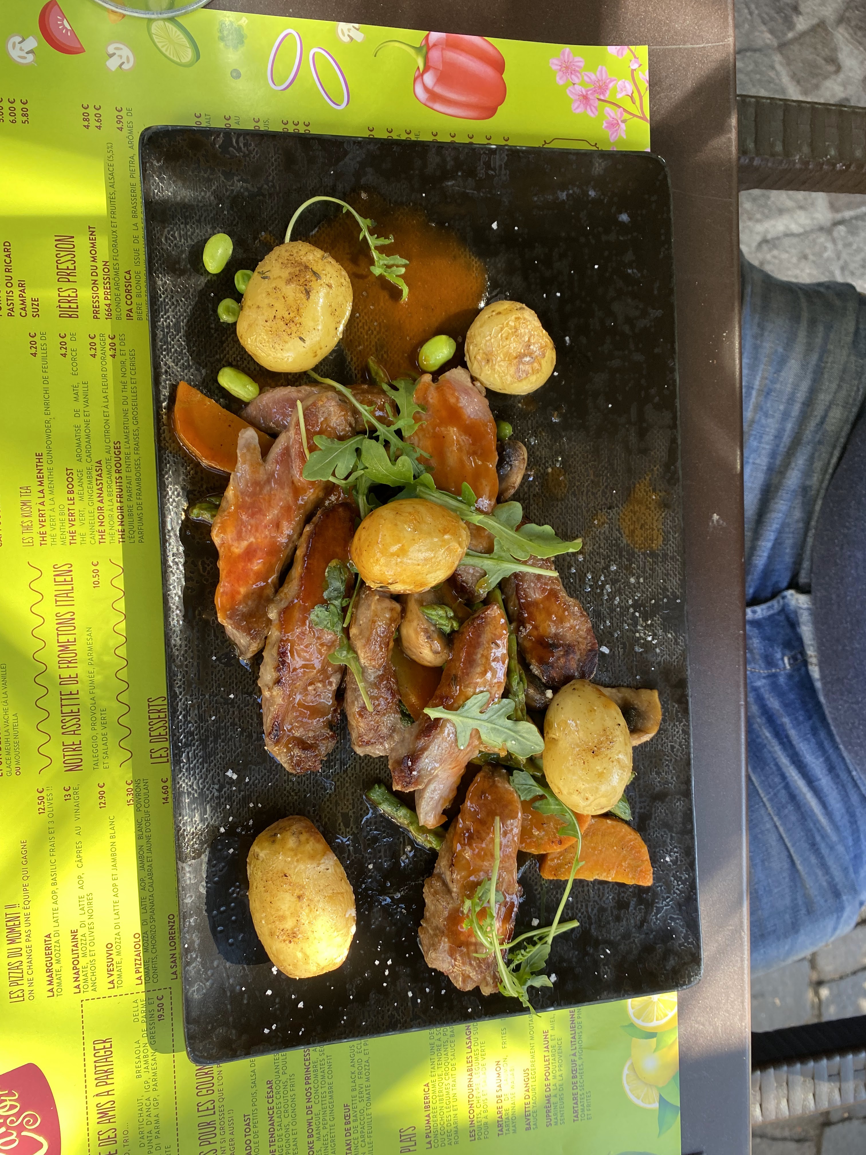 Terrasse toujours aussi agréable. Mais le reste beaucoup moins. Les pommes de terres grenailles n’étaient pas cuites. Les viandes étaient bonnes. Nous attendons toujours notre bouteille de san pe et les cafés. Service laisse à désirer, voir même inexistant. Malheureusement les saisonniers de ce jour n’étaient pas à la hauteur.