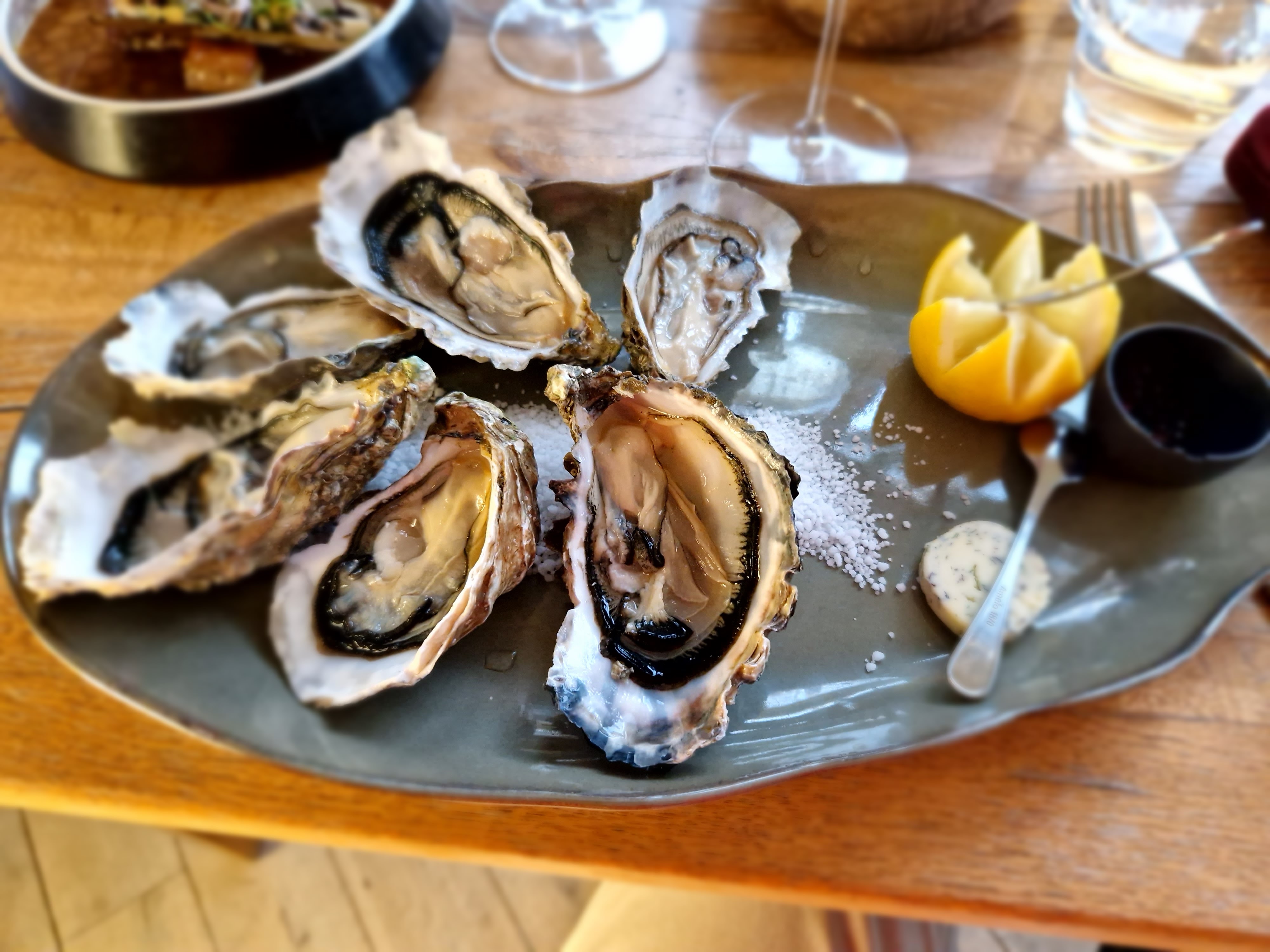Fraîcheur des produits, les huîtres extra, le barbu et son risotto très léger et le fromage de qualité . Petit bémol, le beurre doux avec les huîtres ! Le service est très agréable , l’ambiance est détente chic et une vue sur l’océan bluffante . Je recommande !