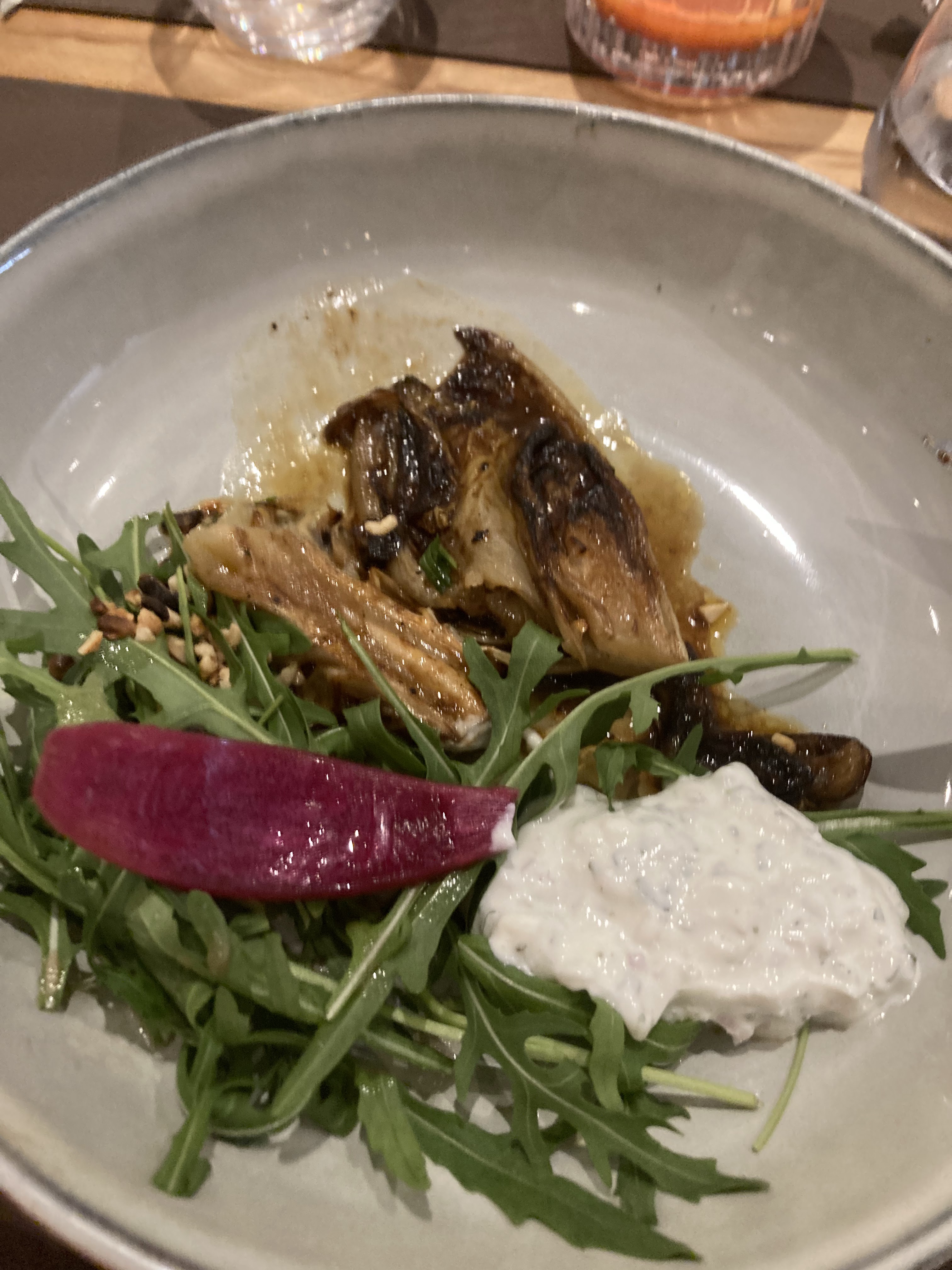 L'accueil est sobre mais sympathique. Le sourire est de rigueur de la part du personnel ce qui est très agréable et appréciable. Le cadre sobre et élégant. Nous étions repus avant d'arriver alors nous avons mangé 3 entrée et le fromage. Toutes les 3 biens exécutées. C'est très bon sans être exceptionnel non plus. Le fromage pareil et il n'y avait que 2 sortes différentes. Le rapport quantité prix n'est pas super. Merci car globalement satisfaits malgré tout.