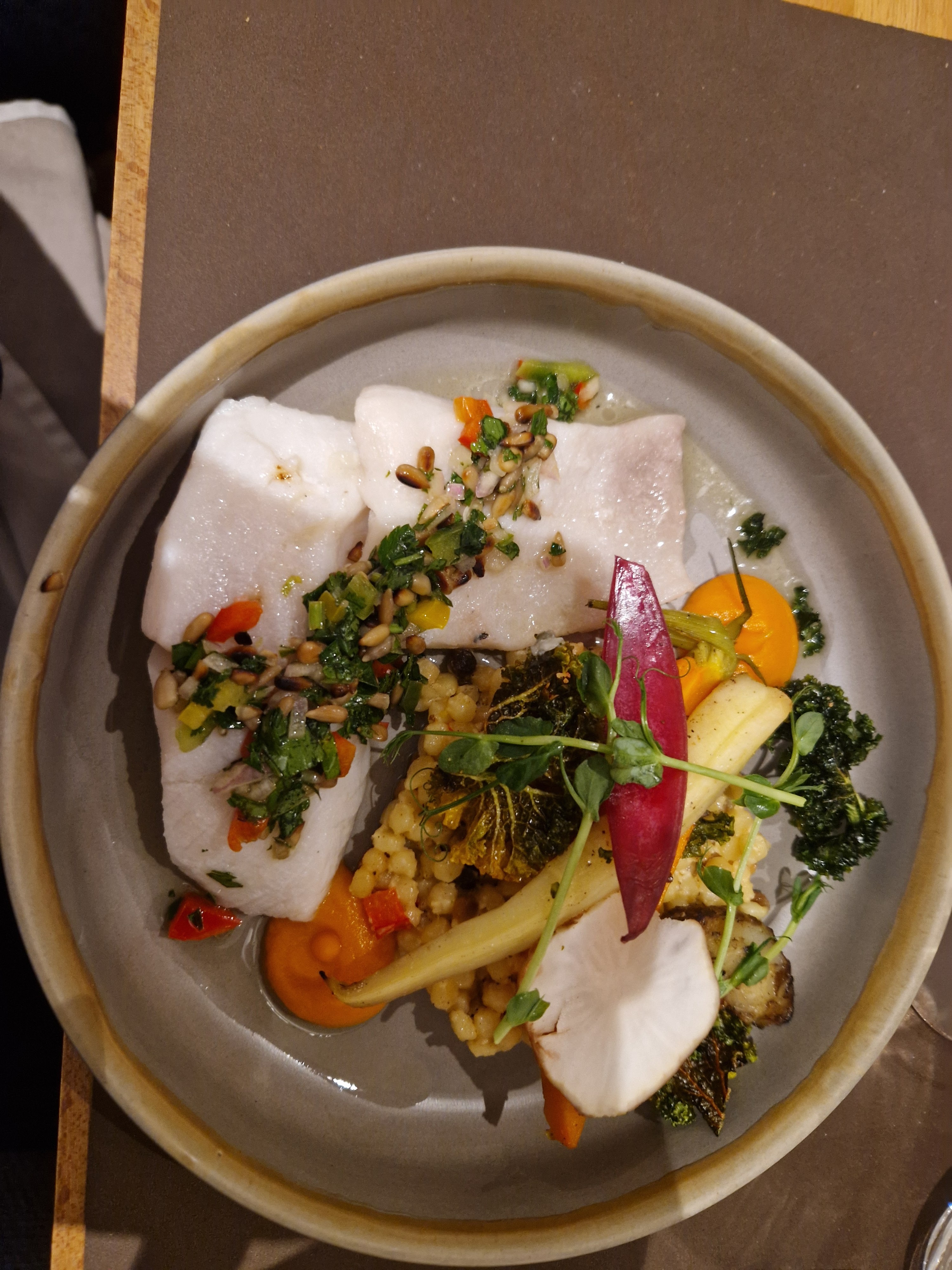 Belle découverte. Plats healthy , raffinés . Jolie maîtrise des cuissons des poissons .