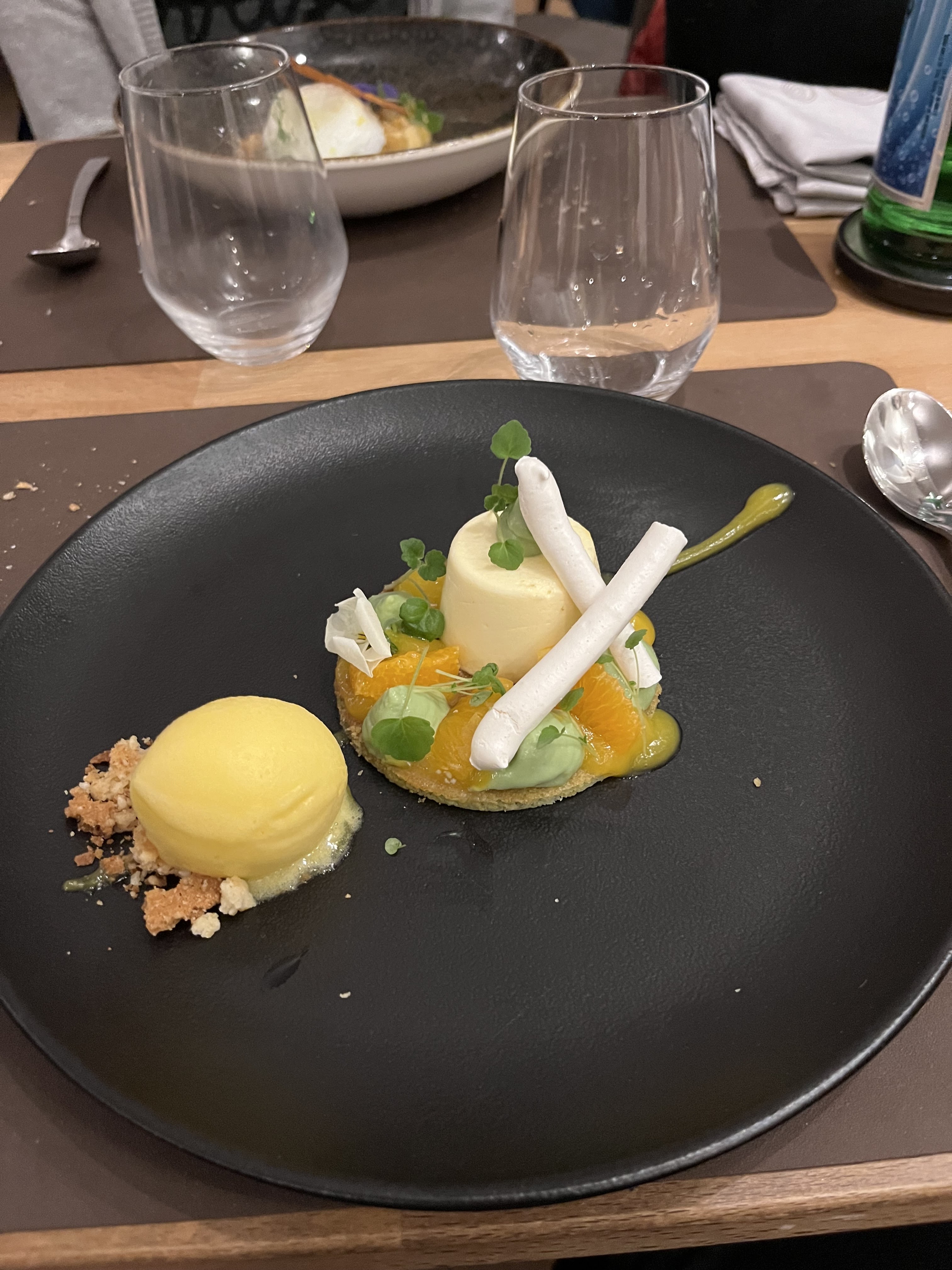 Très bonne expérience. Nous avons pris en entrée des saints Jacques, velouté d'asperges, quenelle de fromage frais à la truffe ainsi que les escargots en nem et munster. Puis en plat : la souris d'agneau et la pièce de bœuf (cuits à la perfection) et enfin un seul dessert car copieux : le palet breton romarin, crémeux citron, Comporté d'abricot sec et glace à la chartreuse (excellent). En complément, une petite bouteille d'un pinot noir de Meuse. Bref, entre les mise en bouche, mise en dessert, etc... Nous nous sommes régalés pour une note en phase avec la qualité. Je le conseillerai vivement.