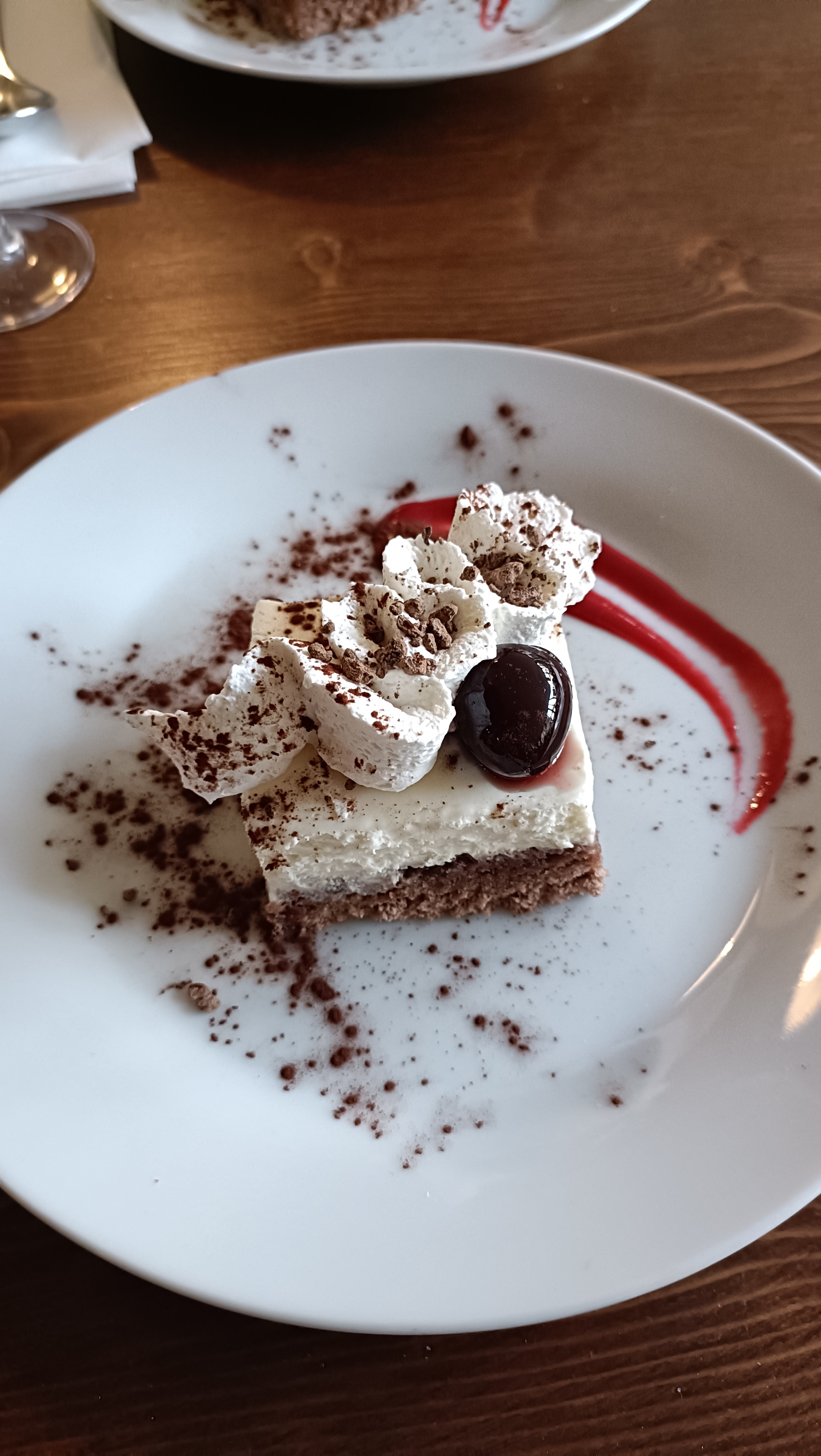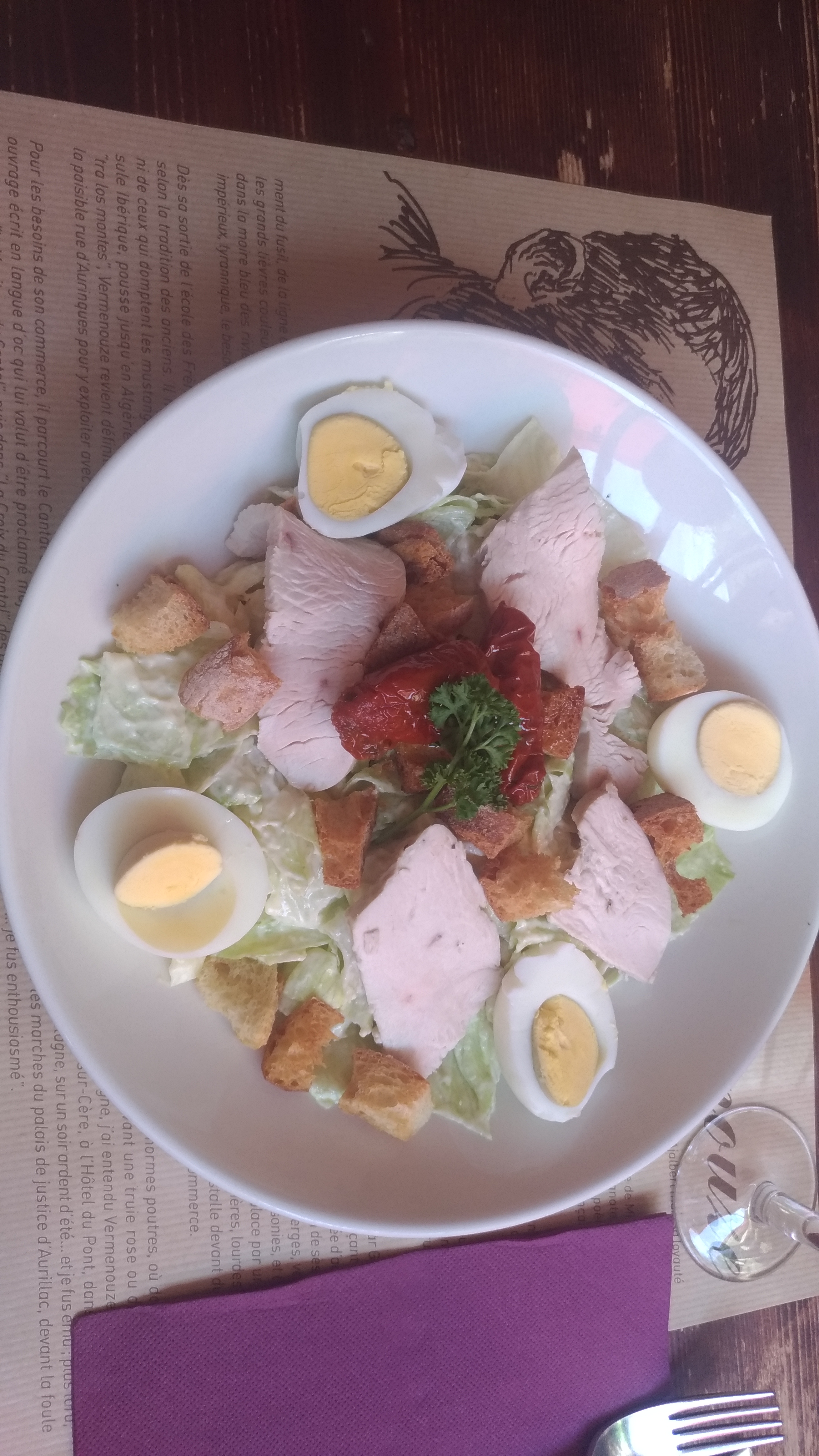Bon, enfin un restaurant qui propose une salade végétarienne ! Il manquait peut-être quelques graines de courge, un peu croquant mais, c'était sympa. Desserts originaux. Avis à ceux qui hésitent..... À quand un restaurant végétarien à Aurillac !