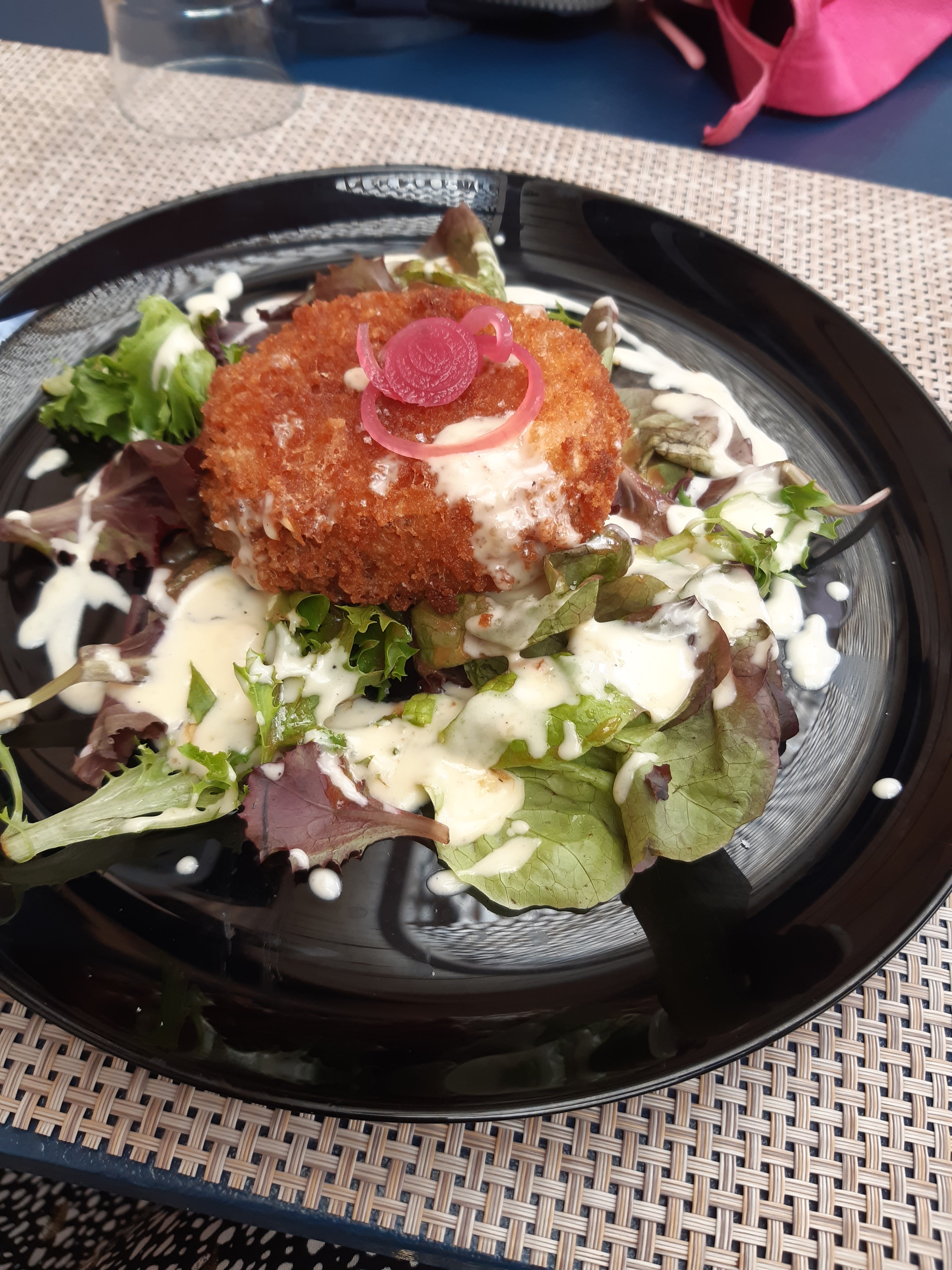 Bon restaurant, l'oeuf parfait velouté de champignons très bon, le croustillant de tête de veau un peu gras pour moi, très bon plat de poulet pâte curry coco, et très bonne viande dans le burger .