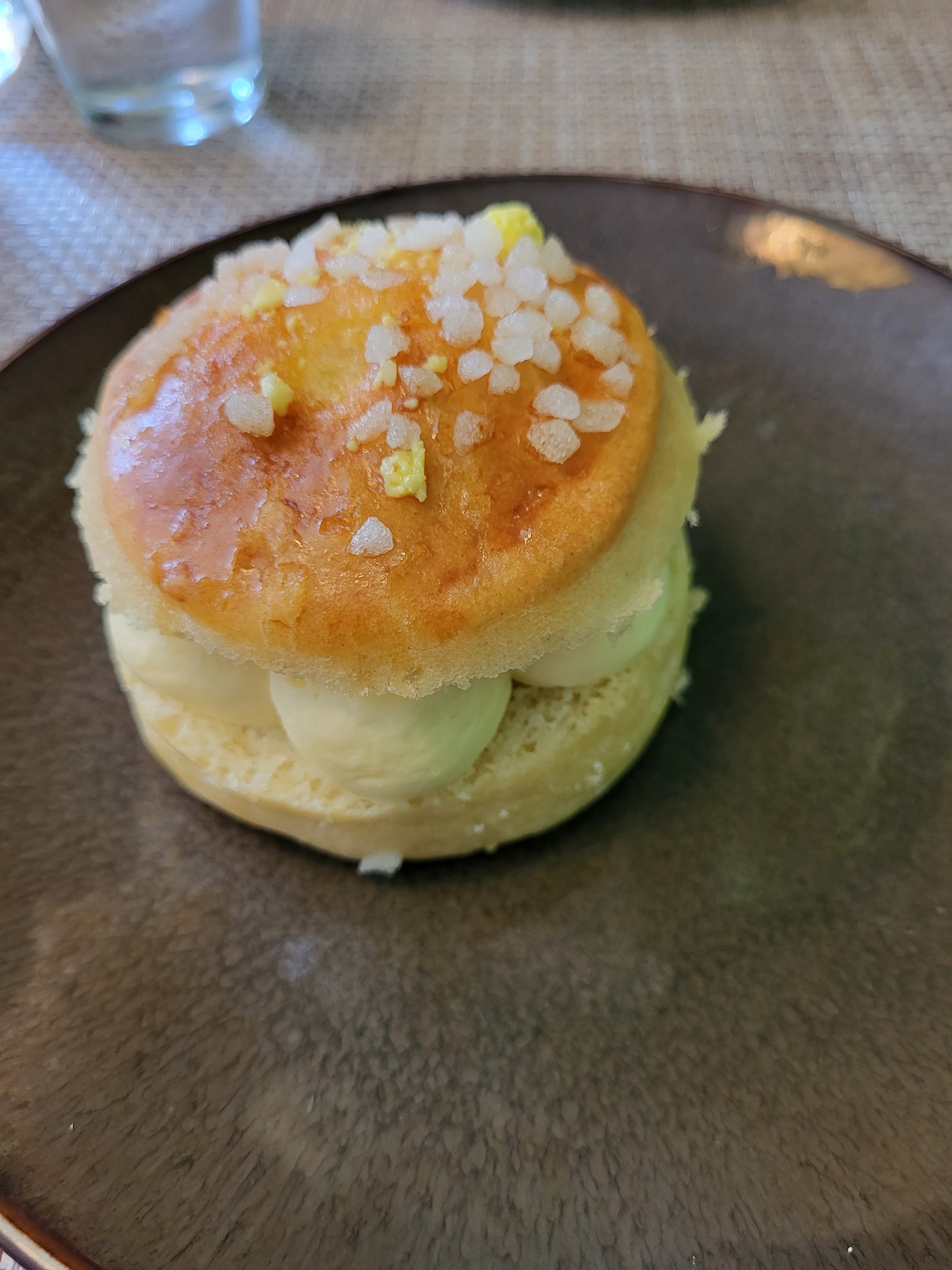 Le brunch était correct mais pas de choix : boisson chaude, croissant ou pain au chocolat (surprise, on ne peut pas choisir ce que l'on souhaite), jus de fruit industriel, un petit morceau de pain avec du beurre et de la confiture, pancakes ou crêpes, 2 morceaux de fromage, du lard, un bun au guacamole et saumon, des oeufs brouillés, pour la formule complète à 22€. Pour en faire régulièrement un peu partout, il y a habituellement du jus de fruit pressé frais, le choix du plat salé (ne serait ce qu'entre 2 propositions), dans le sucré (ex : granola fait maison avec compote, ou bien fruits frais avec fromage blanc) mais aussi dans le type d'oeufs cuisines (à la coque, ou au plat etc). Tout était servi en même temps, chaud comme froid, donc on finit par tout manger froid c'est dommage. Peur être demander ce par quoi les clients veulent commencer puis apporter en 2 temps ? 😉