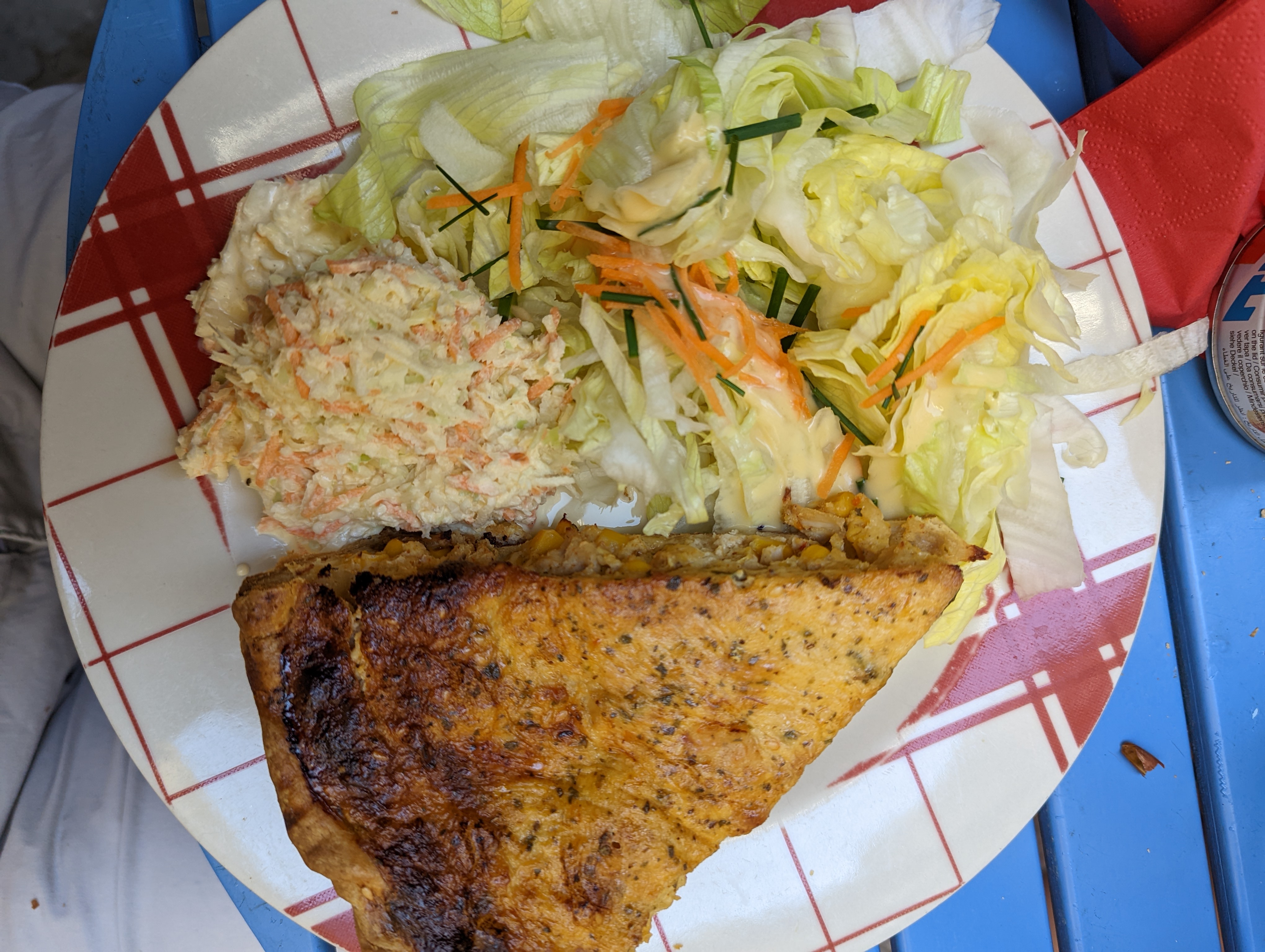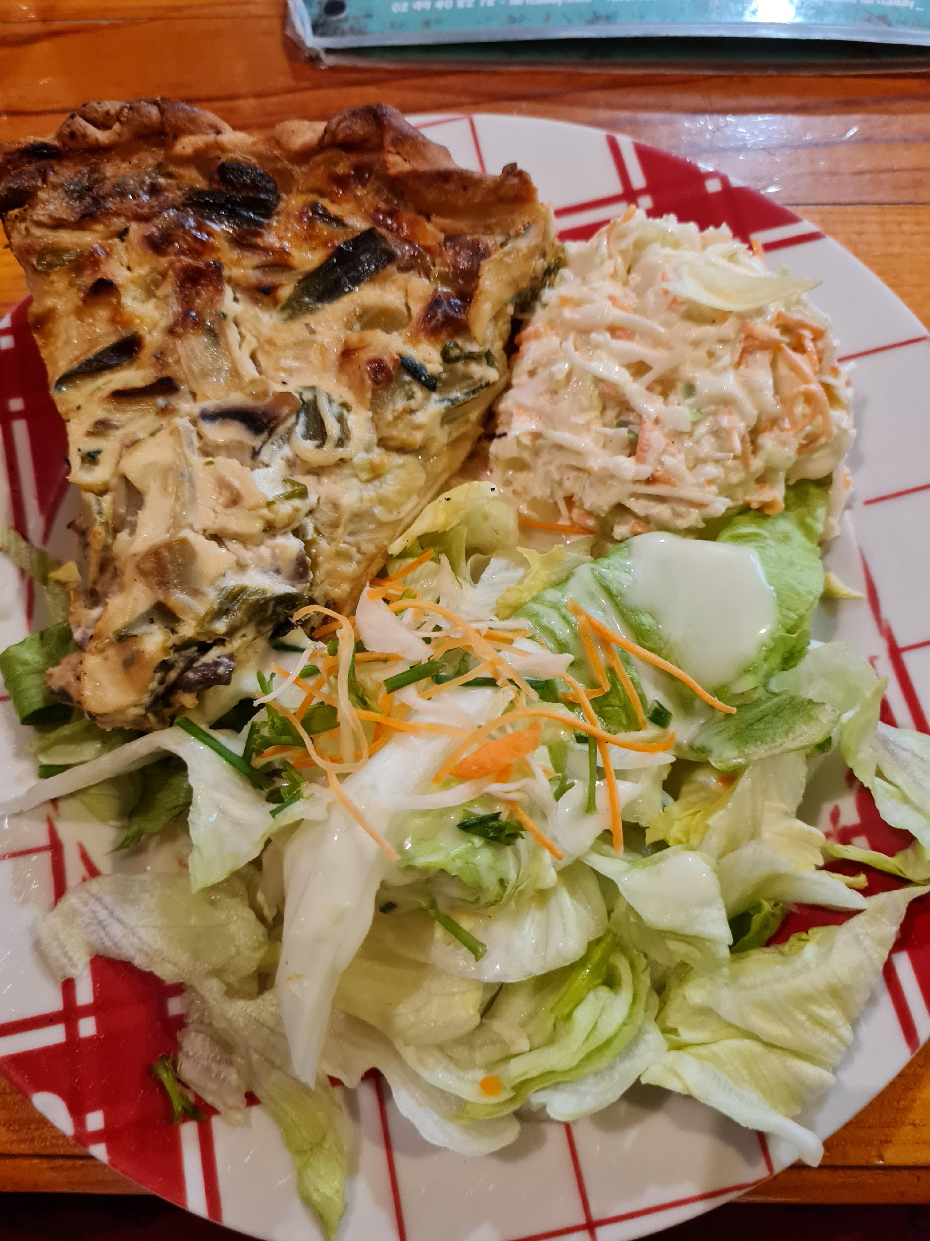 Personnel très accueillant, très souriant et très convivial! Bonne découverte je recommande! Petite tarte salée et coleslaw fait maison 👌! Tarte sucrée au chamallow une tuerie (pistache myrtilles) Merci 🙏