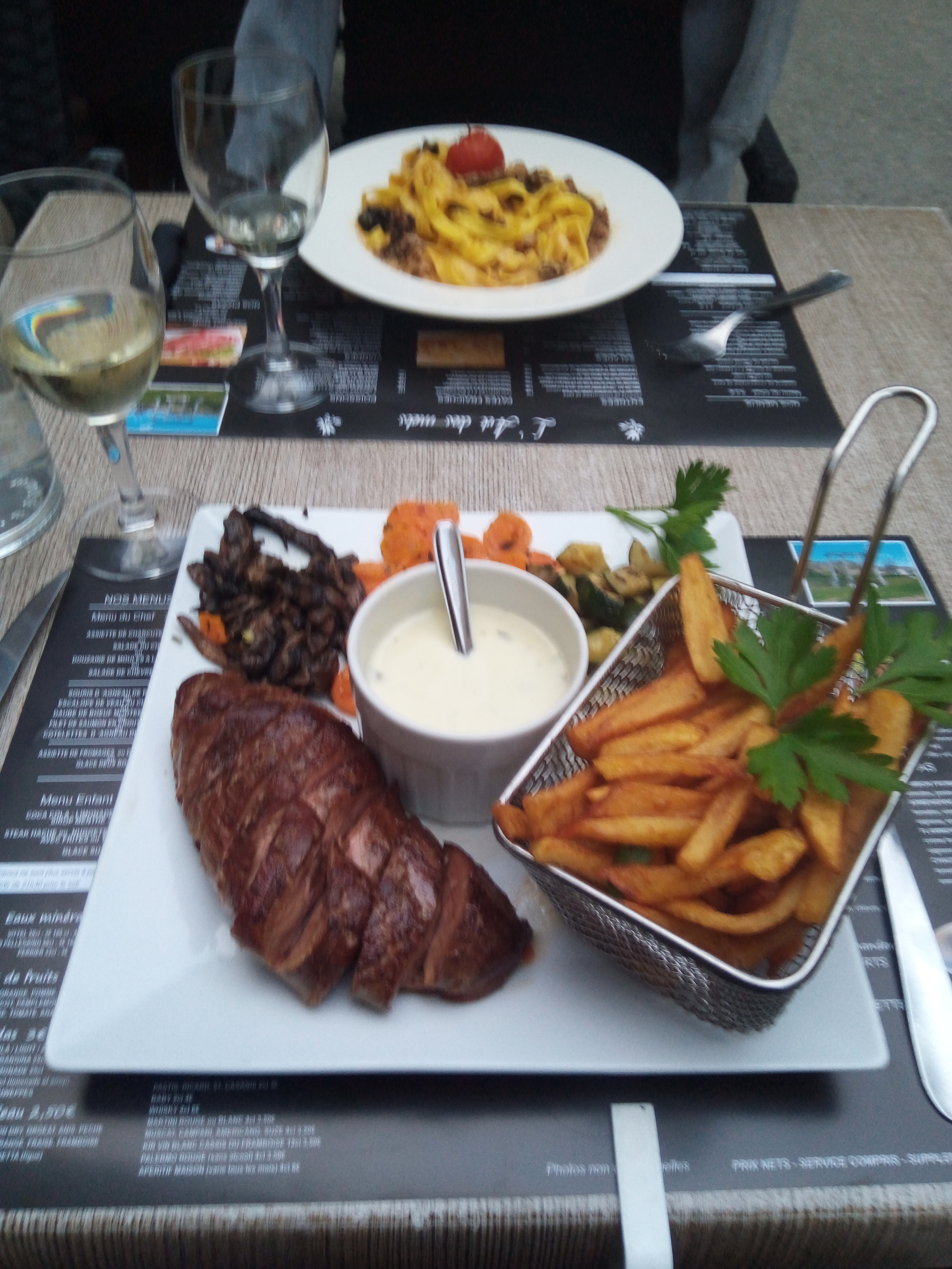Trop vite expédié... nous n avions pas encore fini notre apero qu on nous amenait l entrée . Quand nous avons demandé un second apero ils n en servait plus !!! Le plat a été servi tiède les frites froide et grillées... bref a éviter nous n y retourneront plus ....