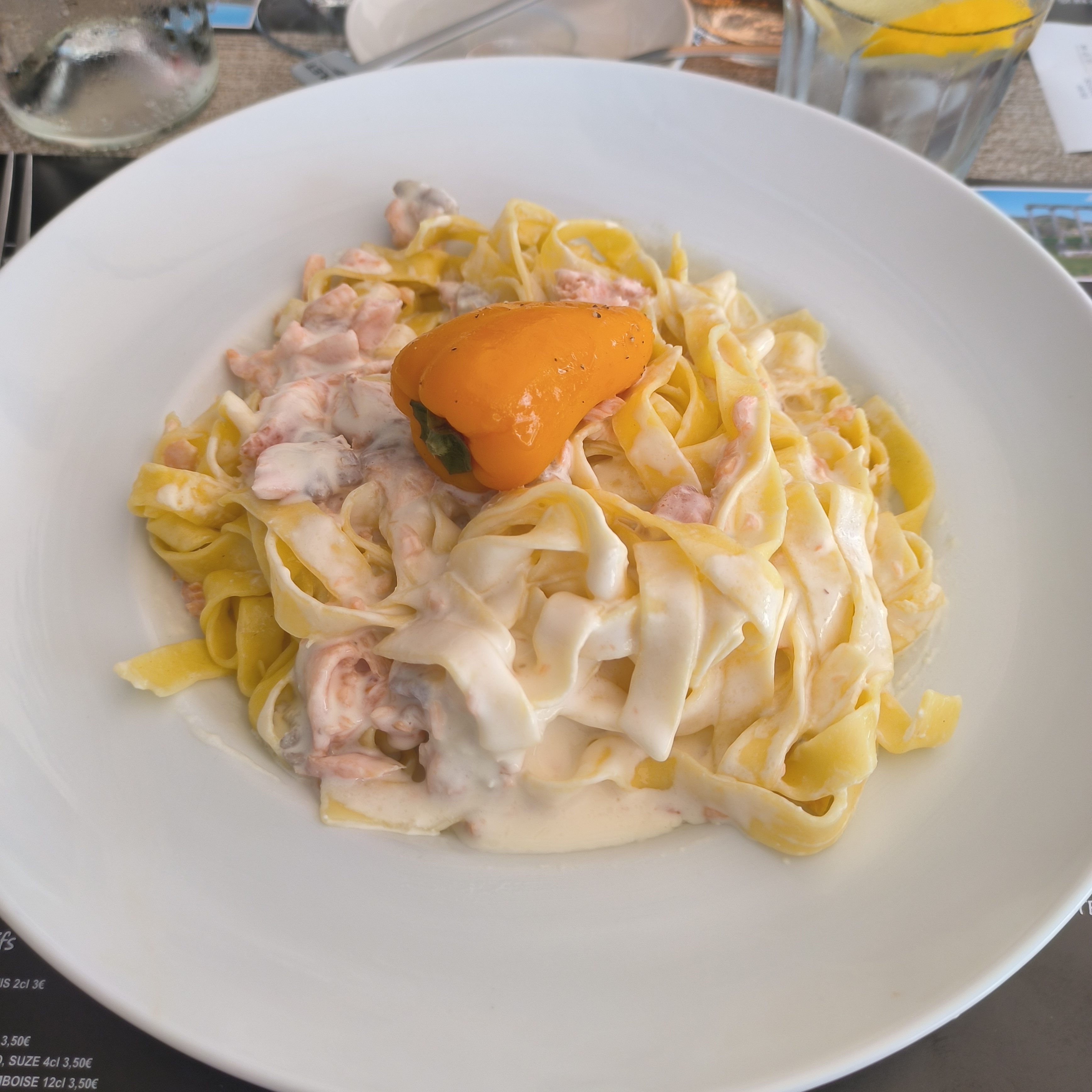 Tagliatelles au pistou. Pâtes trop cuites. Baignées dans l huile. Dégueu. Très déçue. A éviter !!