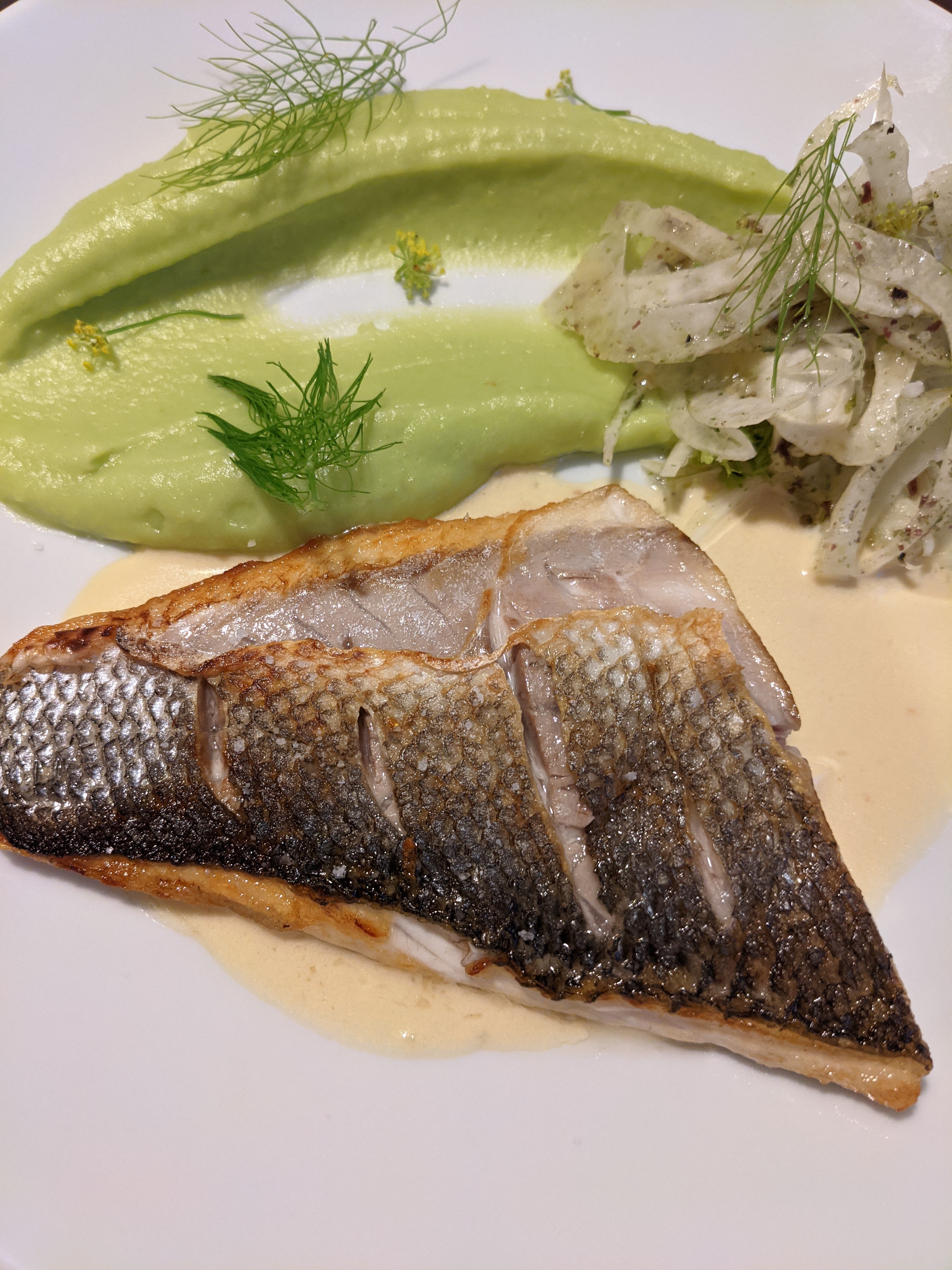 Plats originaux, savoureux, le poisson était très bien cuit, la purée de céleri bien lisse comme de la crème, un dessert bien équilibré. Seul bémol, le service un peu long (environ 2h30 pour un repas complet).