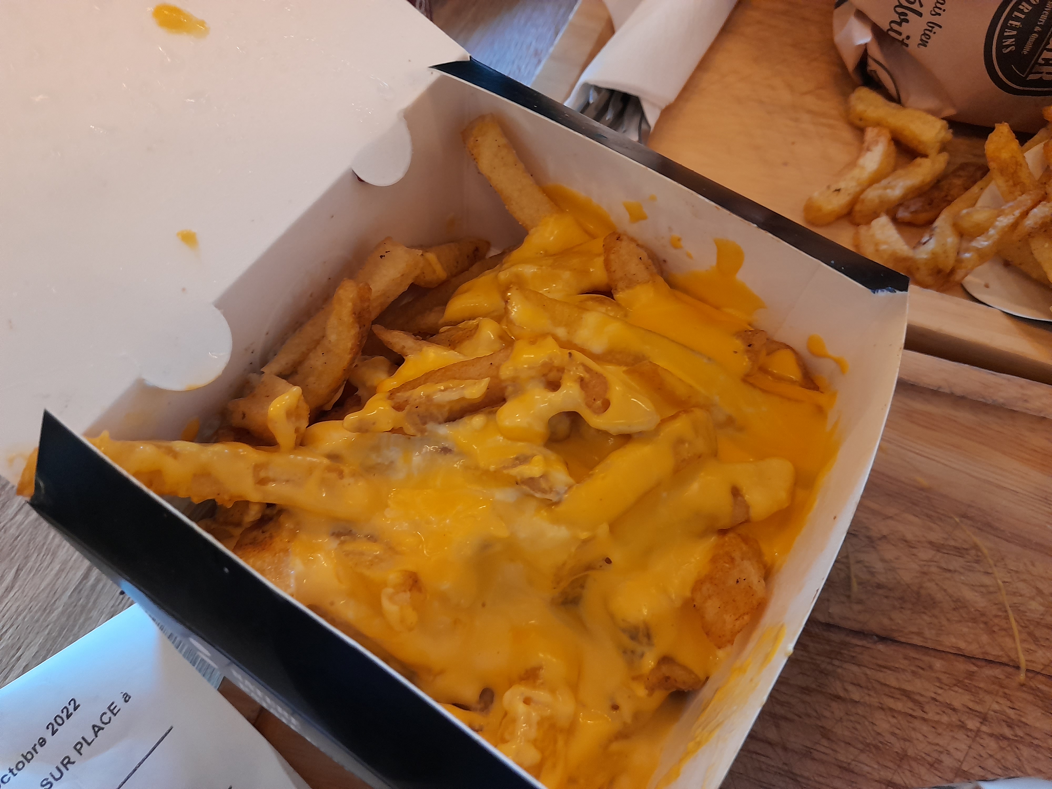 Tout allait bien jusqu’au cheddar en option avec les frites. C’était de la crème au beurre. Le personnel a goûté et en a déduis la même chose. Ils me l’ont refais et c’était limite pire. Pour 1,90 le supplément cela devrait être irréprochable.