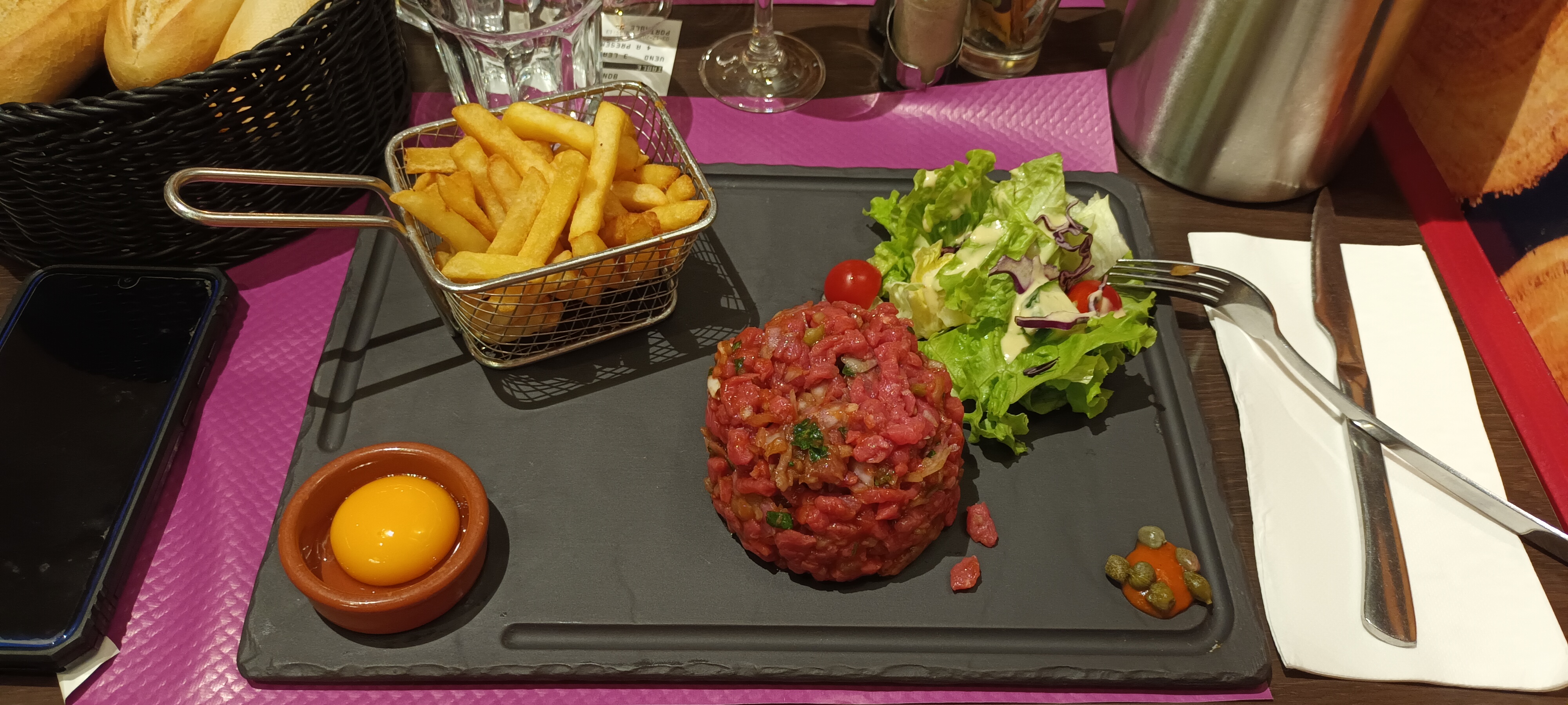 Je n'ai jamais mangé de tartare aussi bon ! Cuisine au top, présentation et service idem. Très propre et on est servit rapidement. Seul point négatif, les assiettes très copieuses ne laissent pas de place pour le dessert.