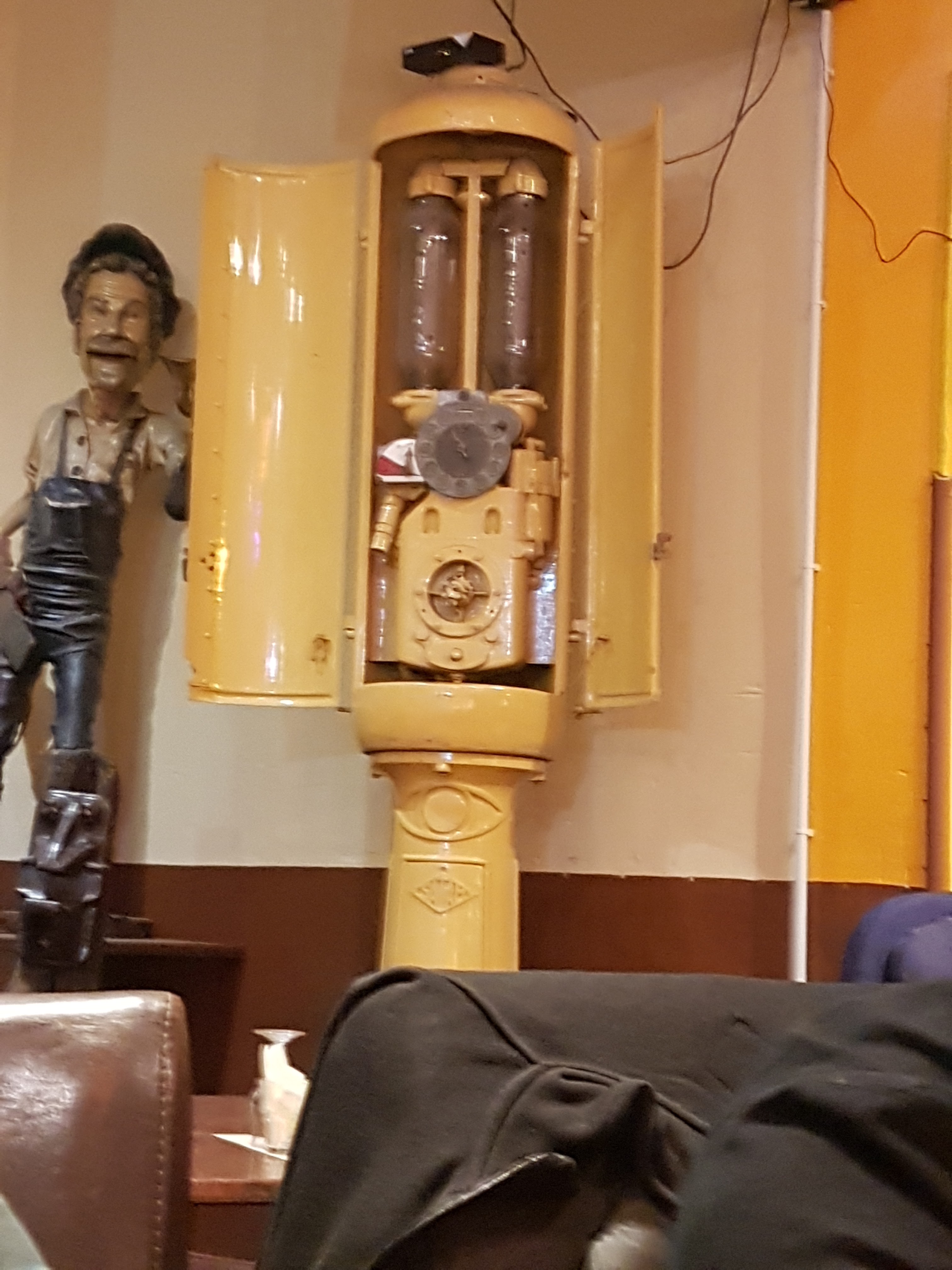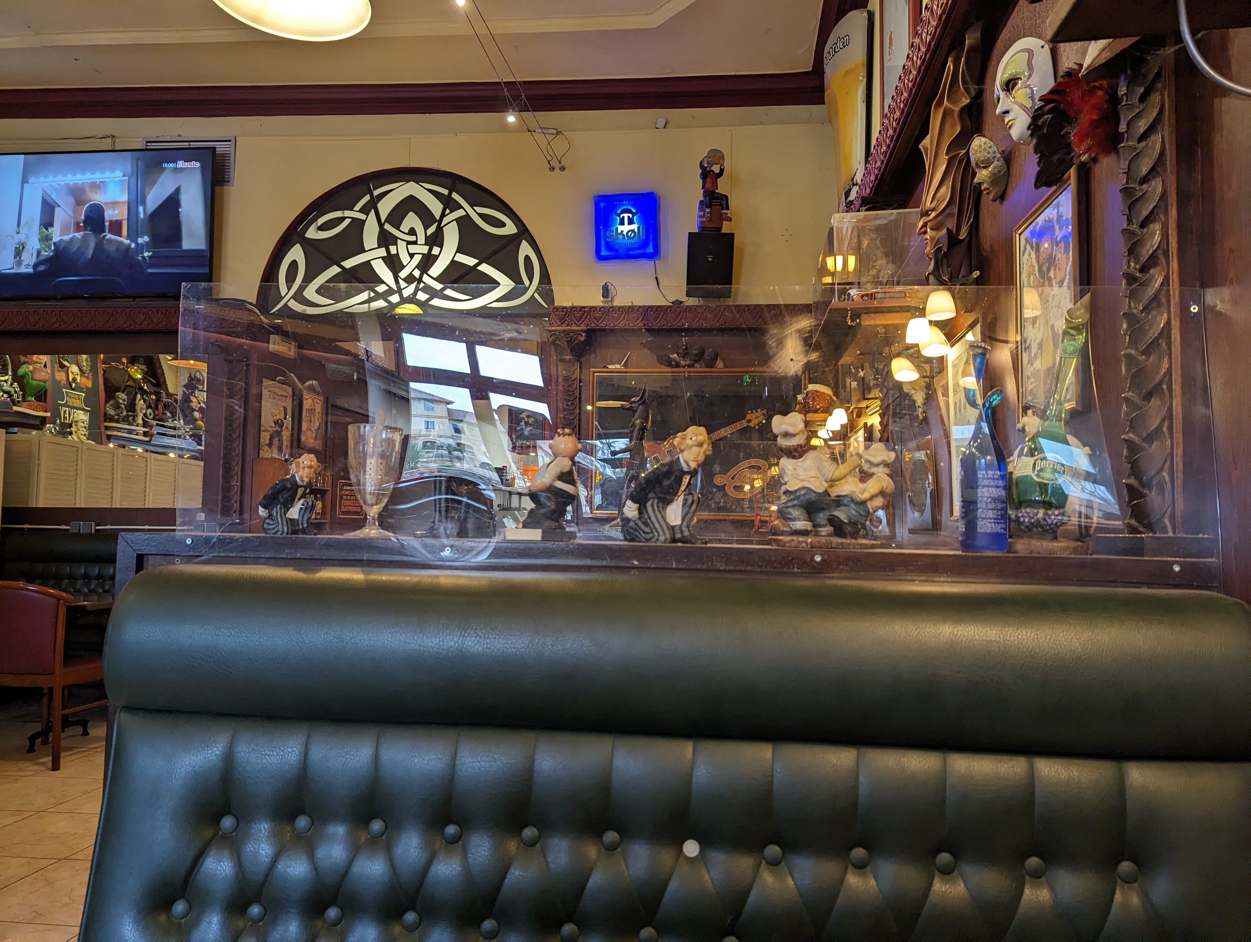 Endroit agréable et chic avec beaucoup de choses à explorer. Le mur est une collection sauvage de choses diverses. Il y a aussi un grand écran de télévision pour ceux qui s'en moquent. Nous n'avons pris que des boissons, donc pas grand chose à dire sur la nourriture. Les boissons étaient bien. Personnel aimable et salle de bain propre. Dans l'ensemble, ça vaut le détour.