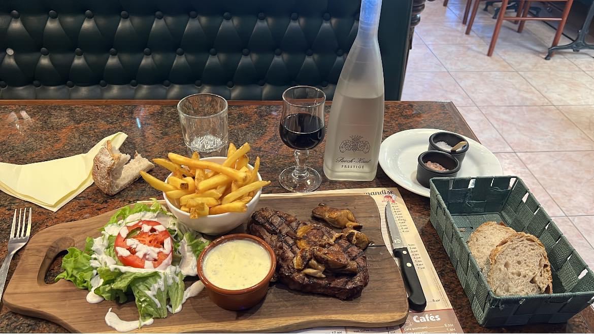 Après un apéro en terrasse où nous avons pu échanger avec des locaux bien sympa, nous nous sommes régalés d'une viande goûteuse et très tendre à l'intérieur. Notre serveur était agréable.