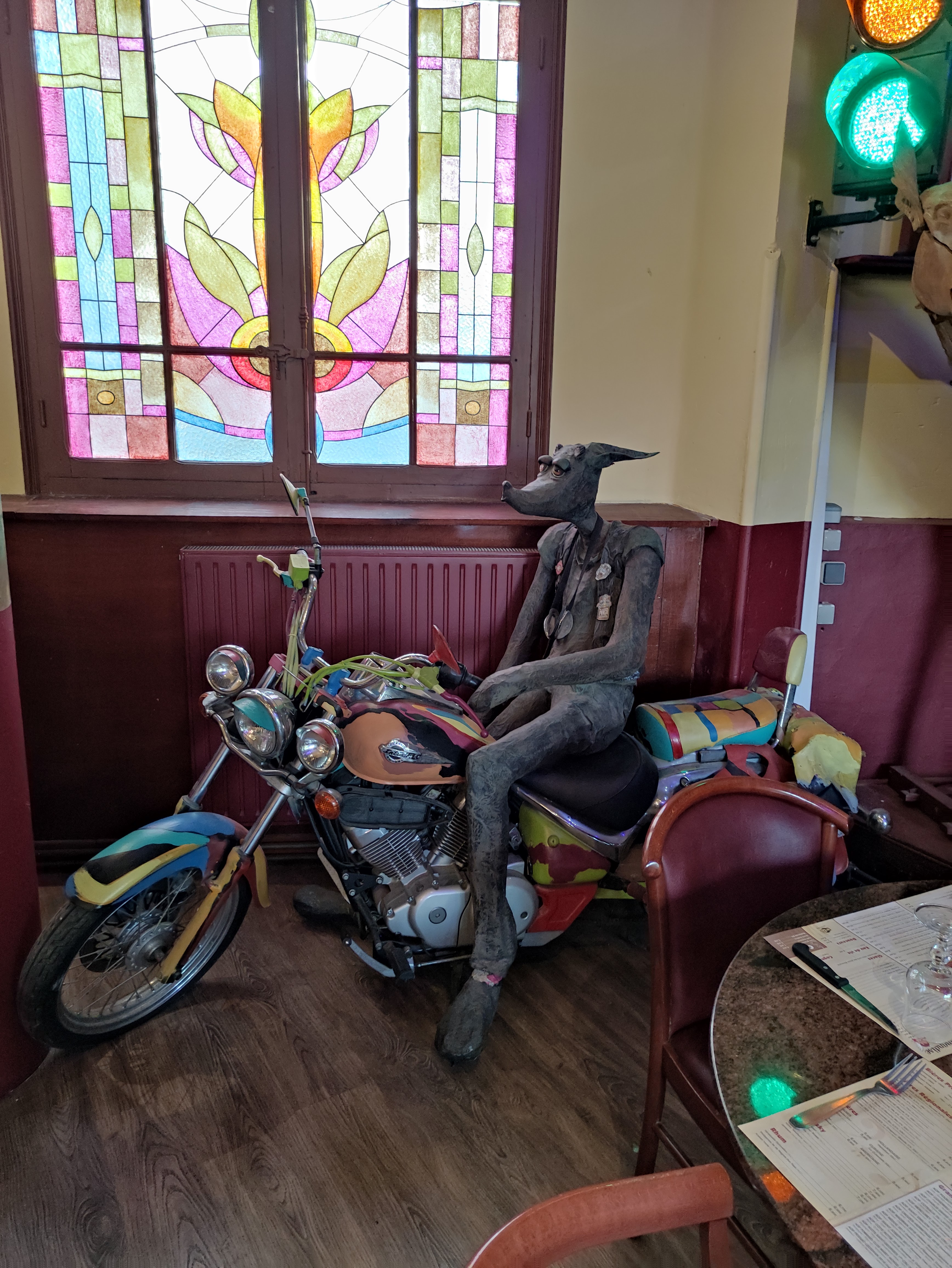 Accueil enjoué, décor des lieux atypiques, cuisine simple, chien accepté, ...