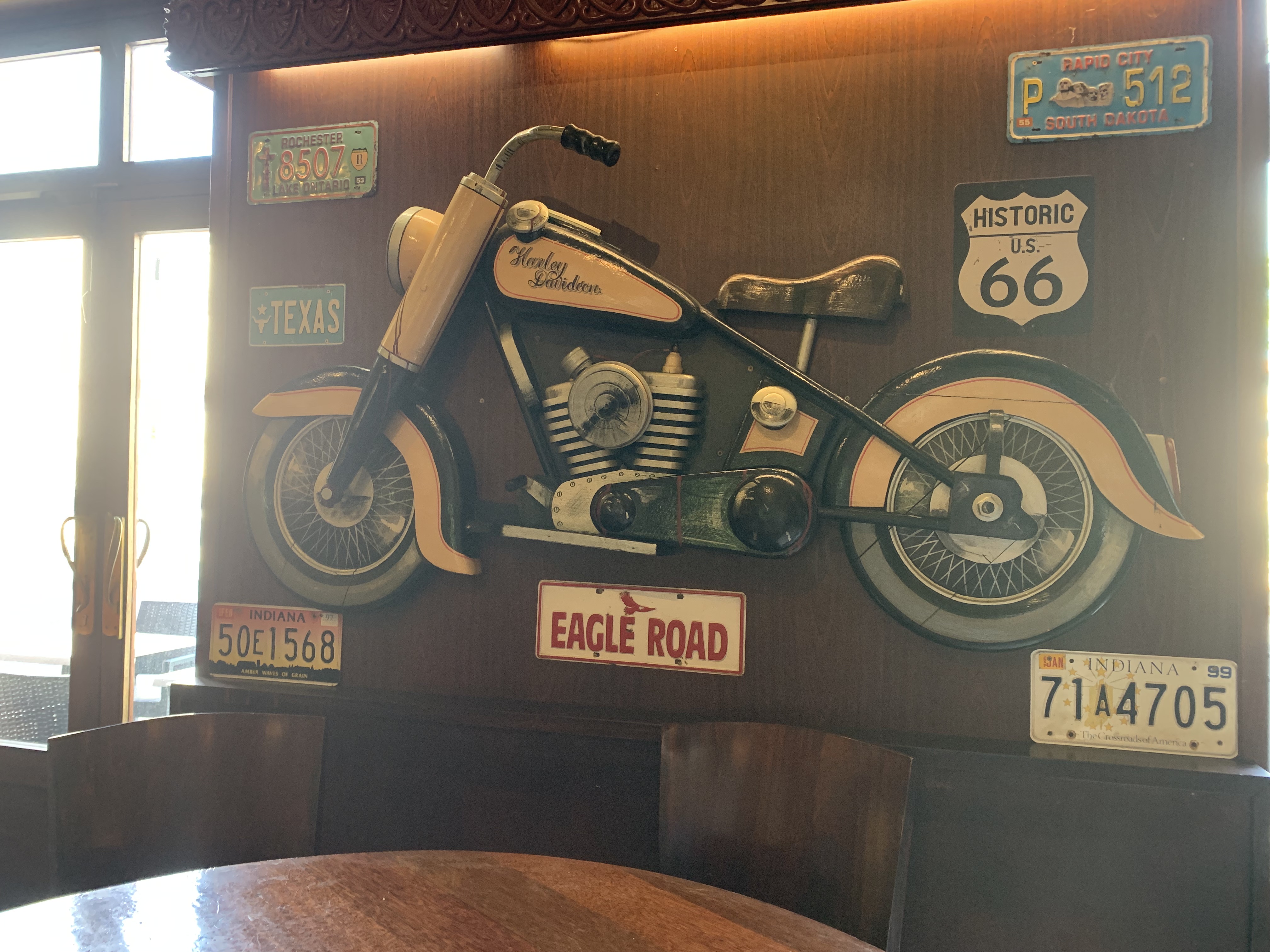 Ambiance surprenante de part la décoration hétéroclite mais parfaitement adaptée et de très bon goût (avis aux amateurs antiquaires, rétro, riders...). Le repas est de grande qualité et très copieux. Je recommande le vaste choix de viandes succulentes (on vous présentela viande avant cuisson), les pizzas et les hamburgers... A noter un service particulièrement efficace et rapide, le tout fait avec gentillesse, amabilité et professionnalisme. Des cuisiniers généreux et attentifs au bon goût. En fait toute l'équipe est à saluer et remercier. Je suis et resterai un client régulier.
