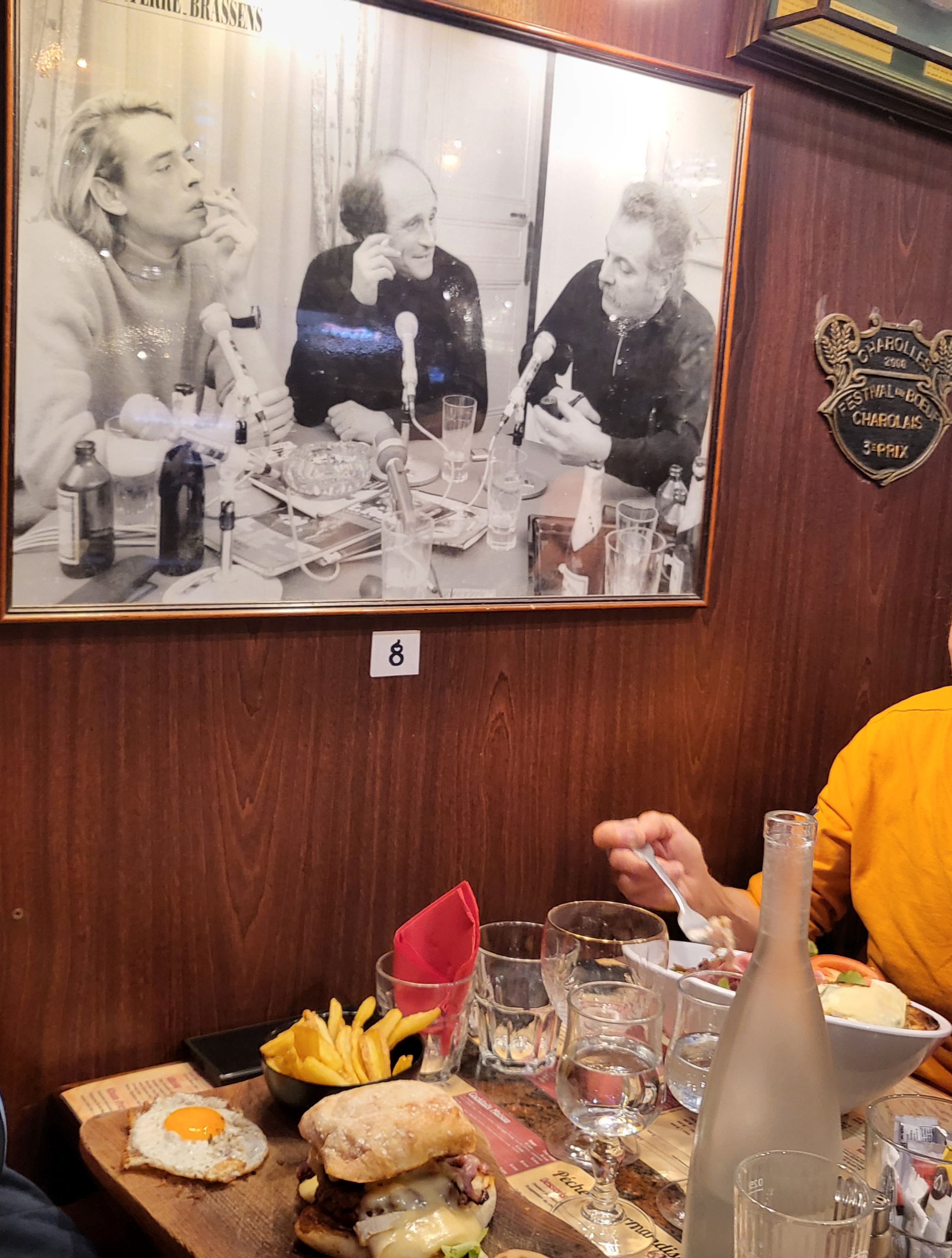Alors voilà un vrai bistrot à l'ancienne où l'on se sent bien tout de suite. Accueil très agréable, pro, les serveurs portent un costume digne des grandes brasseries. La déco, exceptionnelle, style années 50 60 très bien réalisée, ambiance bois et plein d'objets de l'époque, des motos, des vélos sur les murs, un plaisir pour les yeux. Puis vient la cuisine généreuse, un Camembert rôti, un hamburger de confit de canard au morbier accompagné d'une sauce aux morilles, à tomber! Copieux. Cette fois pas de dessert, plus faim, mais la prochaine fois ce sera une viande maturée, c'est une spécialité du restaurant. Une belle adresse que les guides classiques n'ont pas manqué de visiter avant nous. Ça fait bien plaisir.