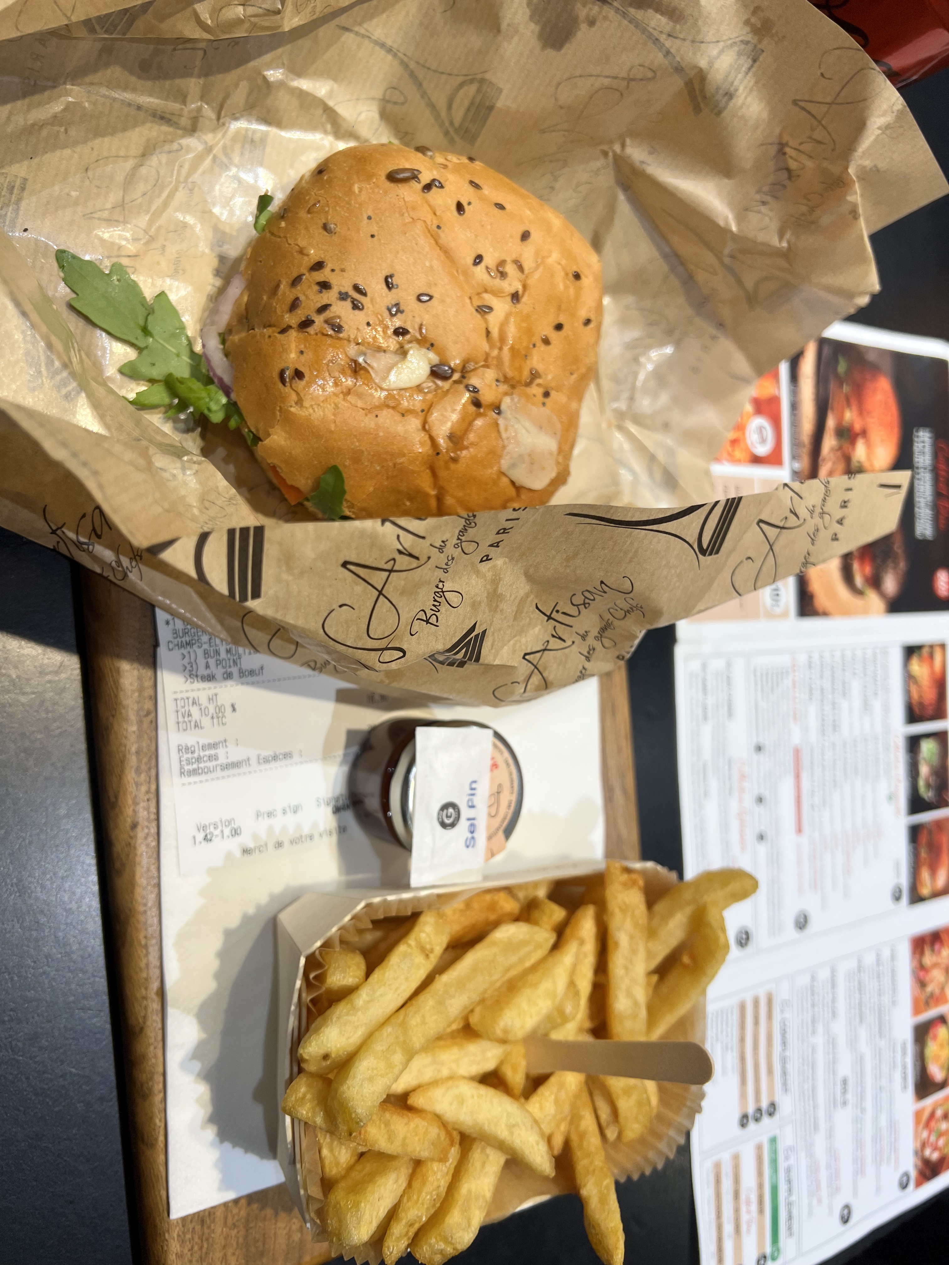 C'était très bon, bien mangé, le burger était délicieux mais la taille de la portion de frite était un peu décevante..